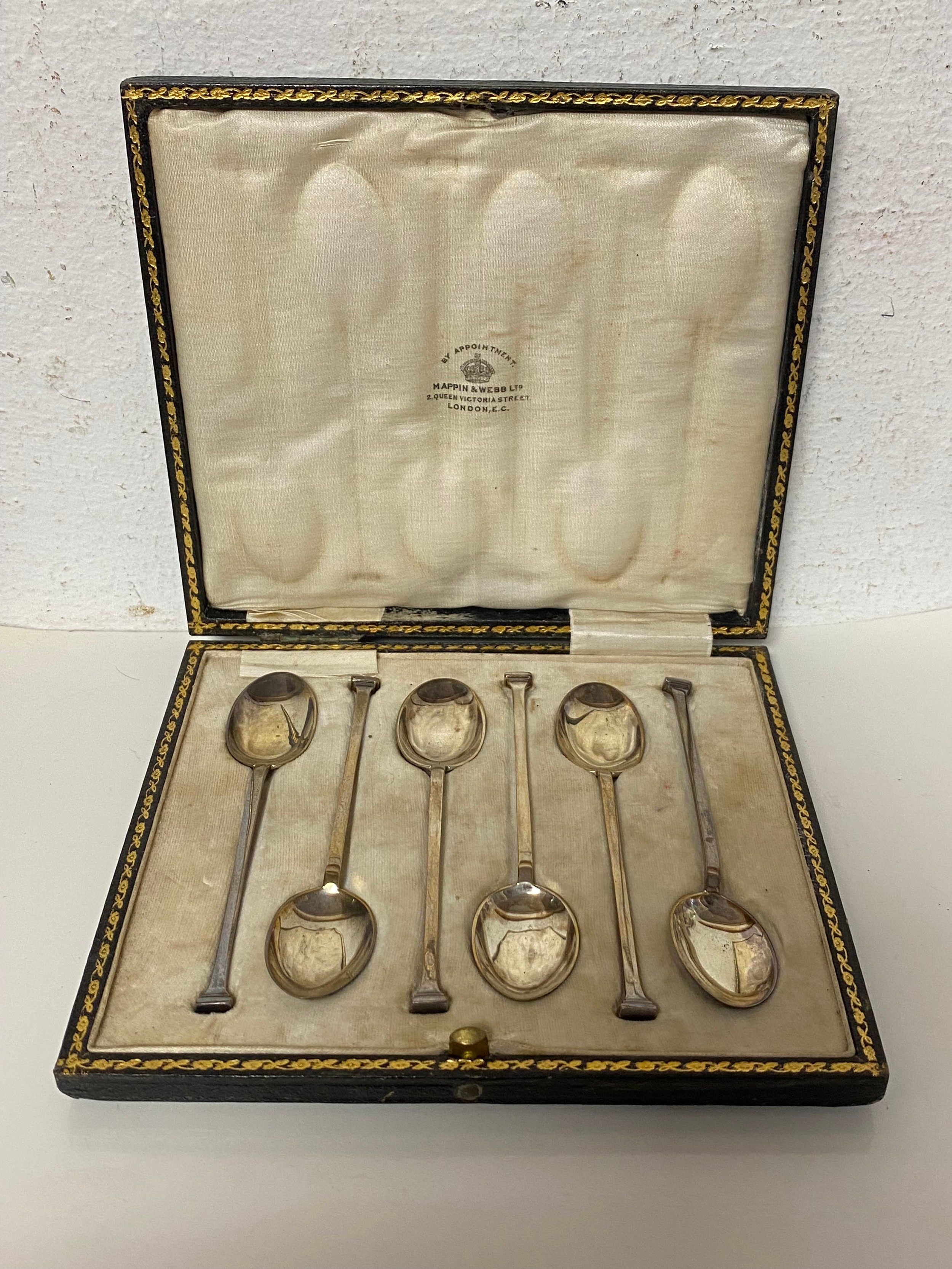 A set of six George VI silver teaspoons, Mappin and Webb, Sheffield 1915, in fitted case -