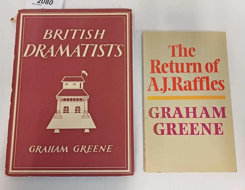 THE RETURN OF A. J. RAFFLES BY GRAHAM GREENE, SIGNED PRESENTATION INSCRIPTION - 1975, AND BRITISH DRAMATISTS BY GRAHAM GREENE - 1942