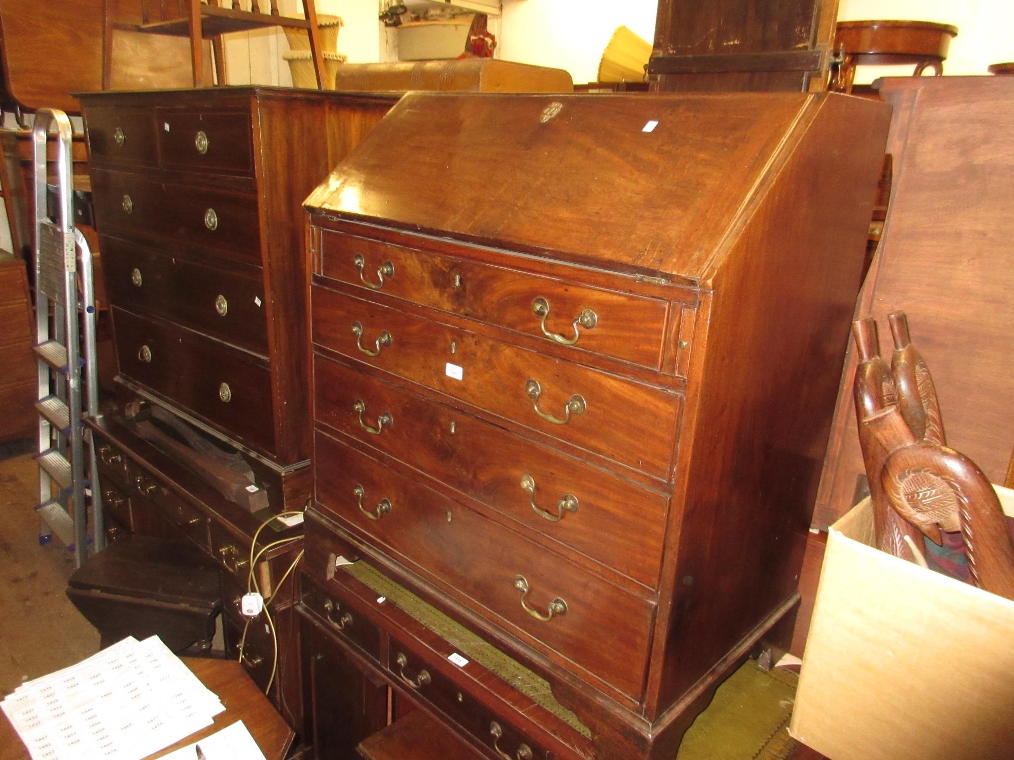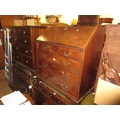 Early 19th Century mahogany bureau, the fall front enclosing a fitted interior above four graduated drawers with original brass swan neck handles, raised on bracket feet, 41.5ins high x 37ins wide x 22ins deep