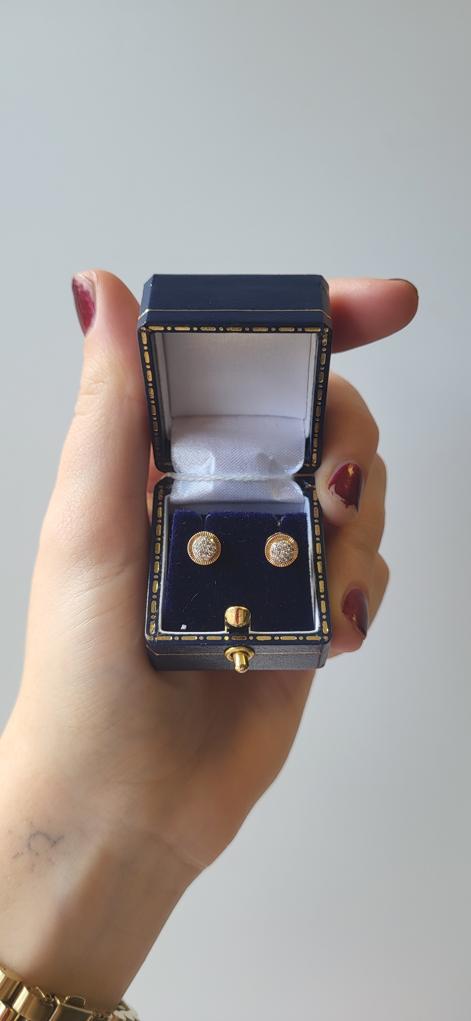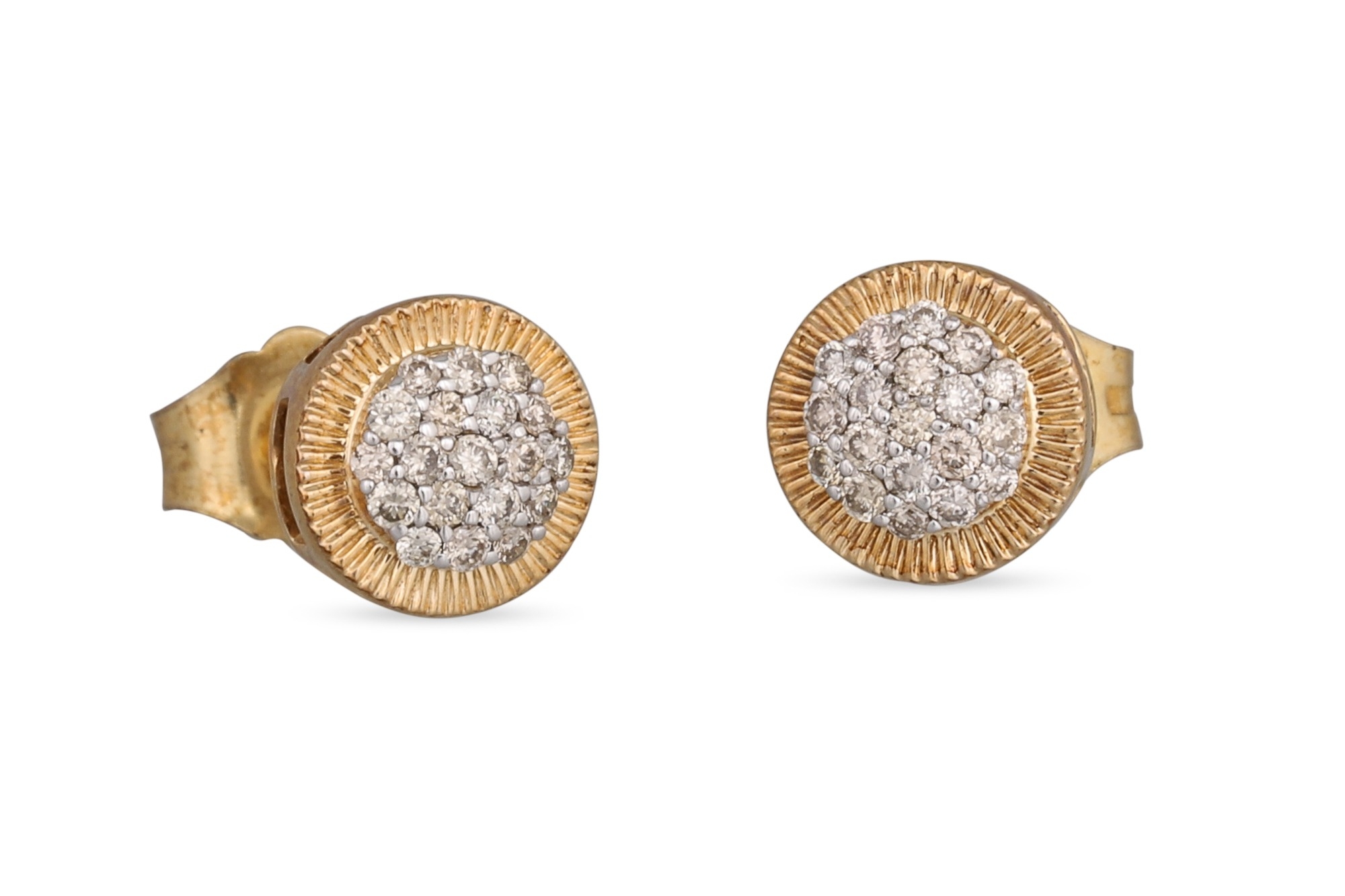 A PAIR OF DIAMOND CLUSTER EARRINGS, to fluted gold surround, set in 9ct yellow gold, post & butterfly back fittings