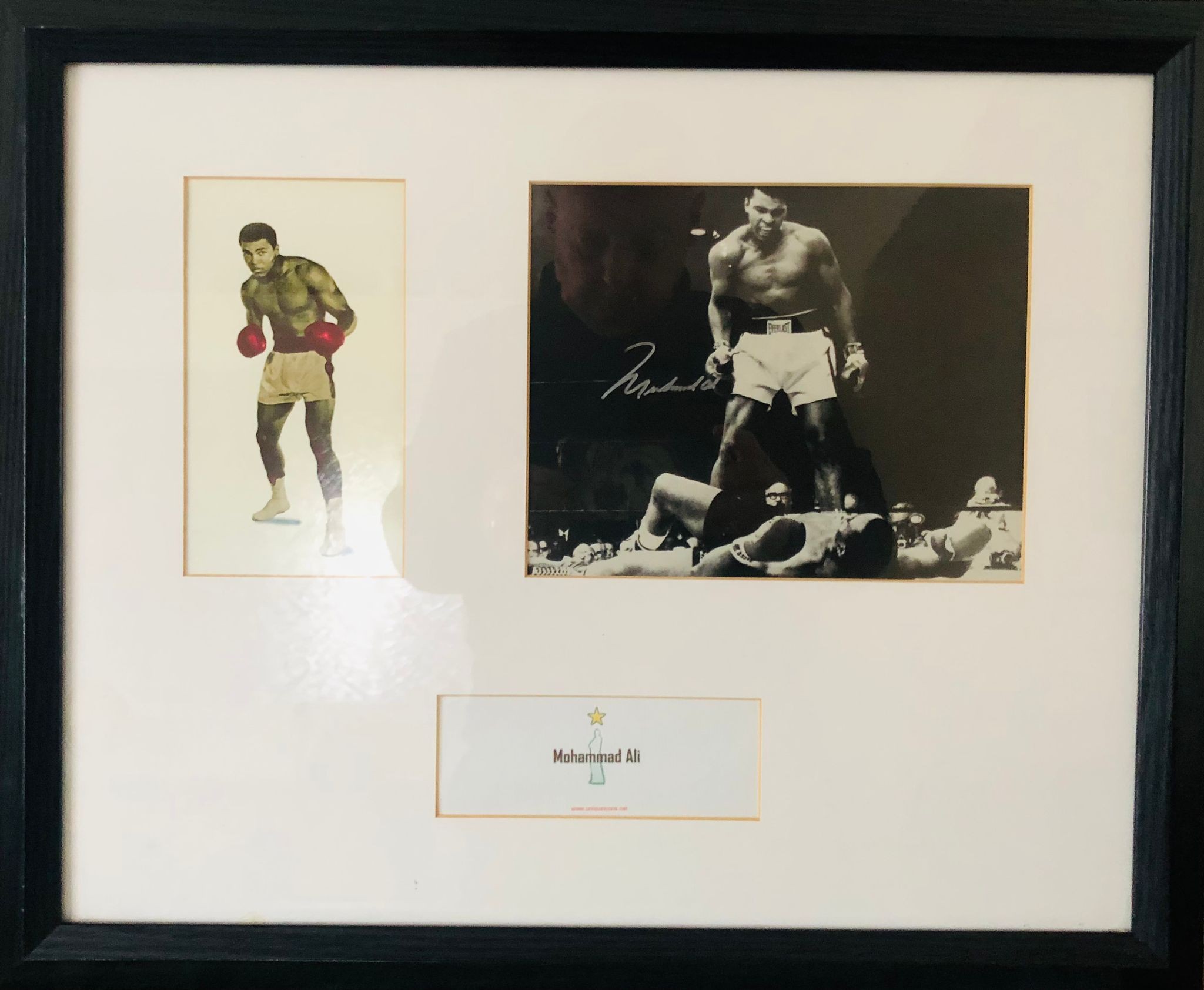 A framed signed photograph of boxer Muhammad Ali with certificate of authenticity