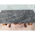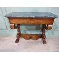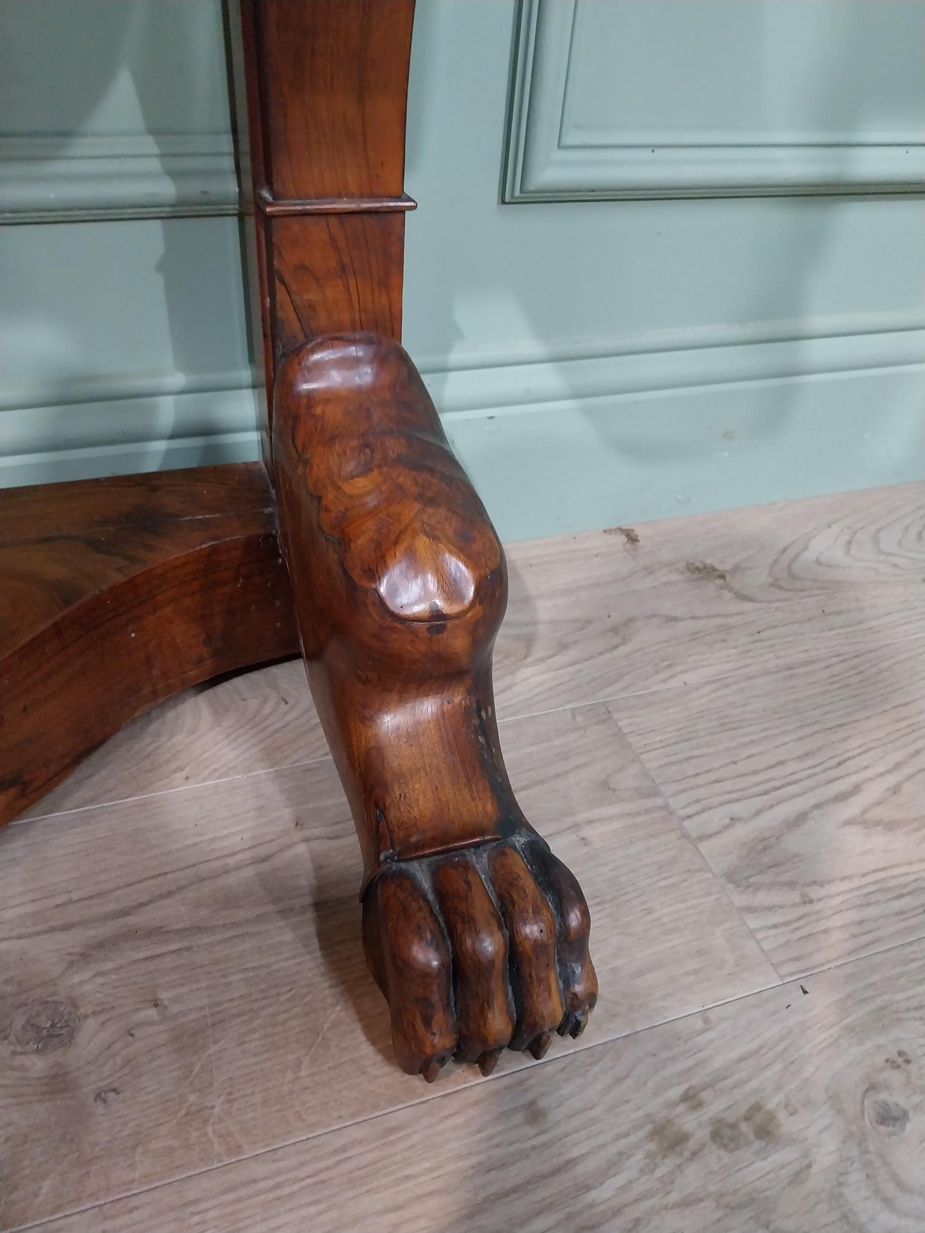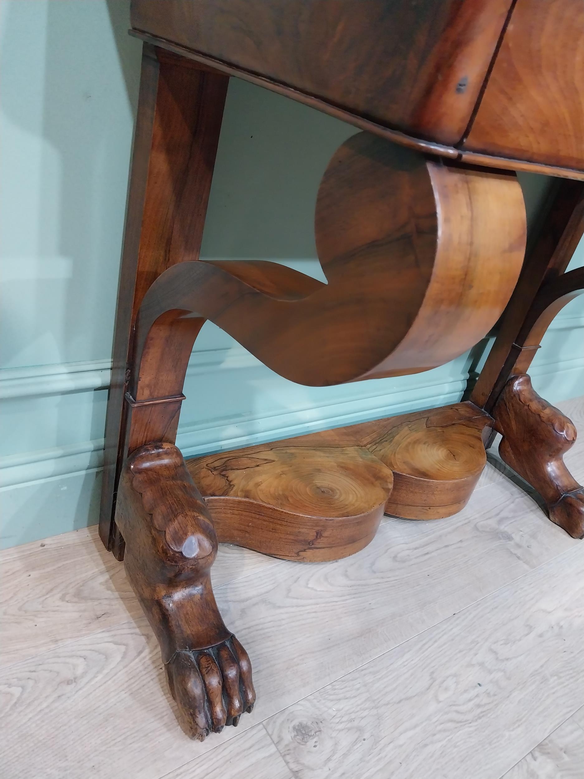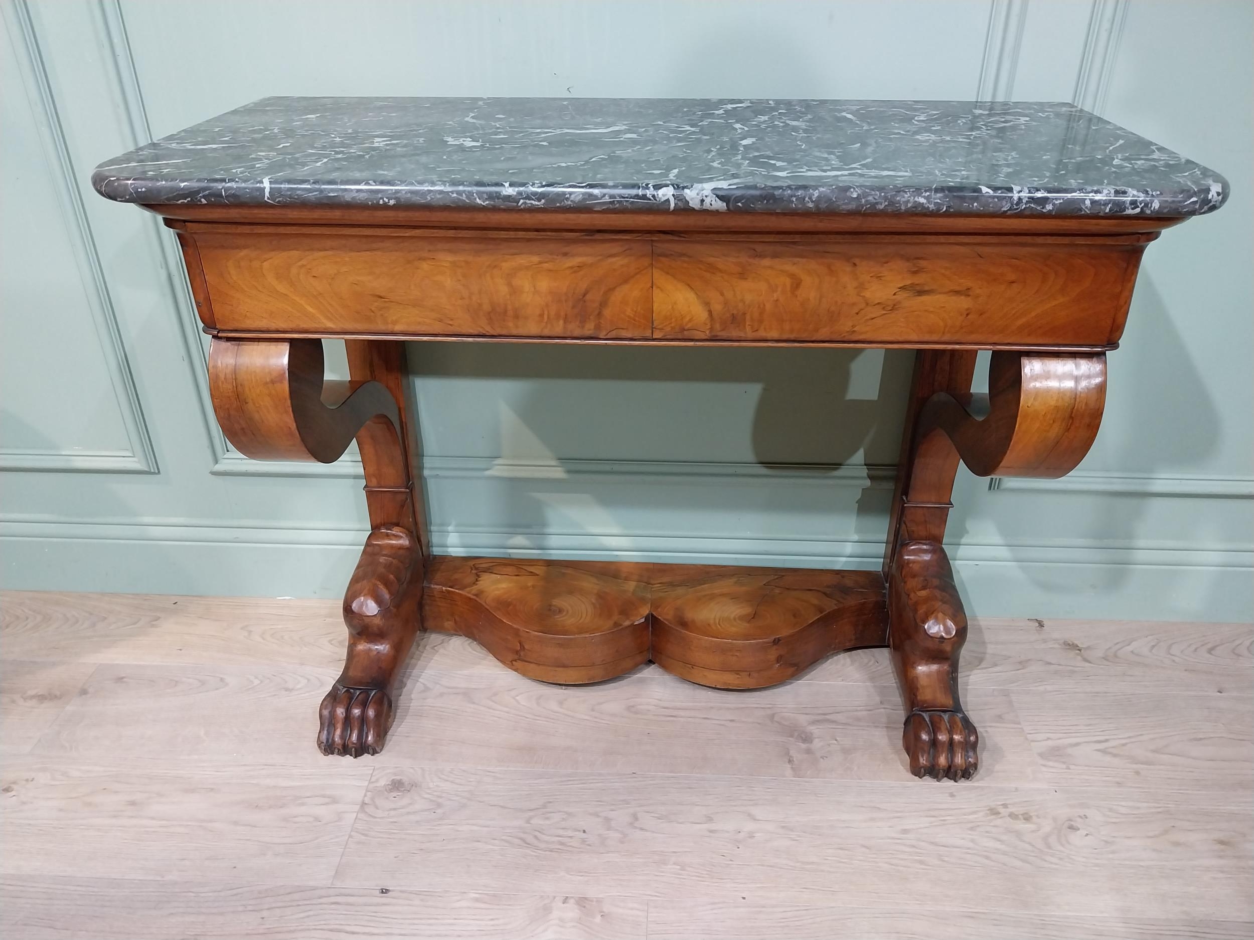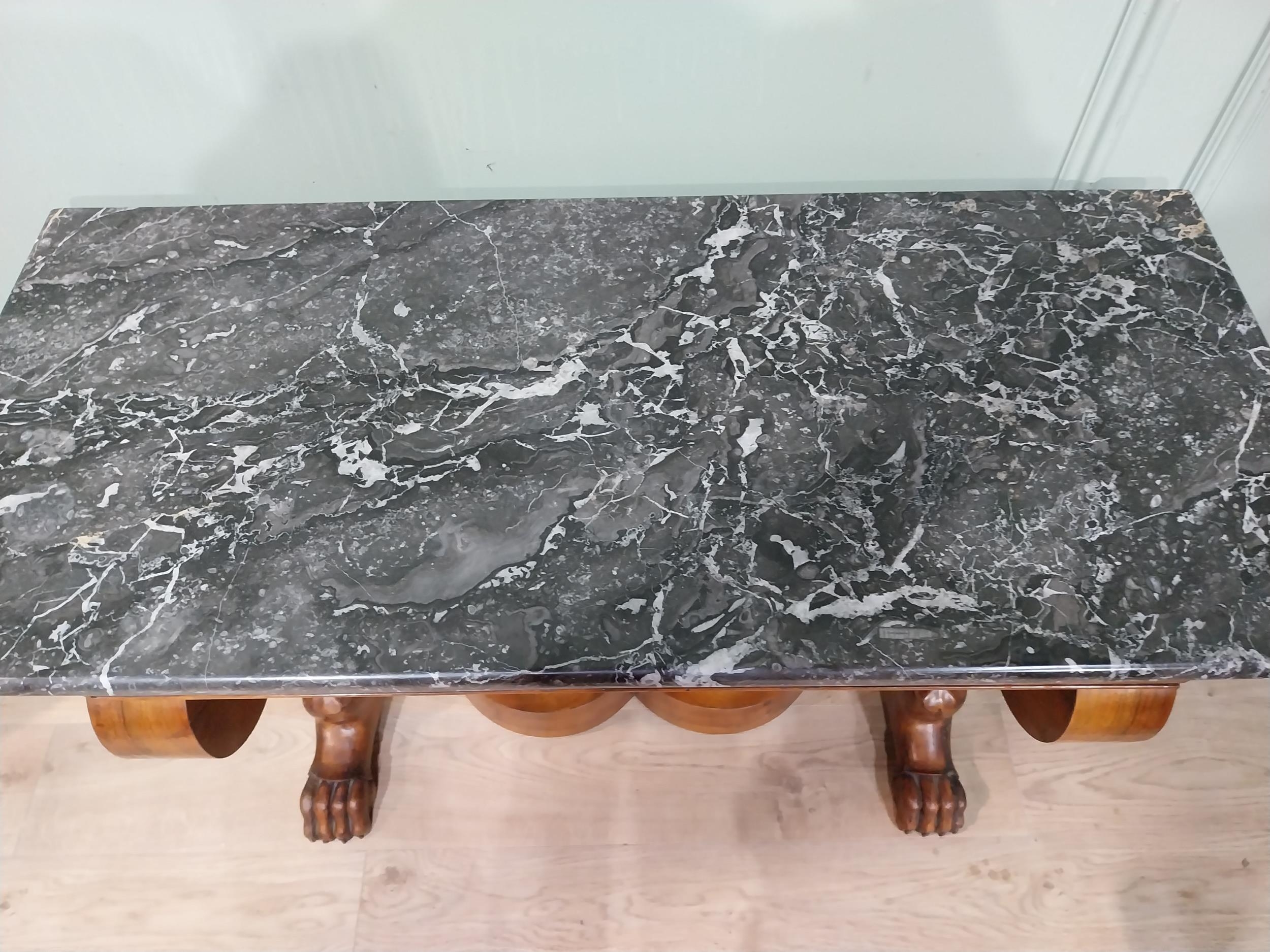 William IV French walnut console table on lion's paw supports and marble top. {79 cm H x 100 cm W x 45 cm D}.