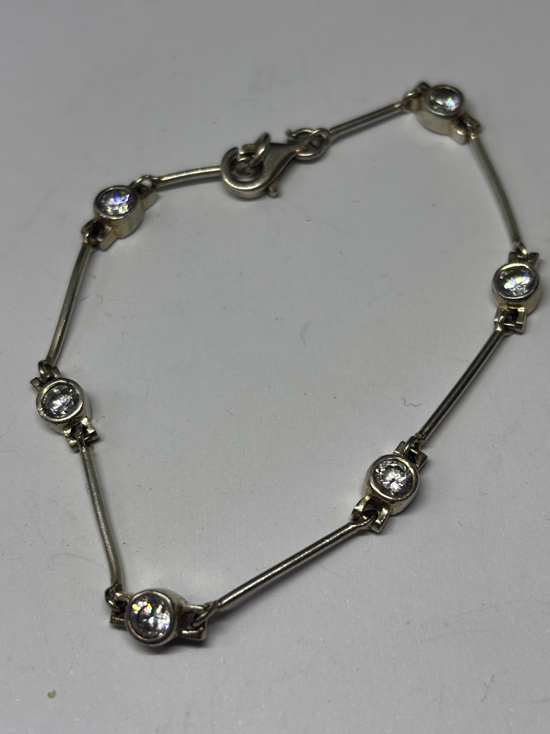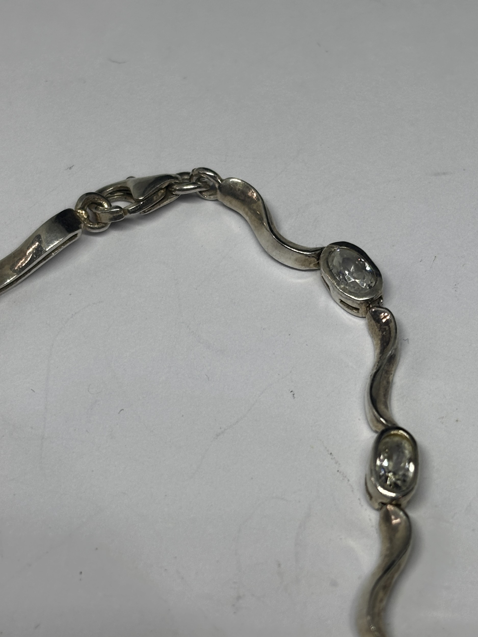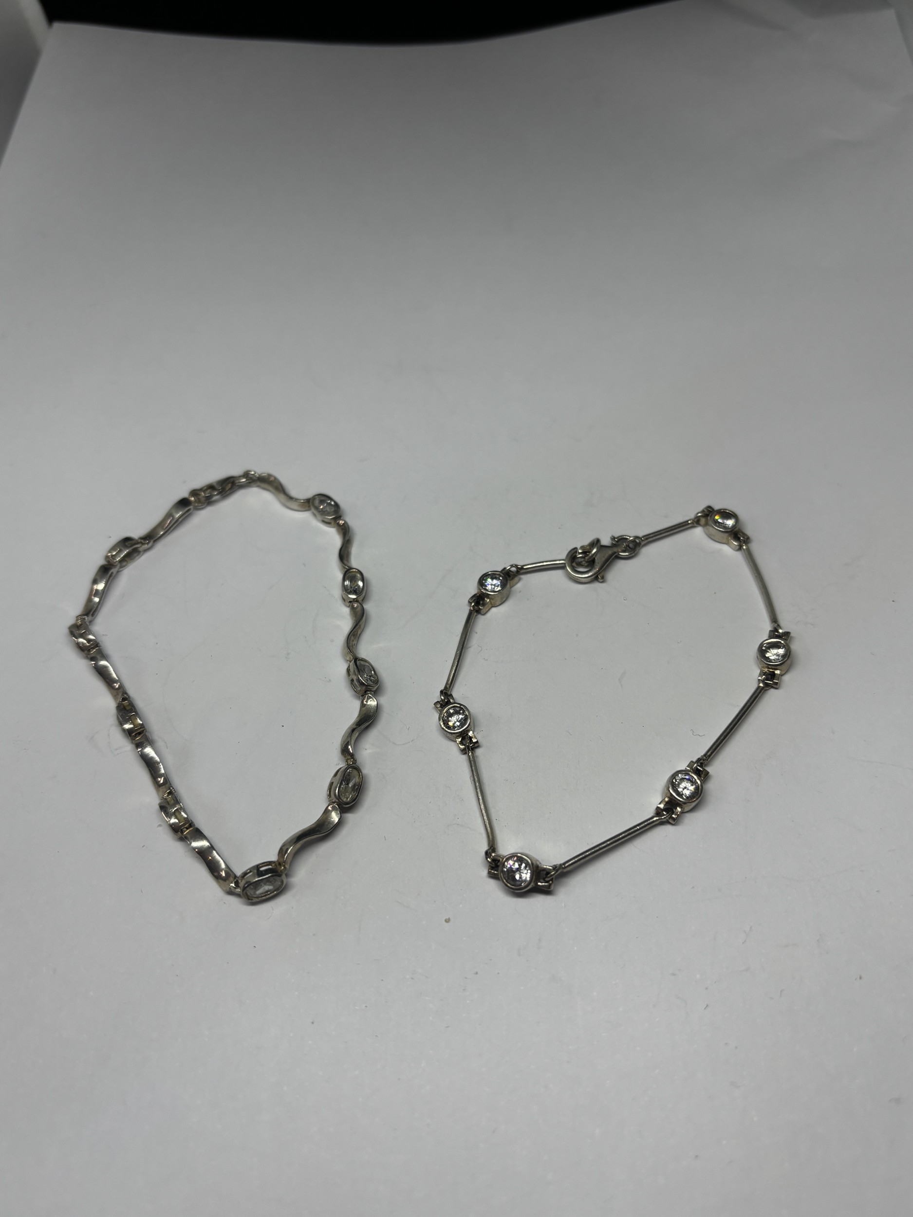 TWO SILVER BRACELETS WITH CLEAR STONES GROSS WEIGHT 12.31 GRAMS