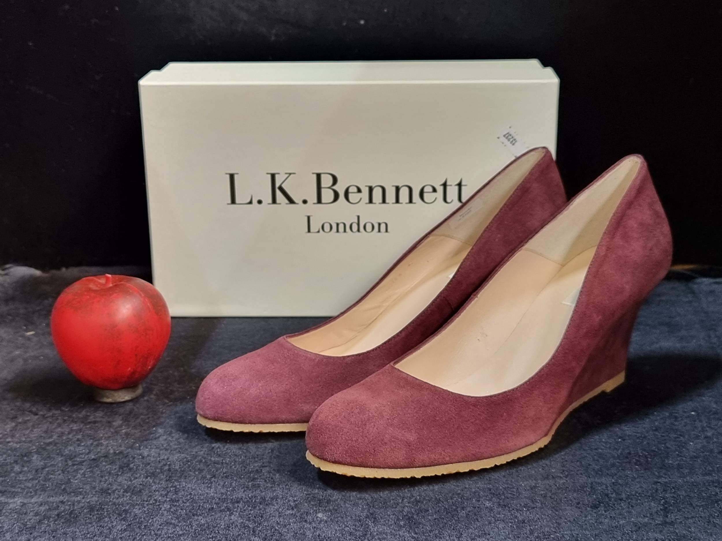A brand new stylish pair of L.K Bennet ladies bordeaux suede wedges. Size EU42. RRP £160.00 on www.lkbennet.com