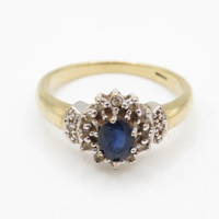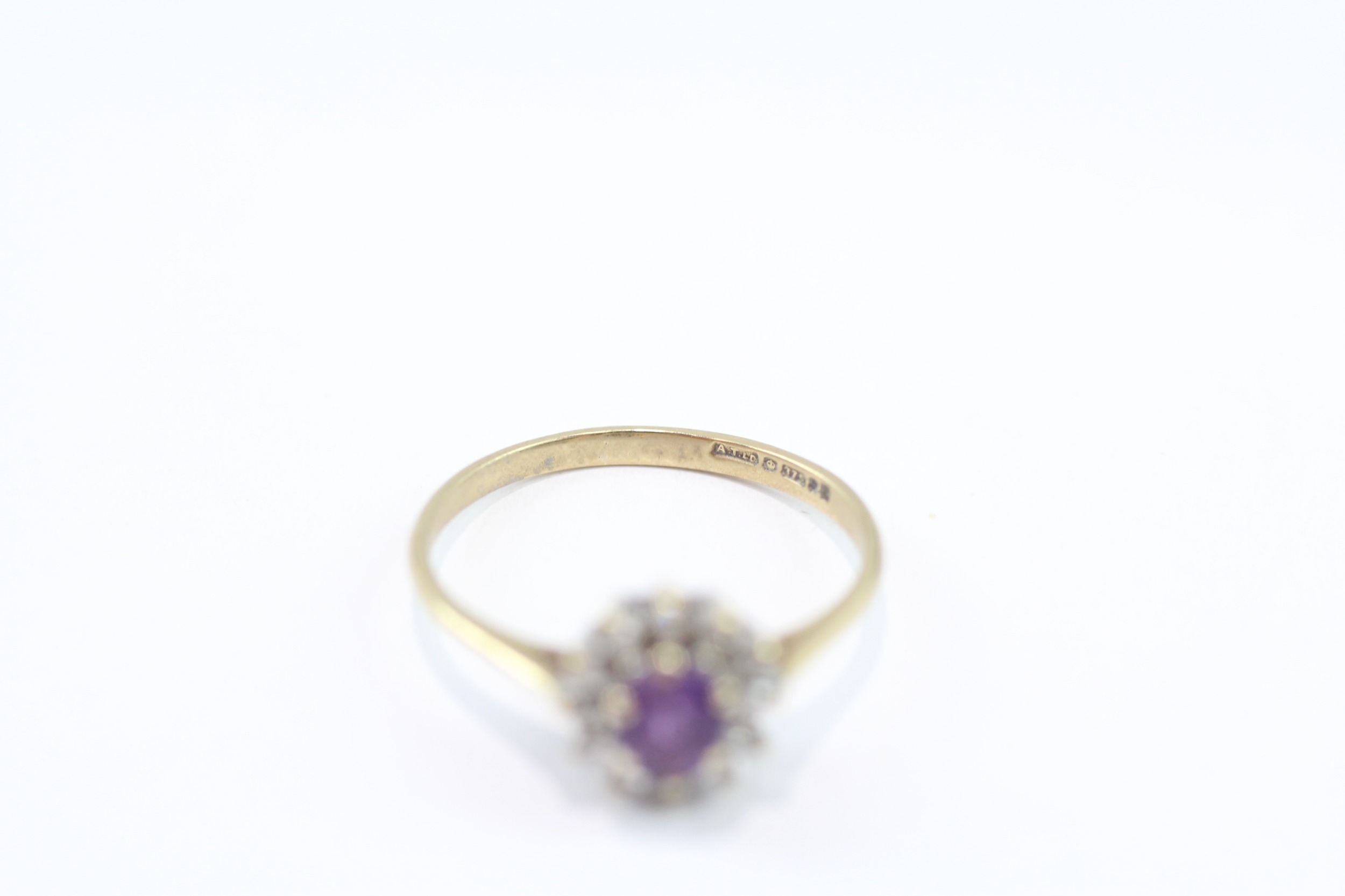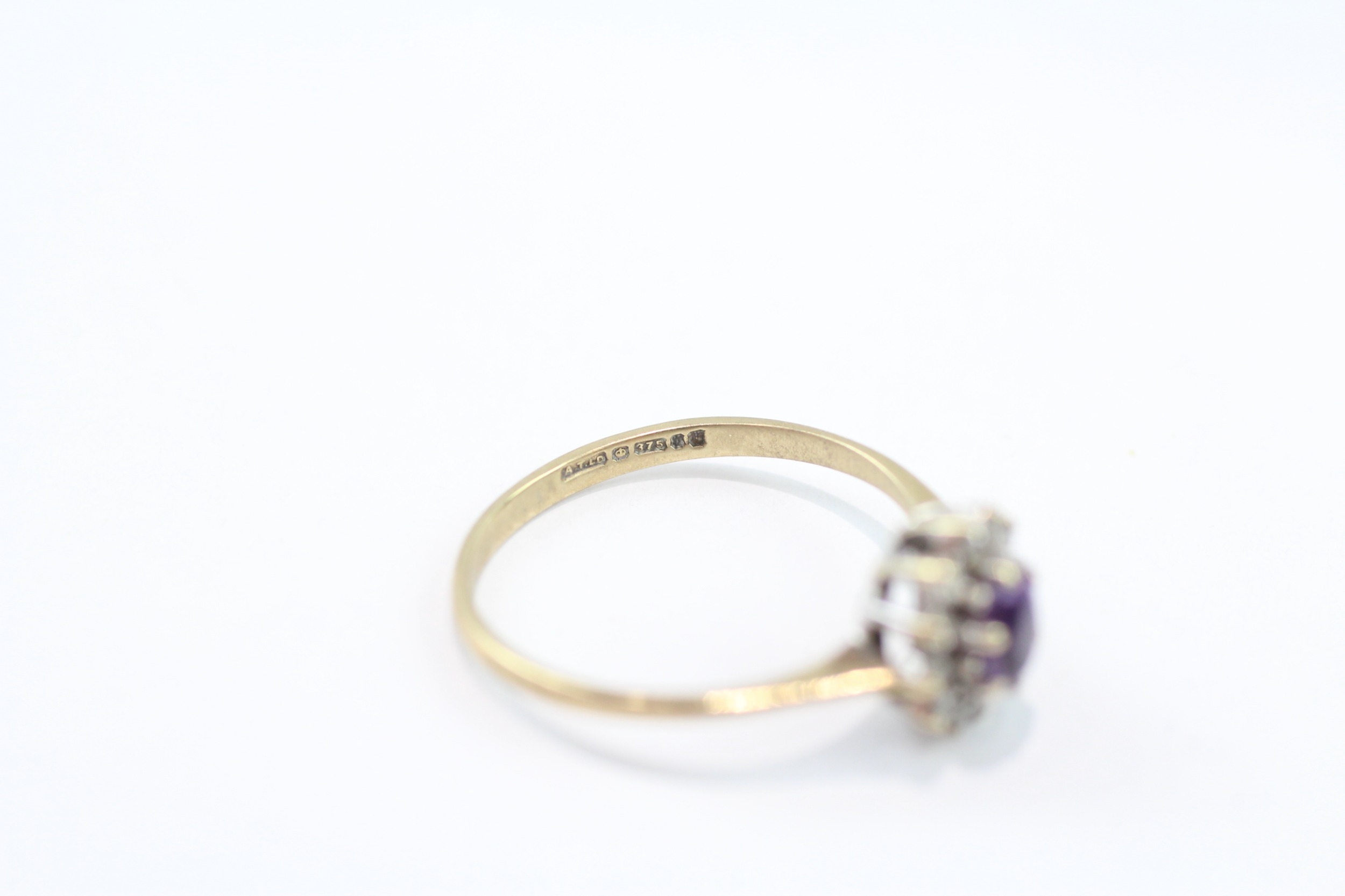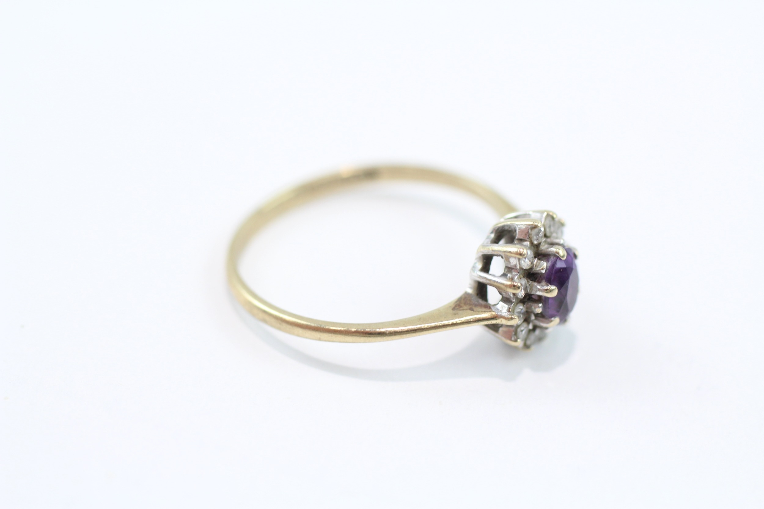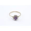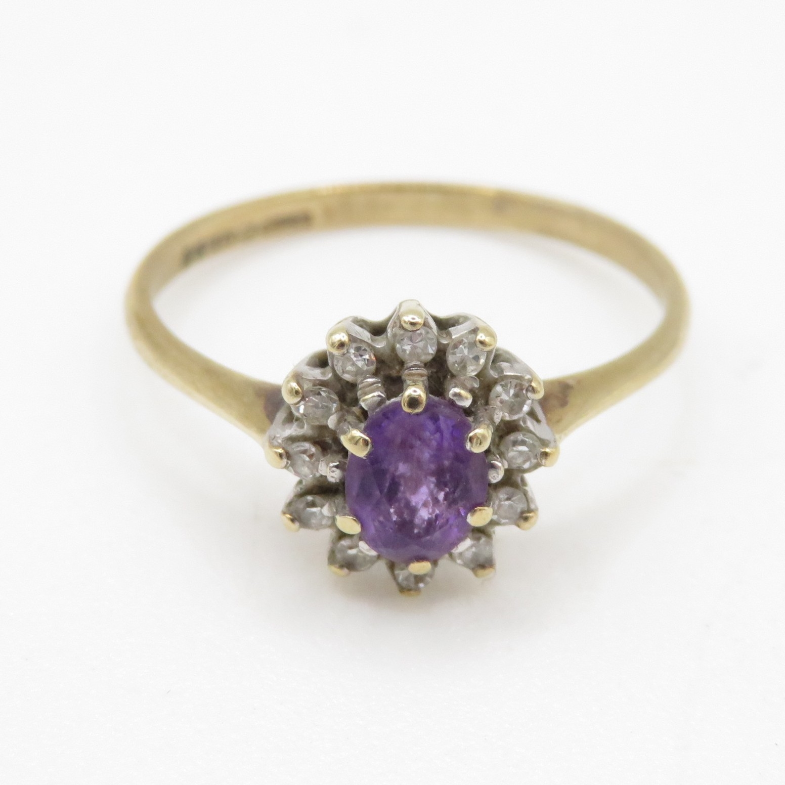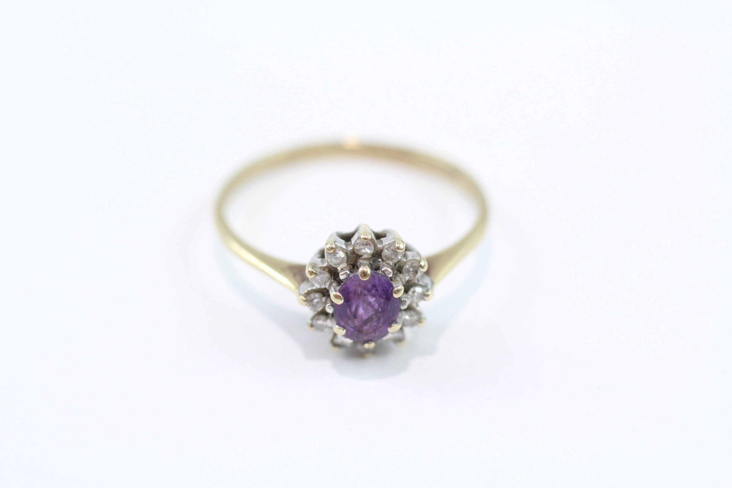 9ct gold vintage amethyst & diamond cluster ring (1.5g) Size L 1/2