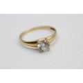 14ct Gold Clear Gemstone Solitaire Ring (2.5g) 4251
