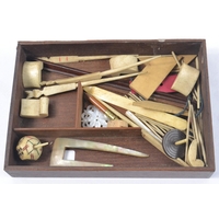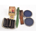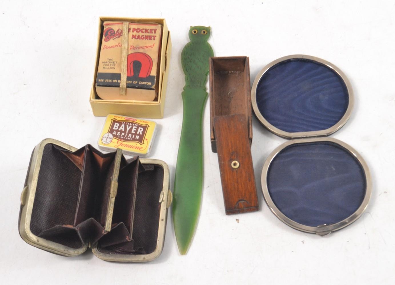 Curios lot to include Vintage pocket magnet, letter opener, purse, small wooden box etc