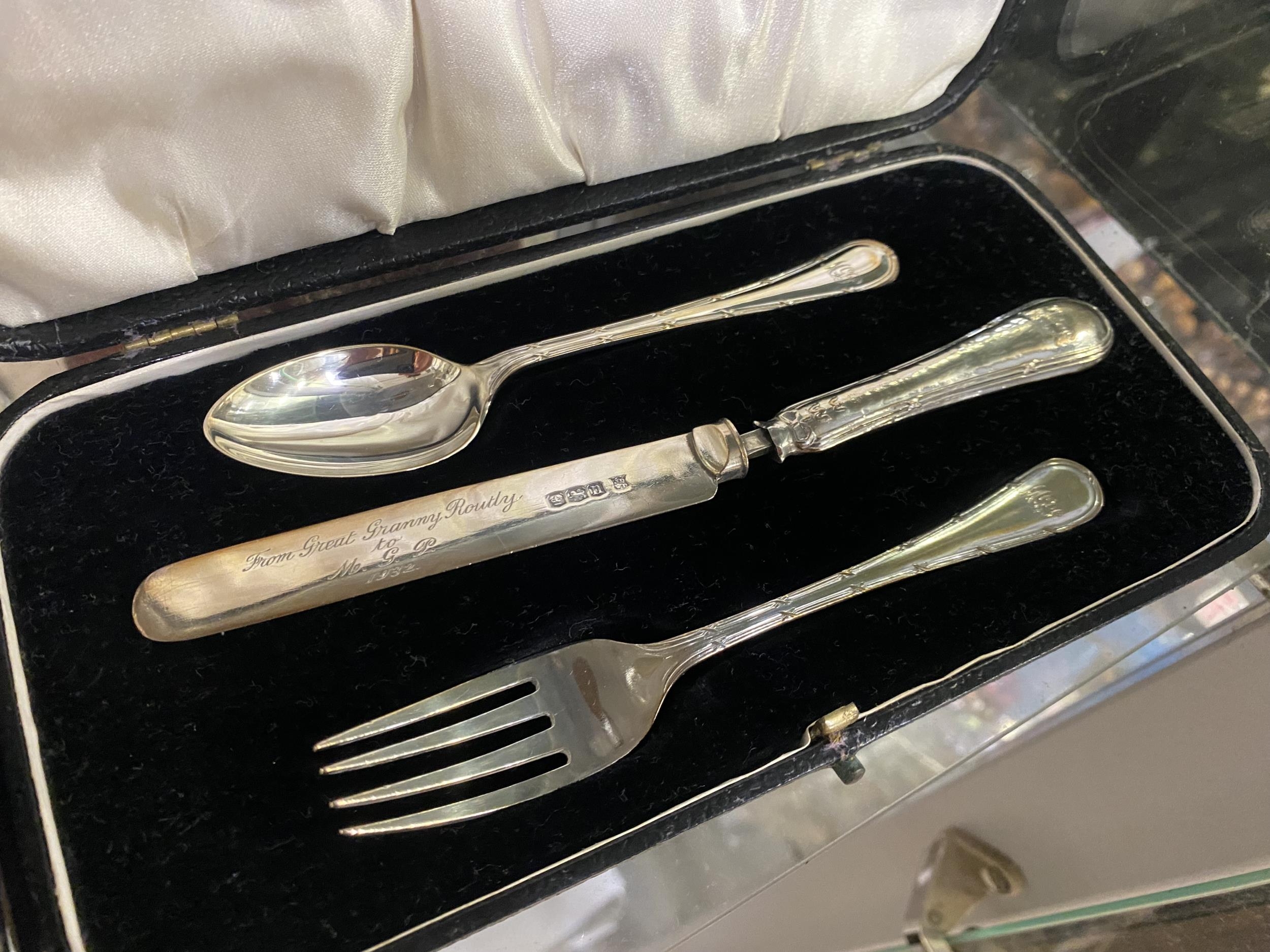 Christening set of knife, fork and spoon. Hallmarked Sheffield 1942