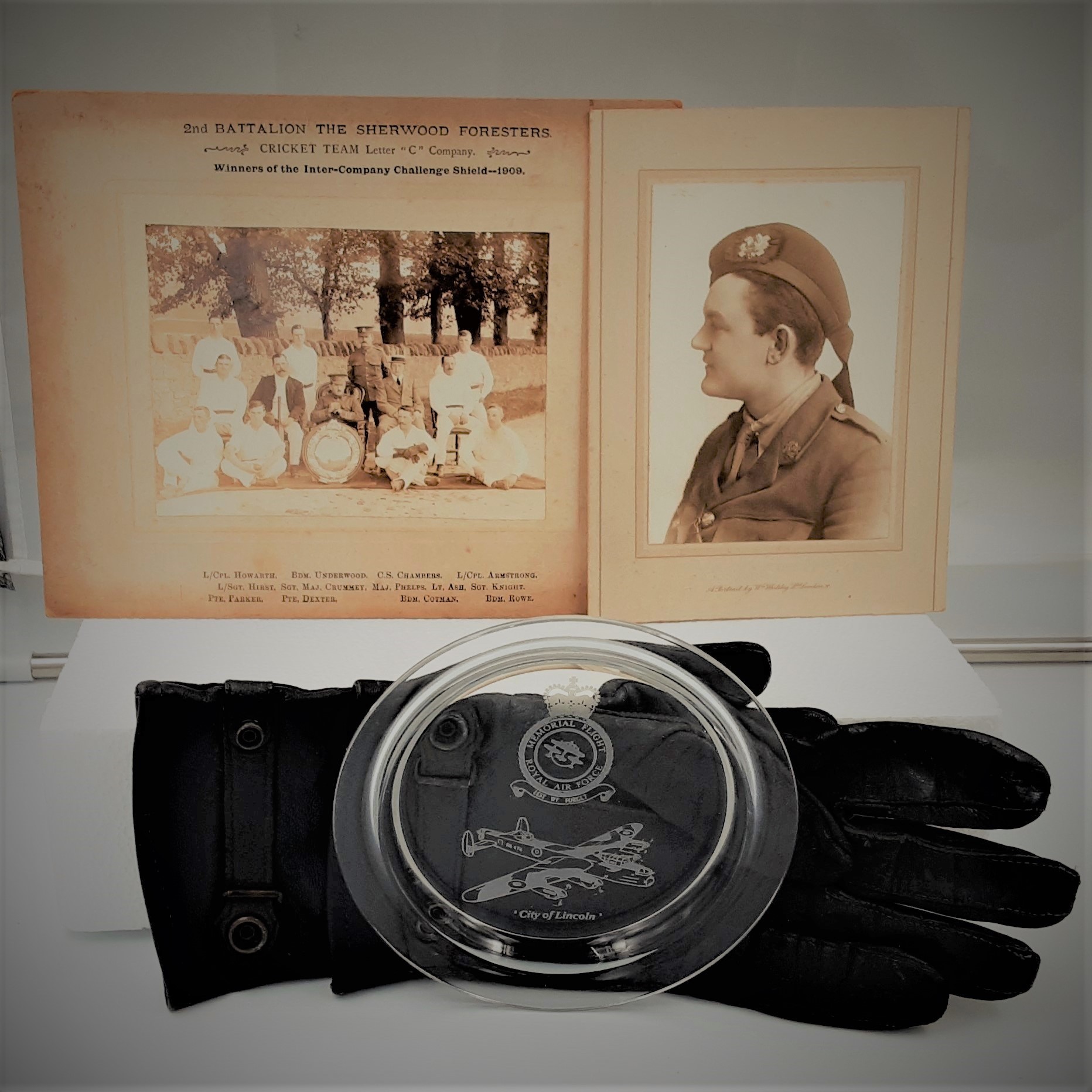Collection of WW1 Ephemera - Gloves, Photos, Plate