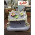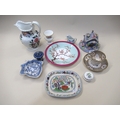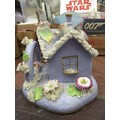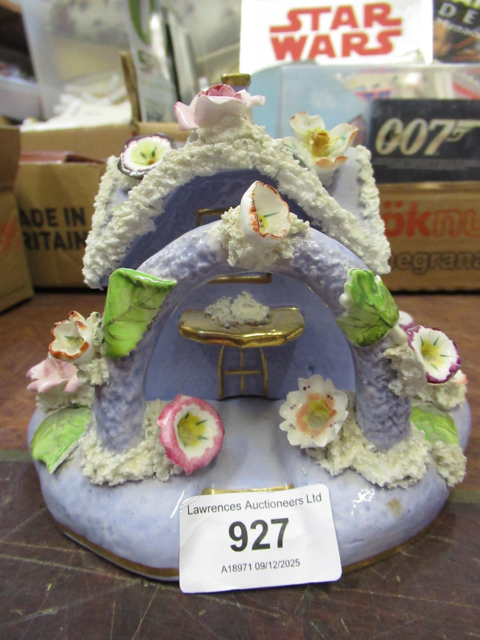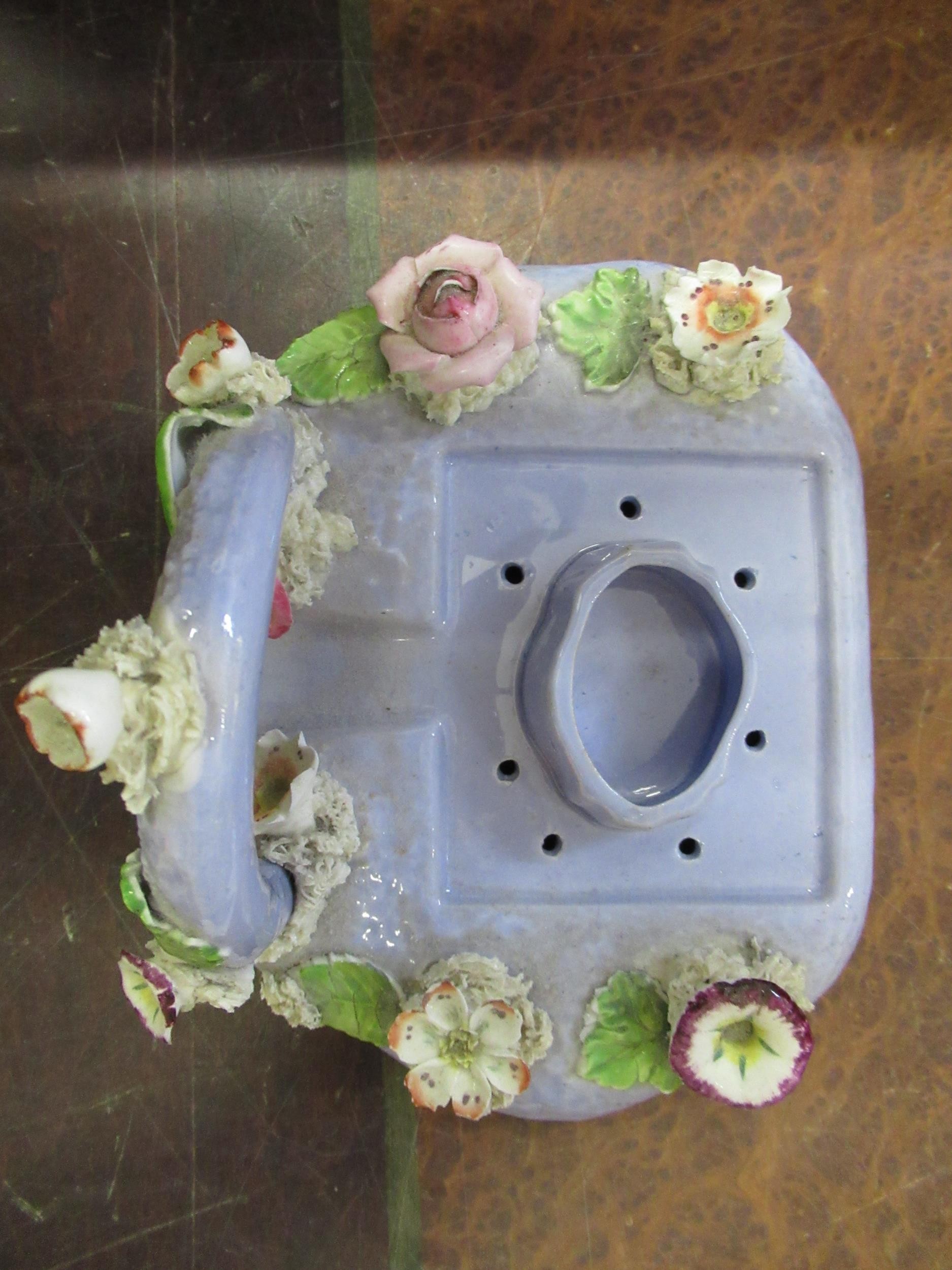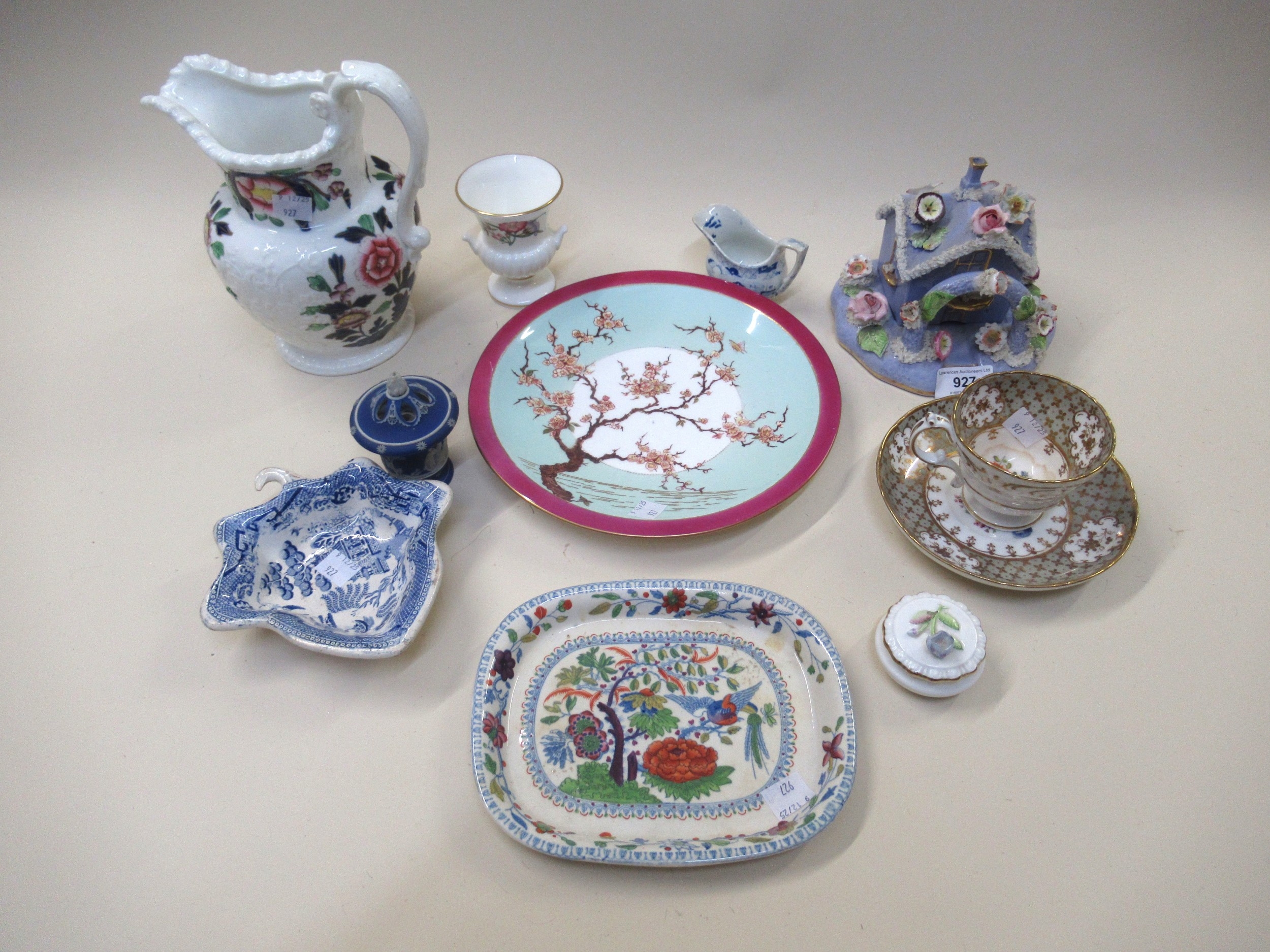 19th Century English floral encrusted pastille burner cottage with stand, and a small quantity of other 19th / 20th Century English porcelain and pottery