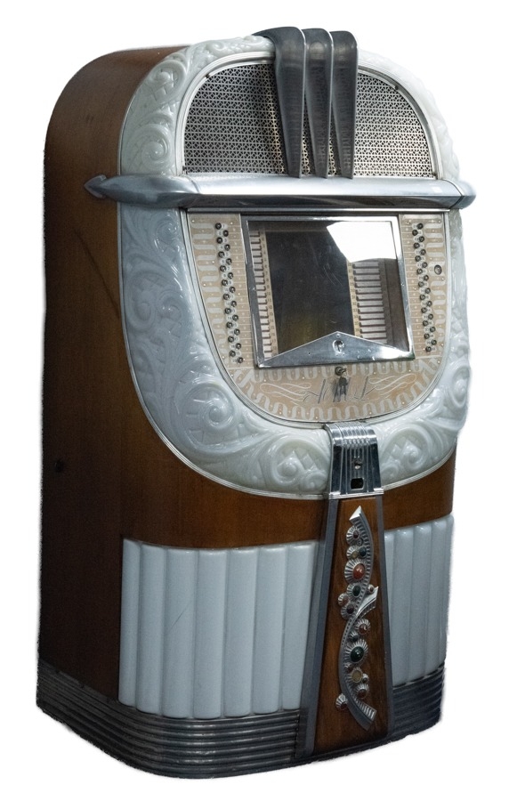 AMI MODEL A, MOTHER OF PLASTIC 1946 JUKEBOX, with 39 selections of 78 RPM records, (c/r coin mechanism re-housed by Jim Farrington; not working, needs servicing due to lack of use)