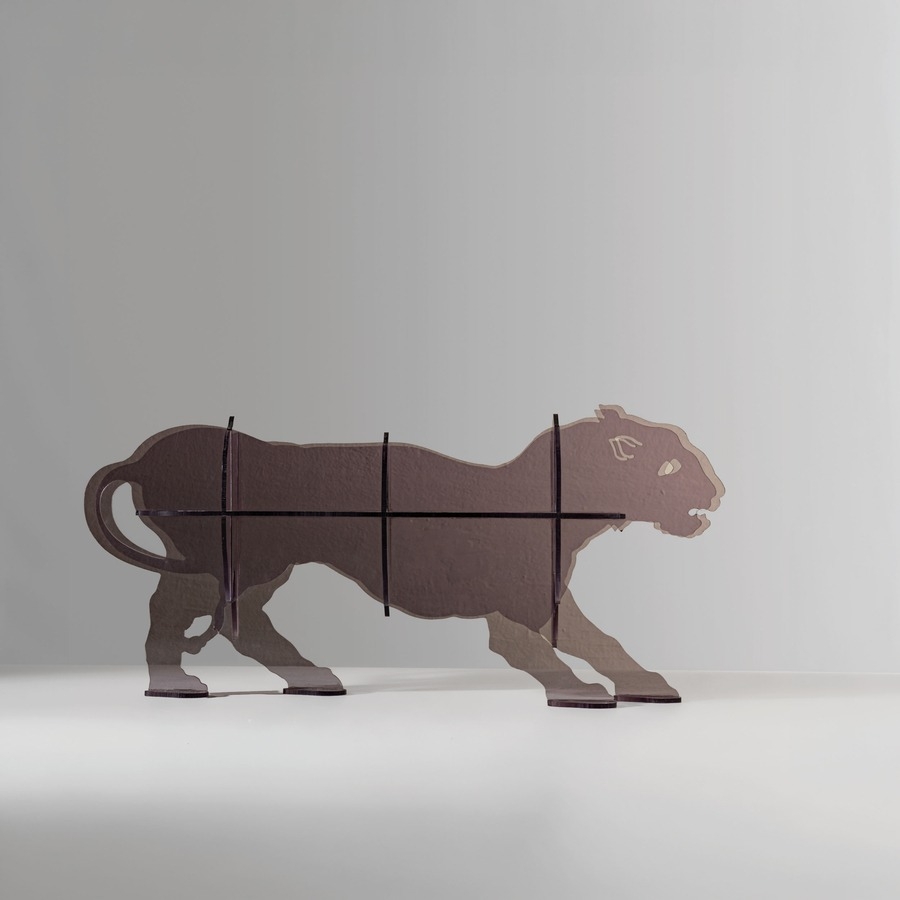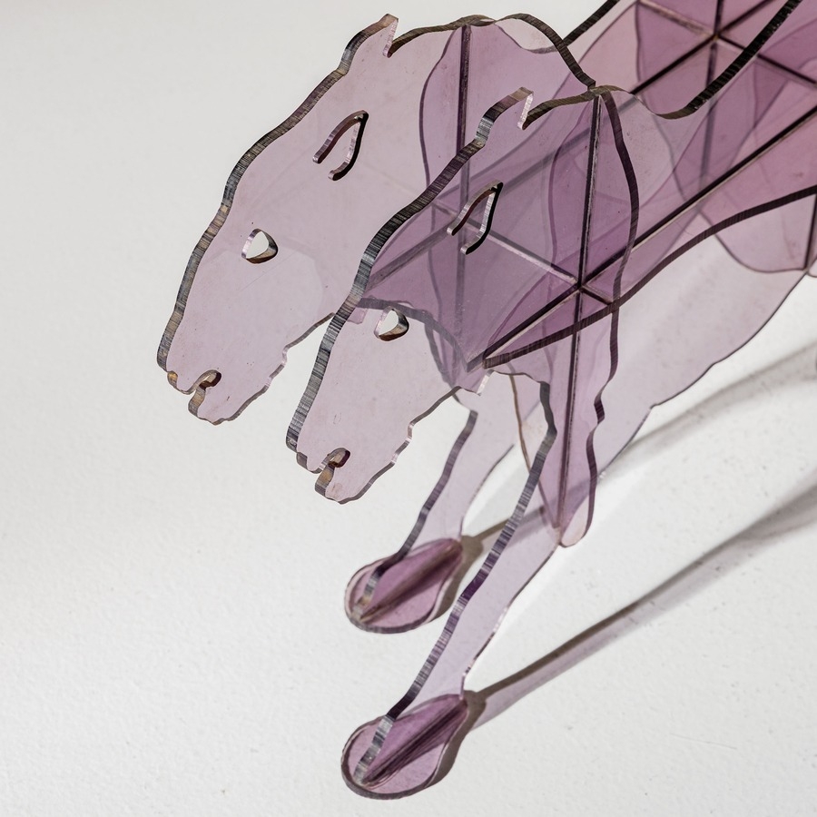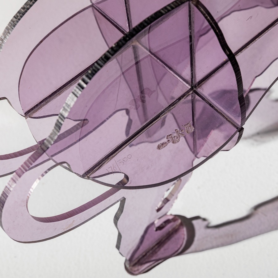 Scultura portaoggetti. Plexiglass colorato e sagomato. Firma incisa a caldo. Italia anni '70.