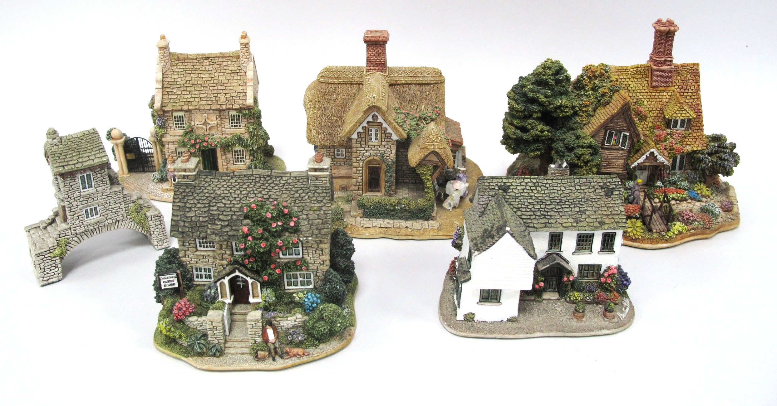 Six Boxed Lilliput Lane Models: L2125 Shades of Summer, L2271 Tabitha Twitchet’s, L2022 Sore Paws, 773 Bargate Cottage Tea Room, 022 Bridge House 1991, L2192 Tarnside:- One Tray.