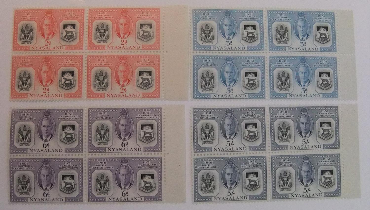 1951 Nayasaland - 4 blocks of 4 sets with side perfs