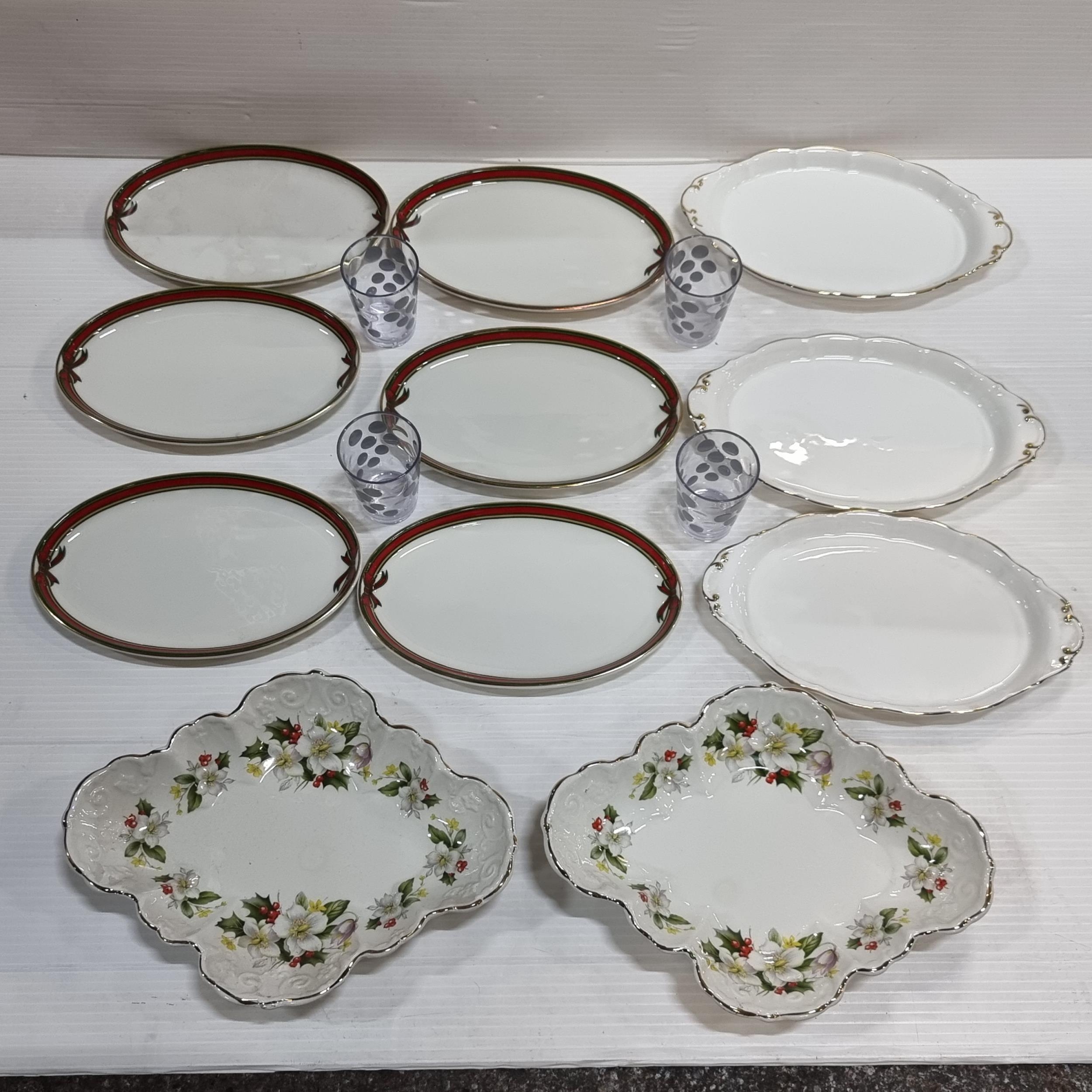 16 items with a good selection of serving dishes including examples by Royal Doulton in the festive Ribbon pattern.