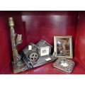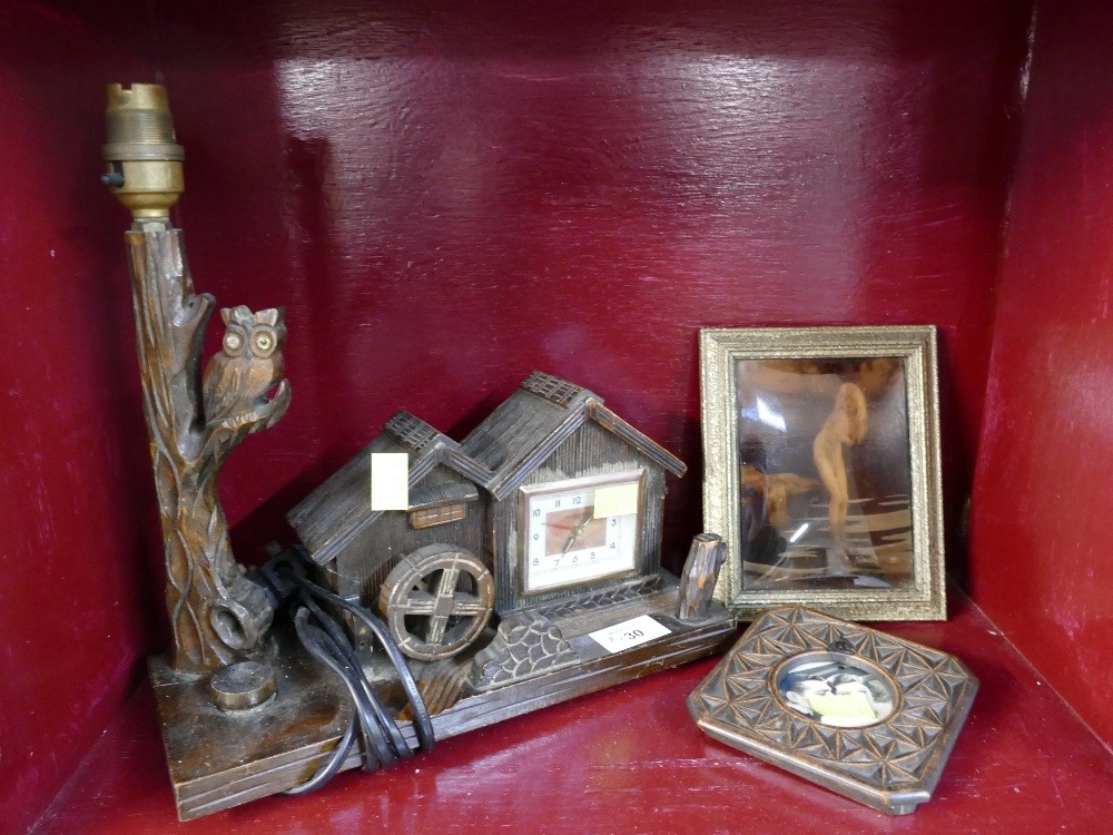 Vintage Blackforest style combination clock/lamp, crystoleum and Liberty style picture frame