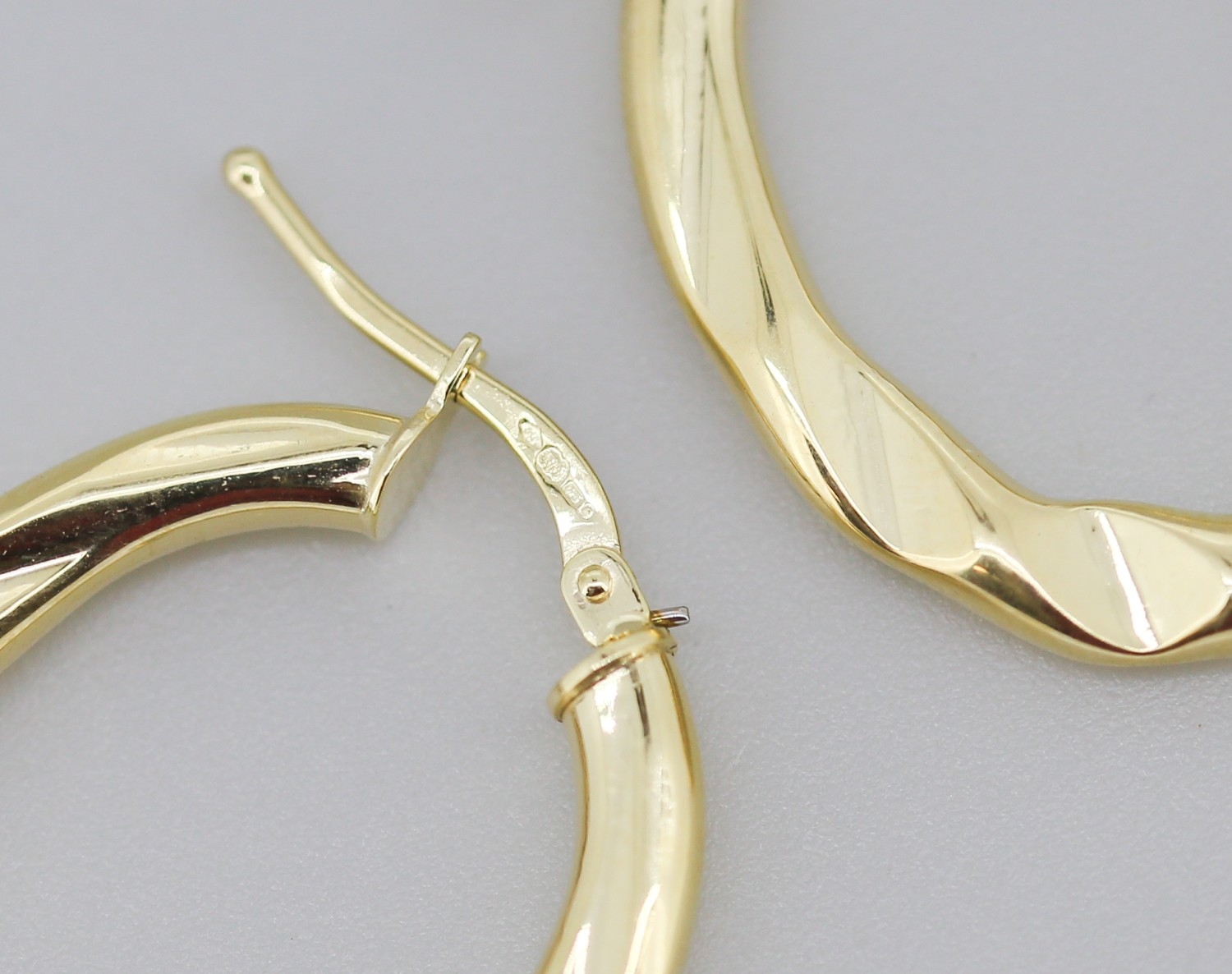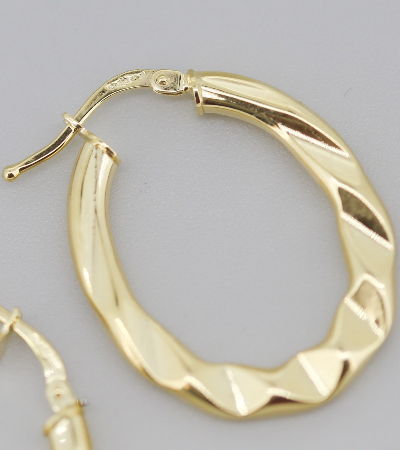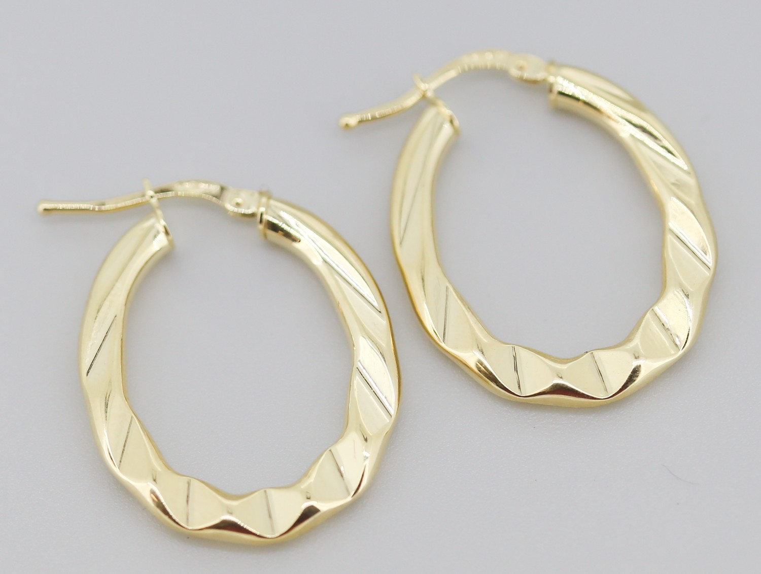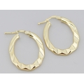 Pair of Moder Form Oval Hoop Earrings Mounted in 9 Carat Yellow Gold 3cm
