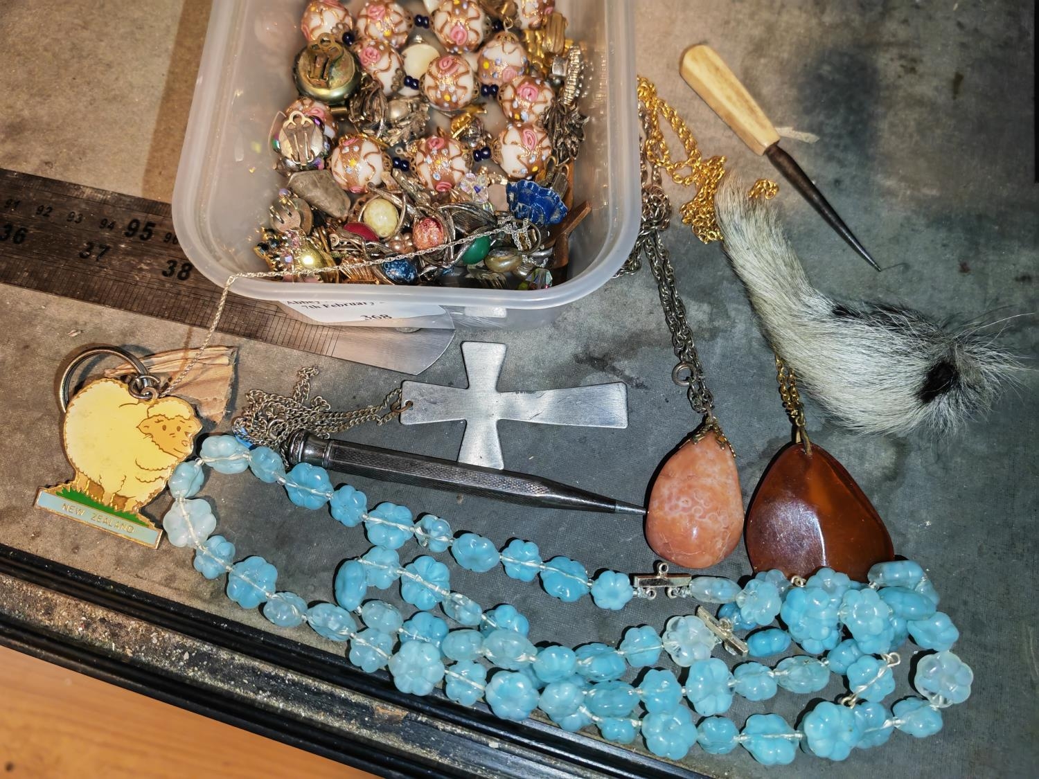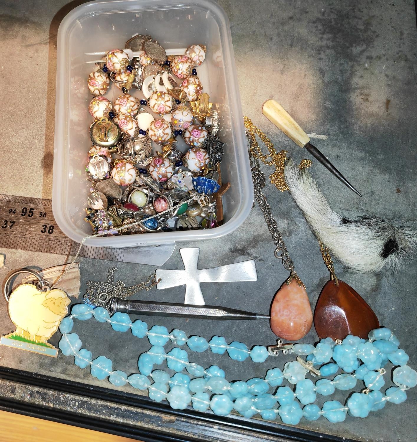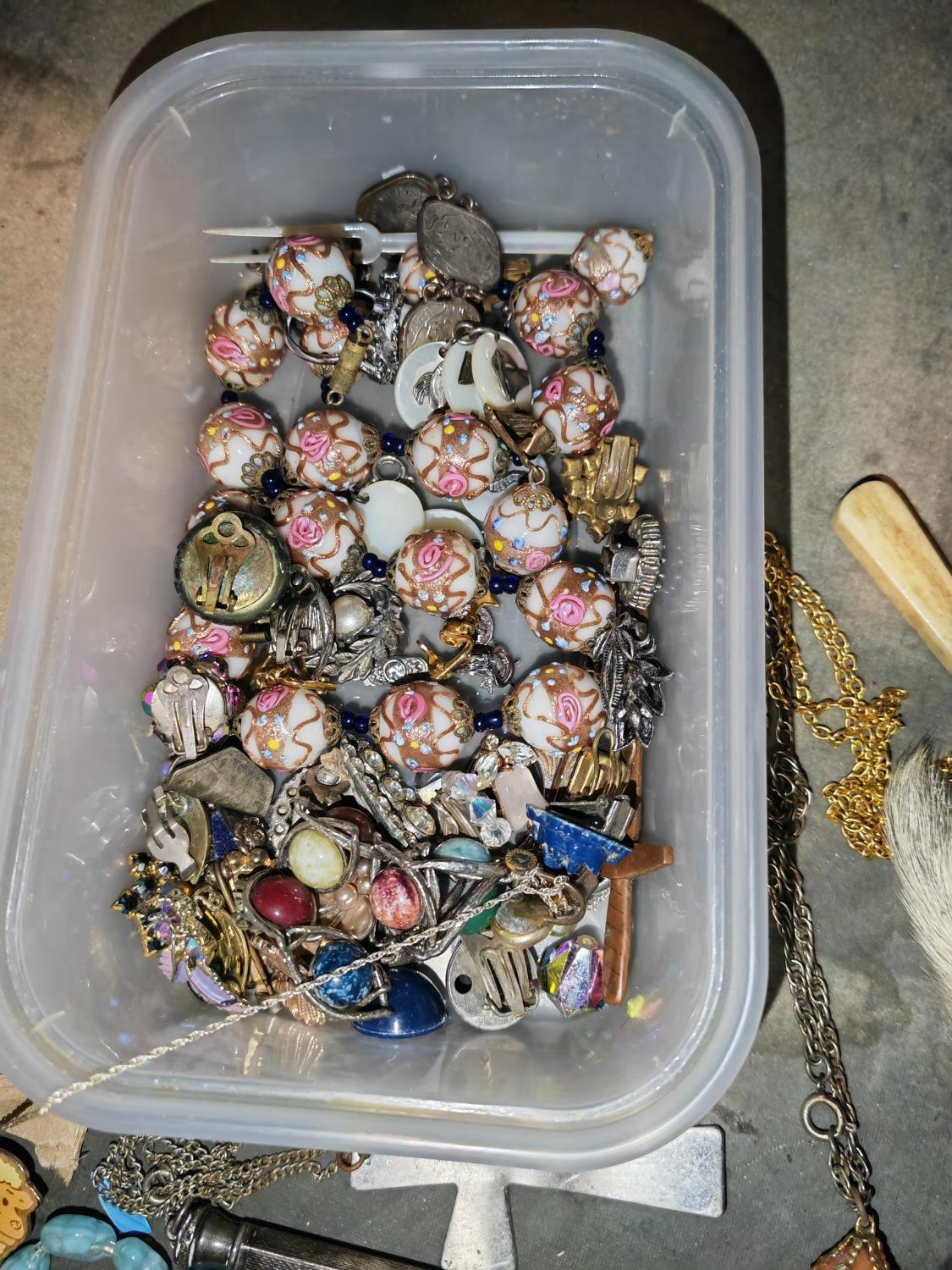 Tub Of Costume Jewellery Including Pencil, Manicure Items Etc