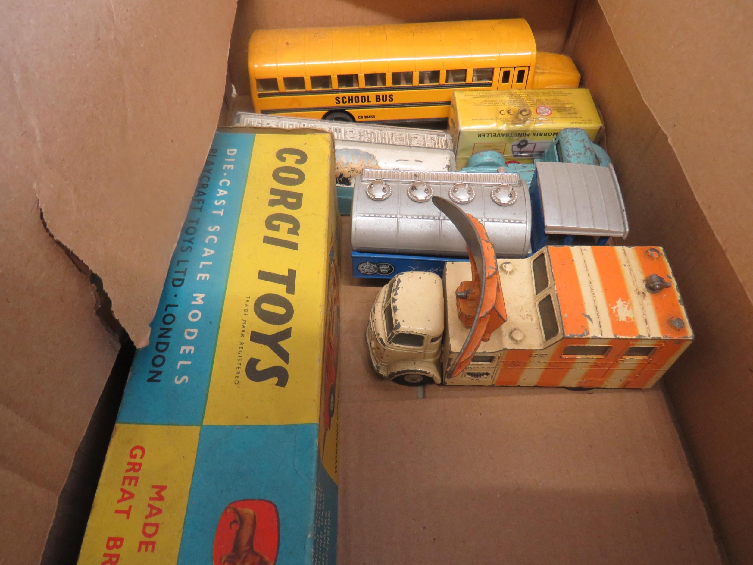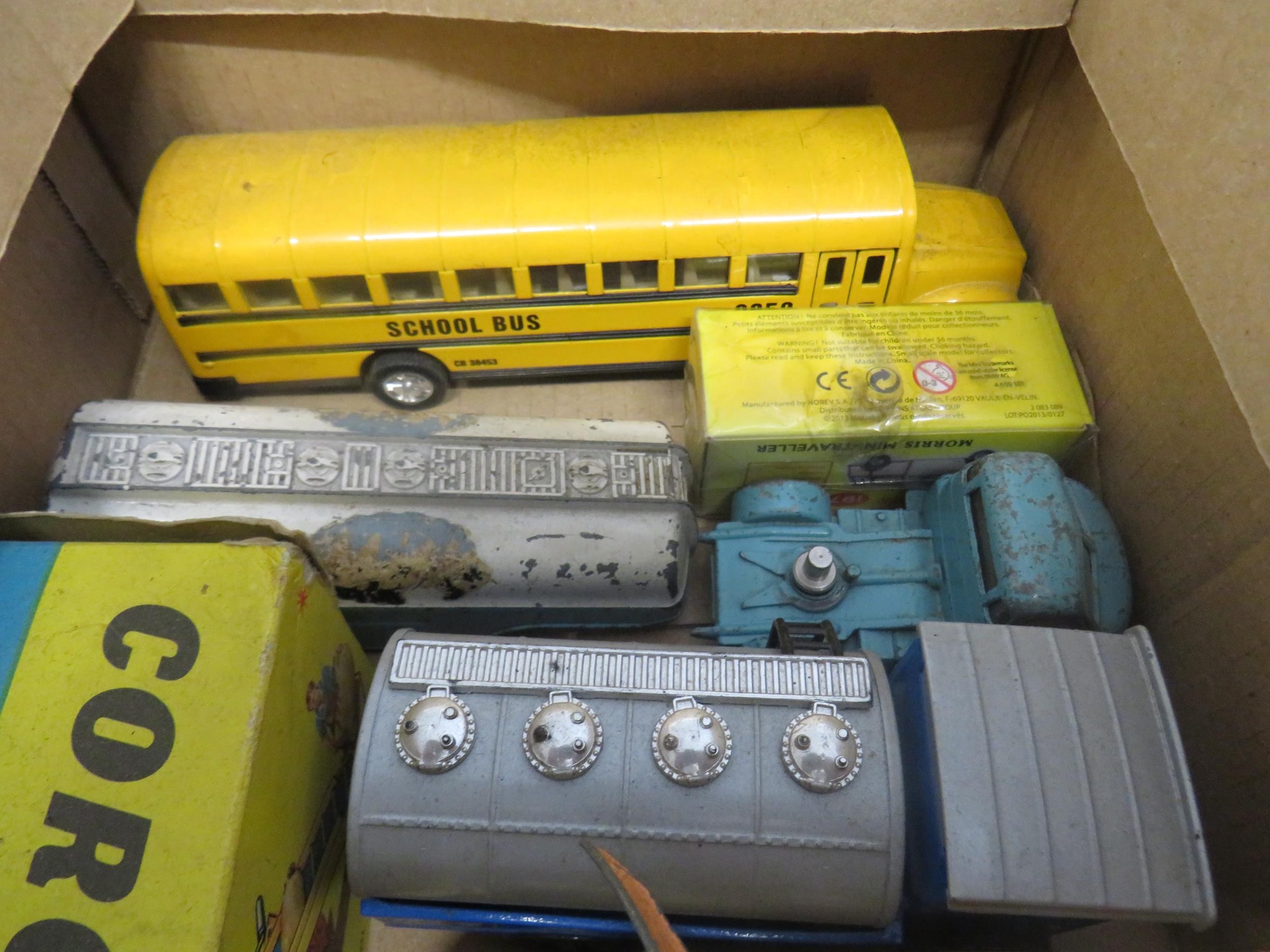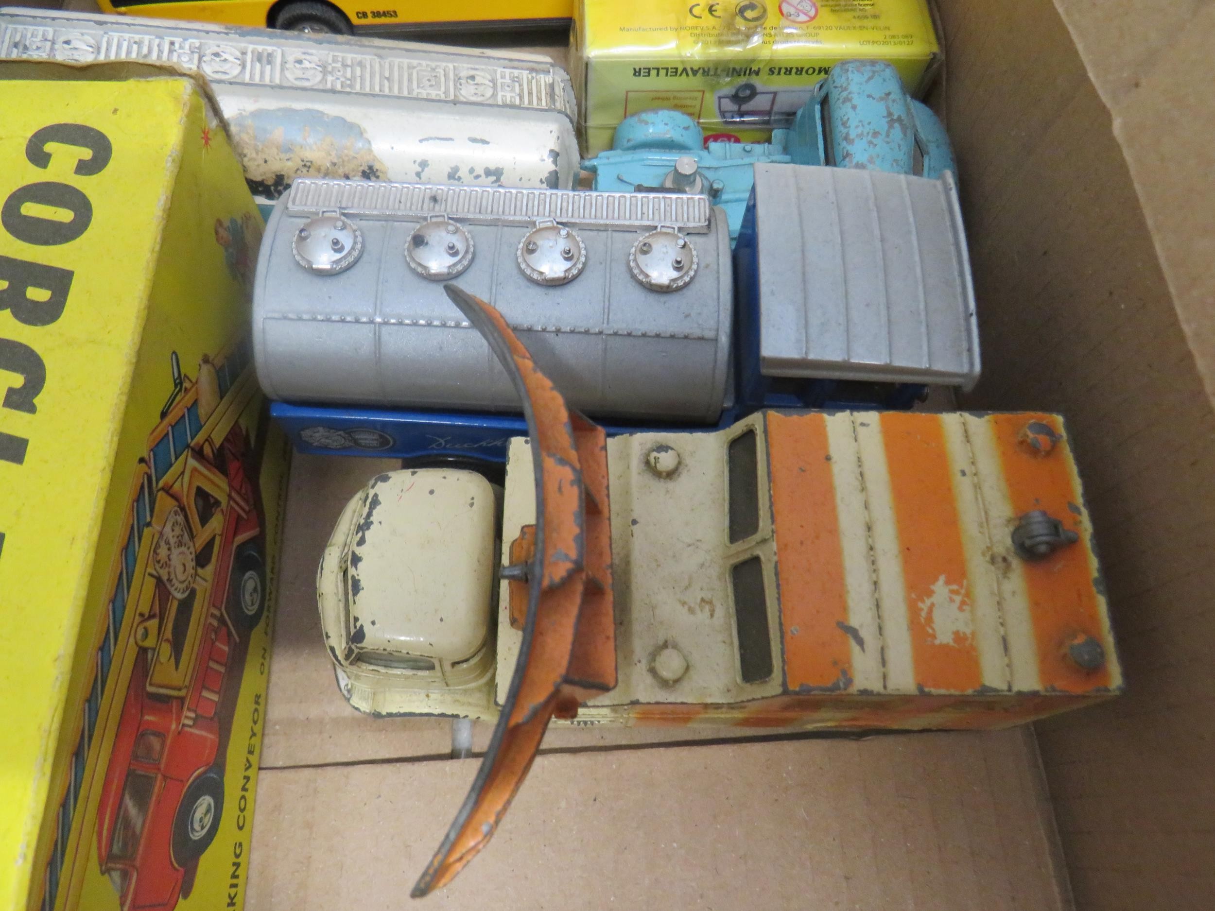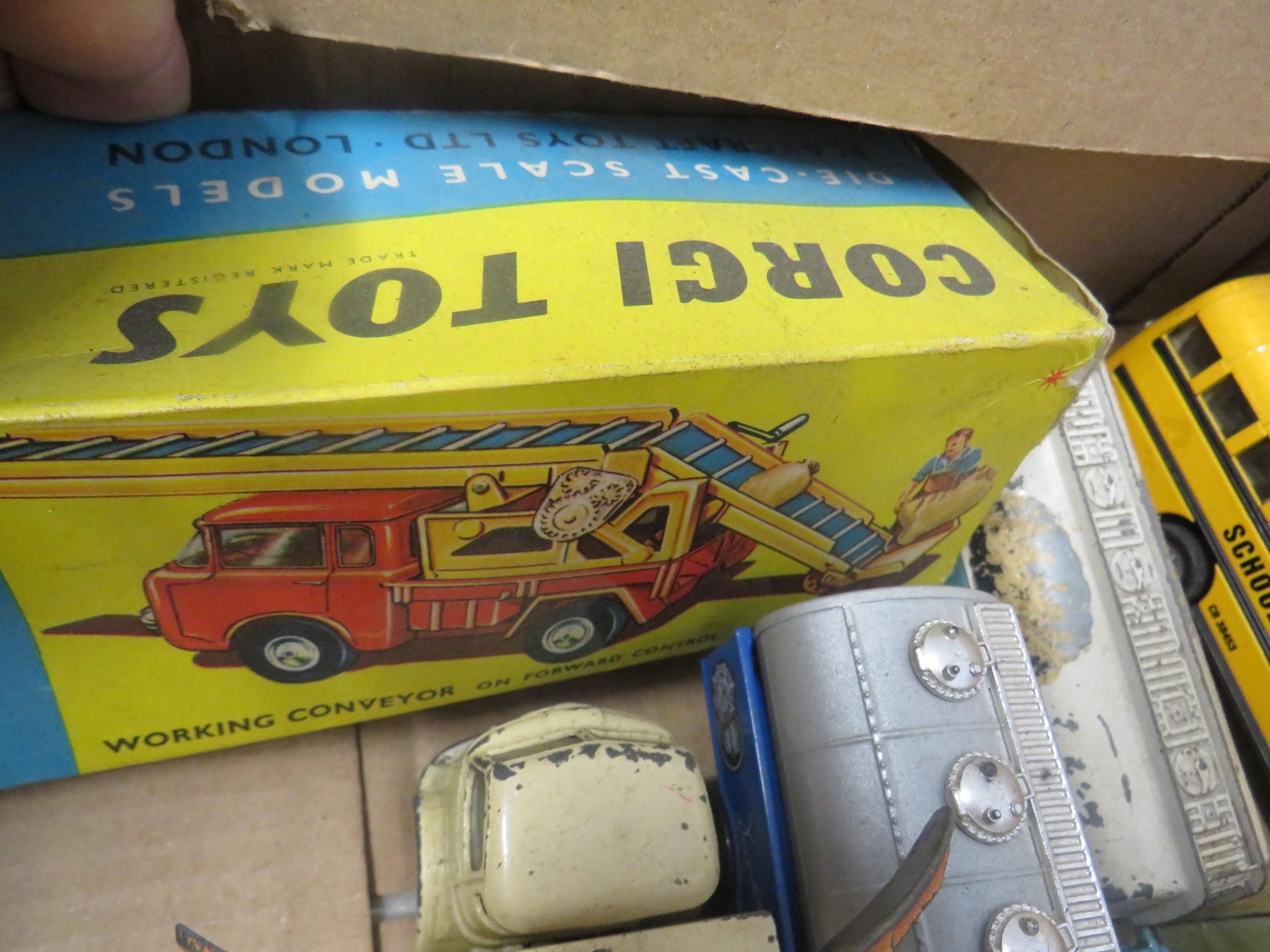 Six diecast cars including boxed Corgi.