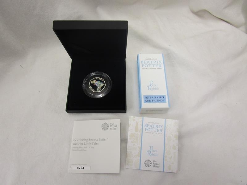 Royal Mint Peter Rabbit silver proof 50 pence coin - Beatrix Potter 2018 - Black box edition