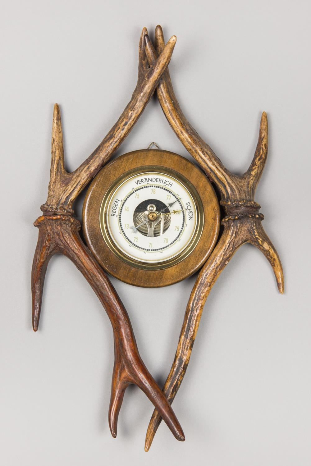 A 20TH CENTURY DEER ANTLER BAROMETER. (h 40cm x w 25cm)