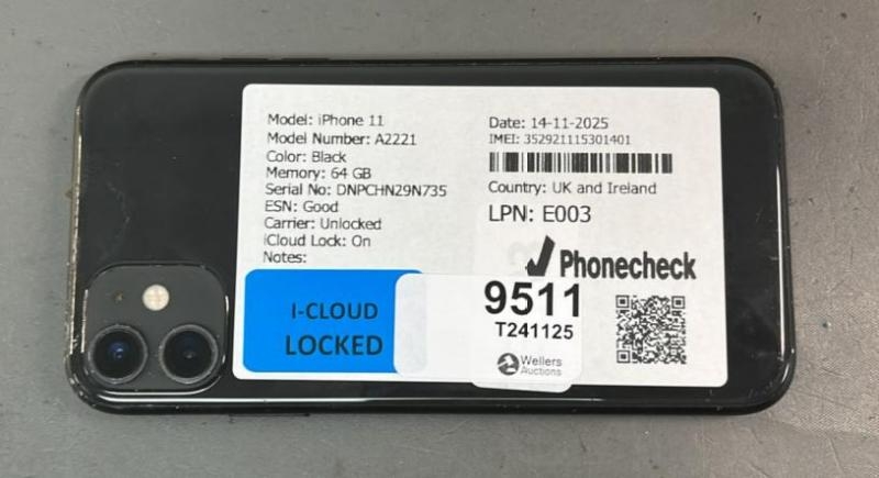 IPHONE 11/ A2221/ BLACK/64GB/ IMEI-352921115301401 (I-CLOUD LOCKED)