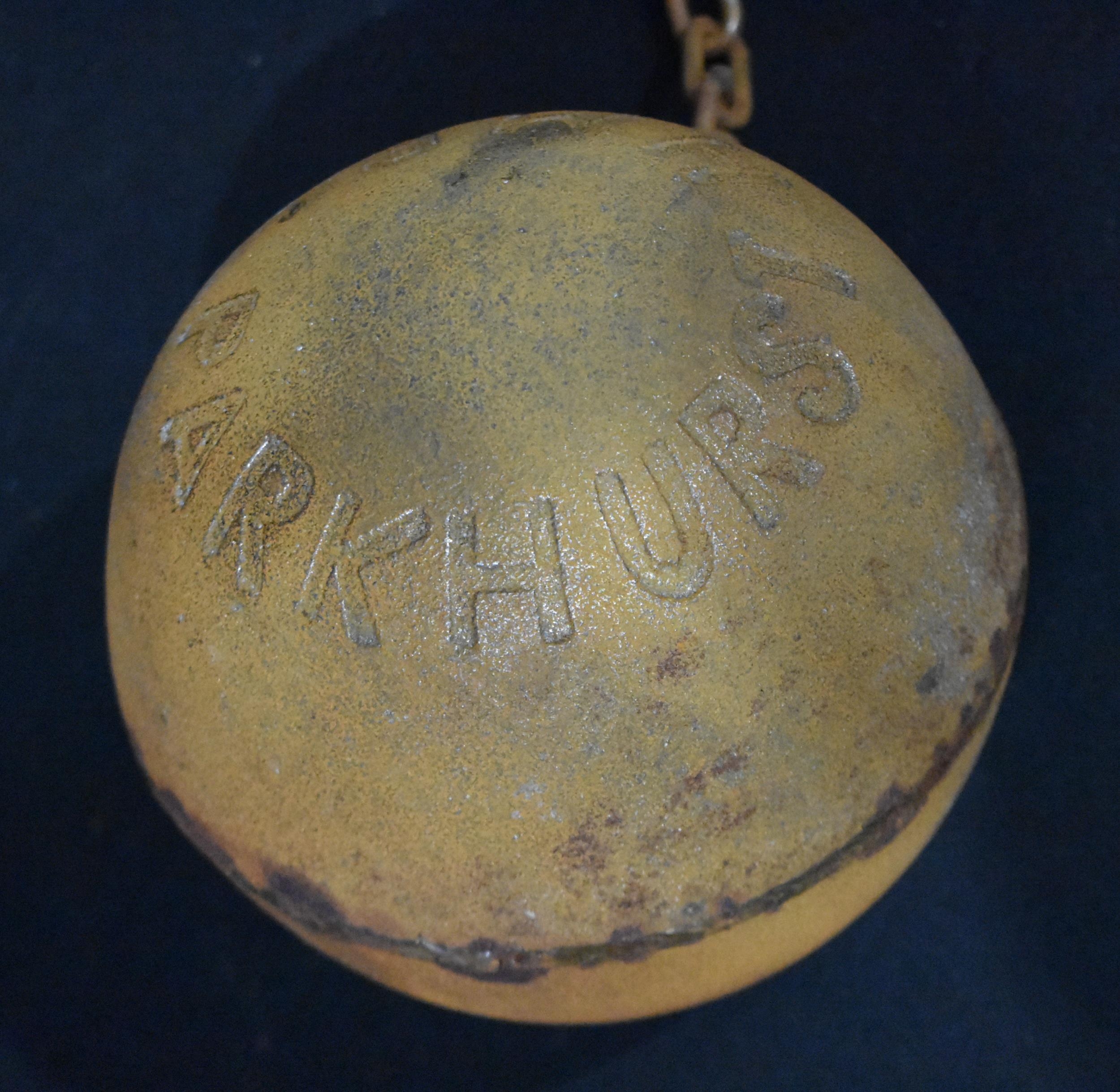 A contemporary prisoners ball on a chain 81 x 15cm