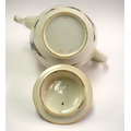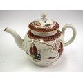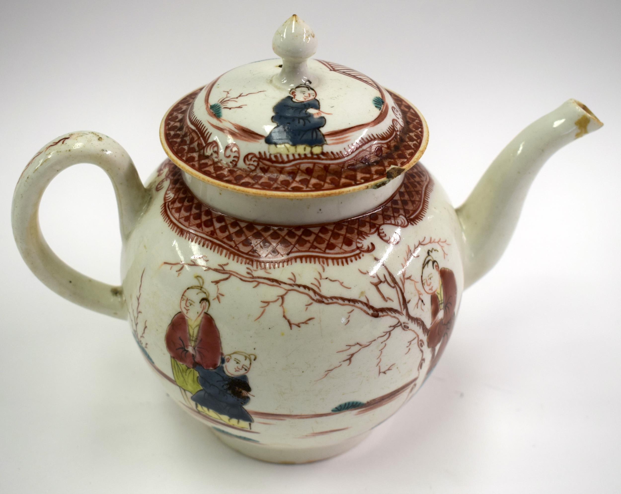 18th century Liverpool teapot and cover painted with oriental figures and a scale border. 17cm high