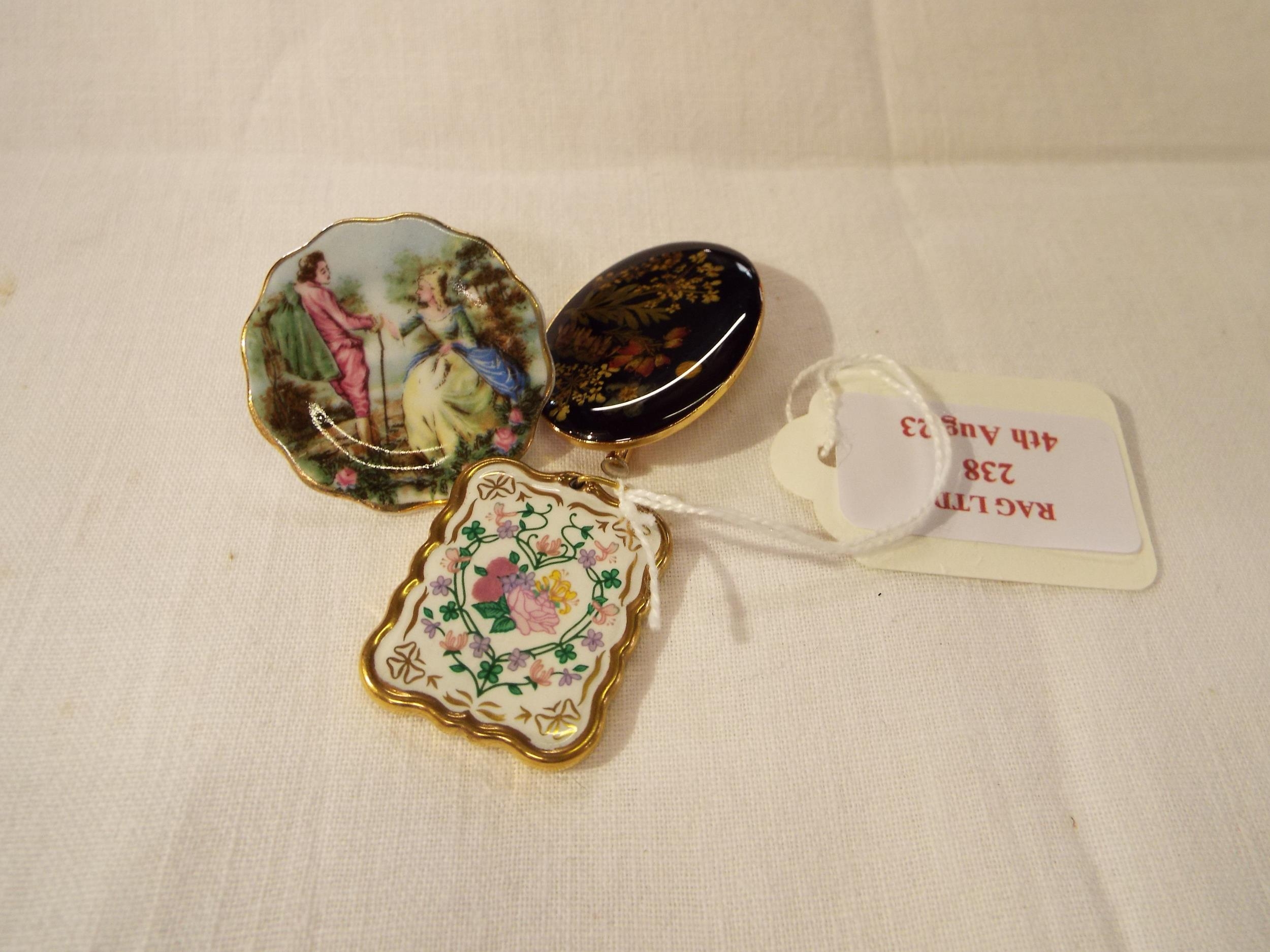 Two vintage costume jewellery brooches and a pendant