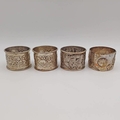 2 CHINESE SILVER NAPKIN RINGS DECORATED WITH FLOWERS, & LANDSCAPE SCENE BOTH BY HUNG CHONG SHANGHAI CIRCA 1902, 82G TOTAL & 2 OTHER NAPKIN RINGS