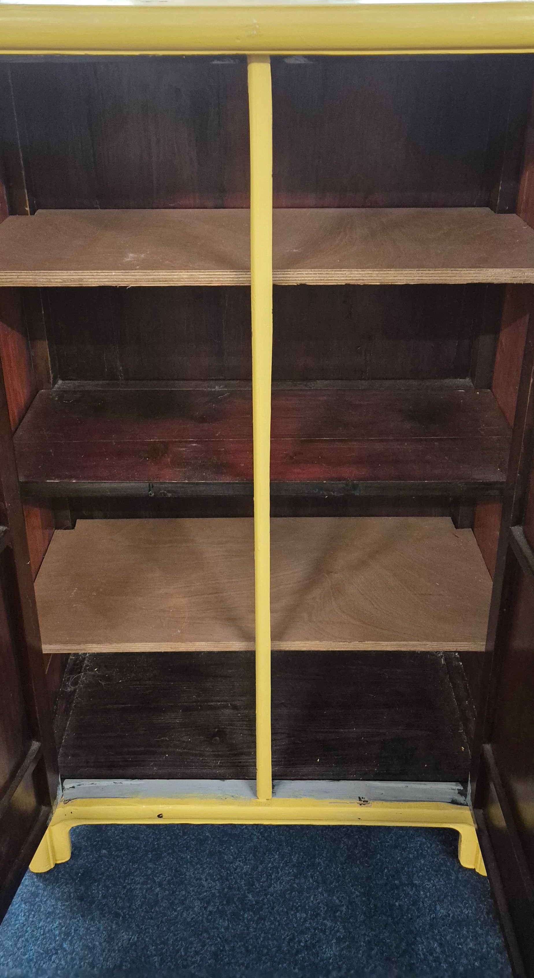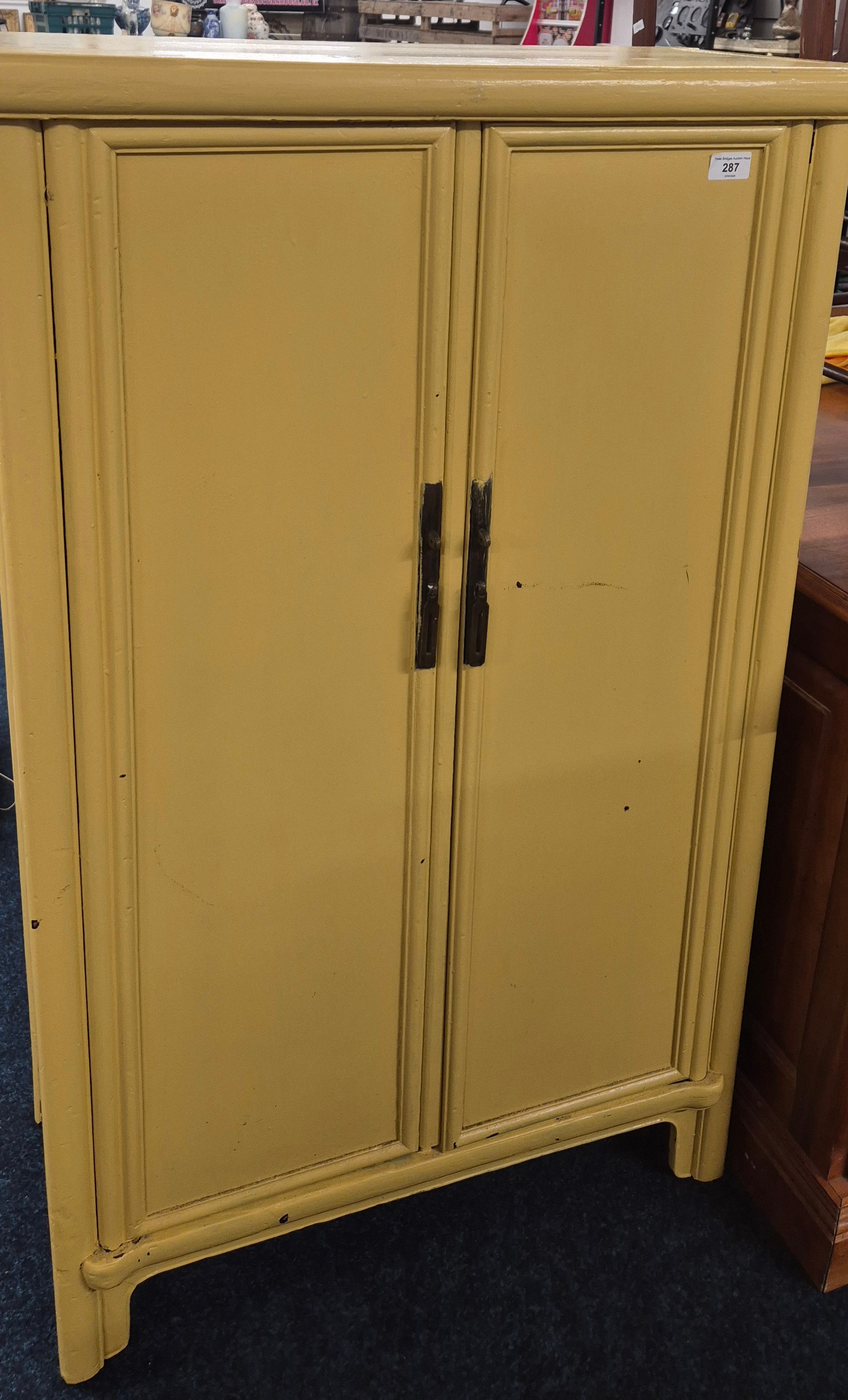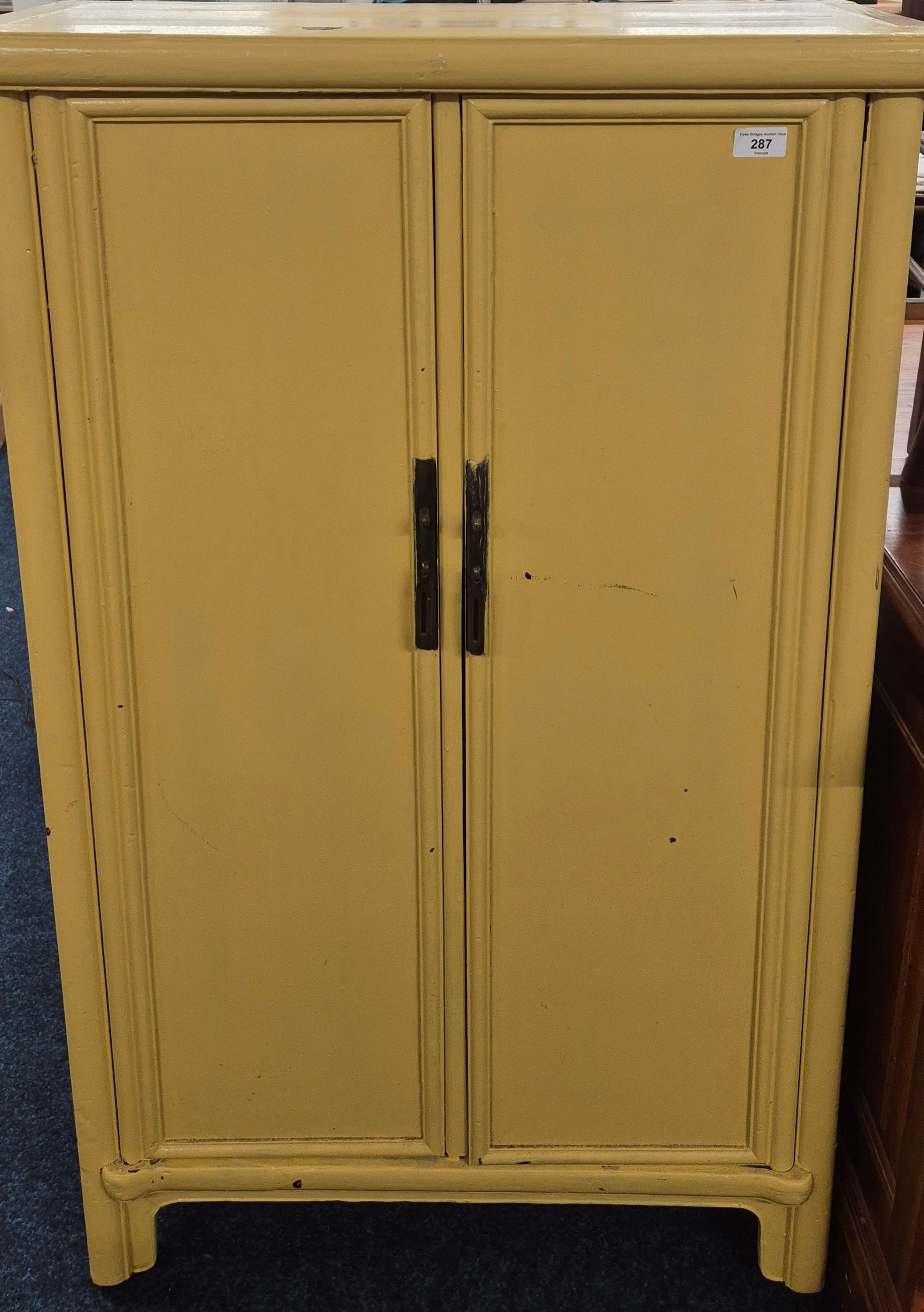 19th Century Chinese Two door cabinet painted in a Mustard colour. 123.5x71x34cm