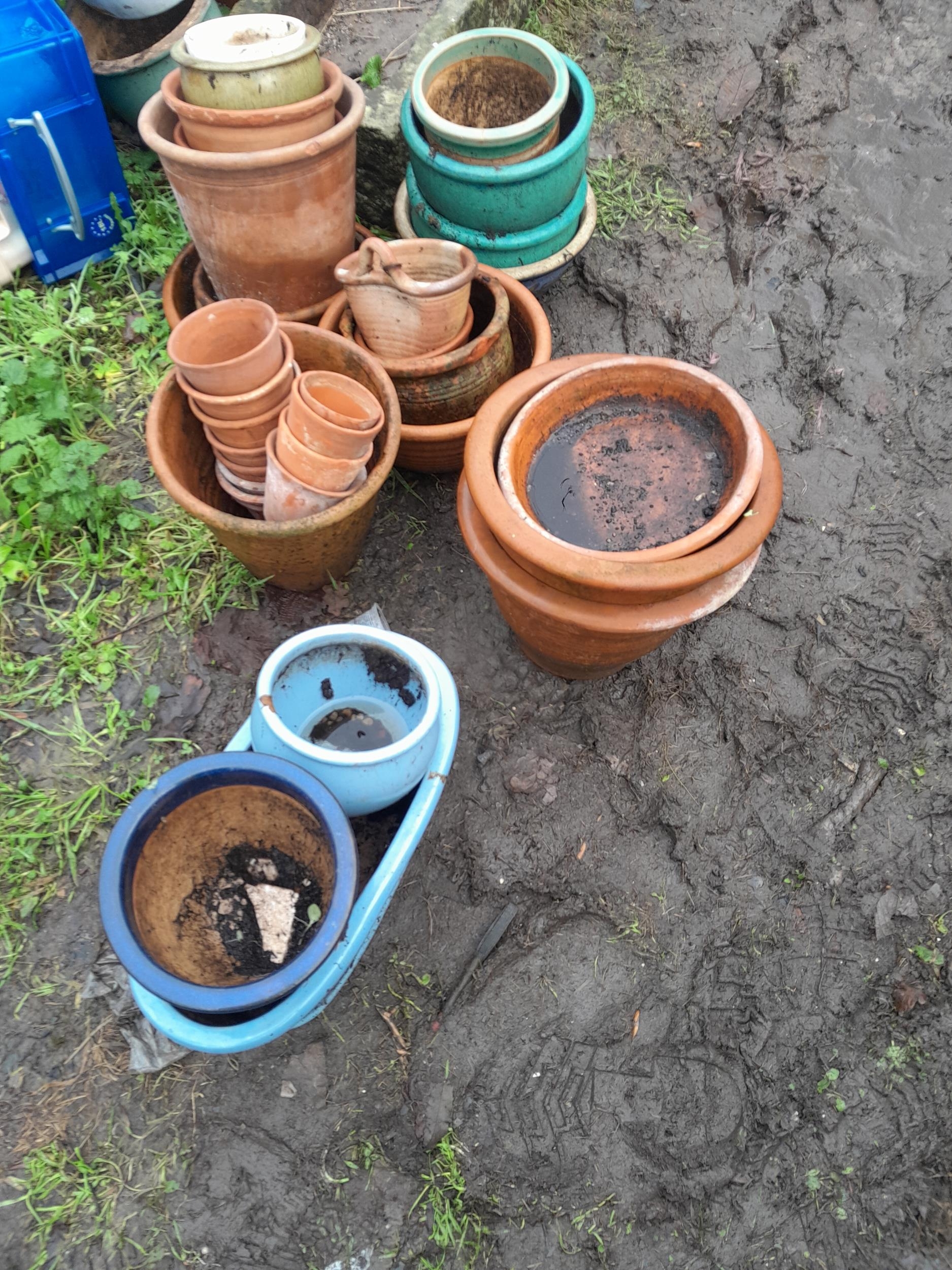 Assorted garden terracotta pots