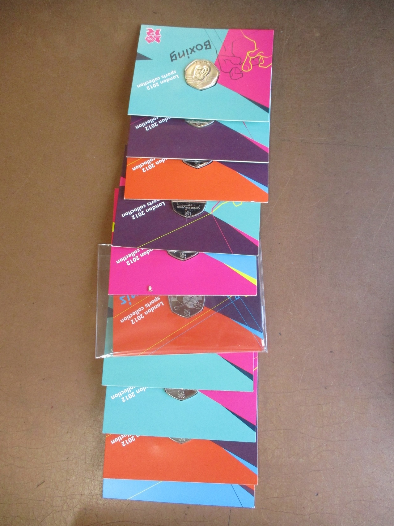 Modern ranges with 2012 Olympics CuNi 50p's uncirculated on Royal Mint cards (25), plus Royal Mint Spanish language cards (7), etc. (T)