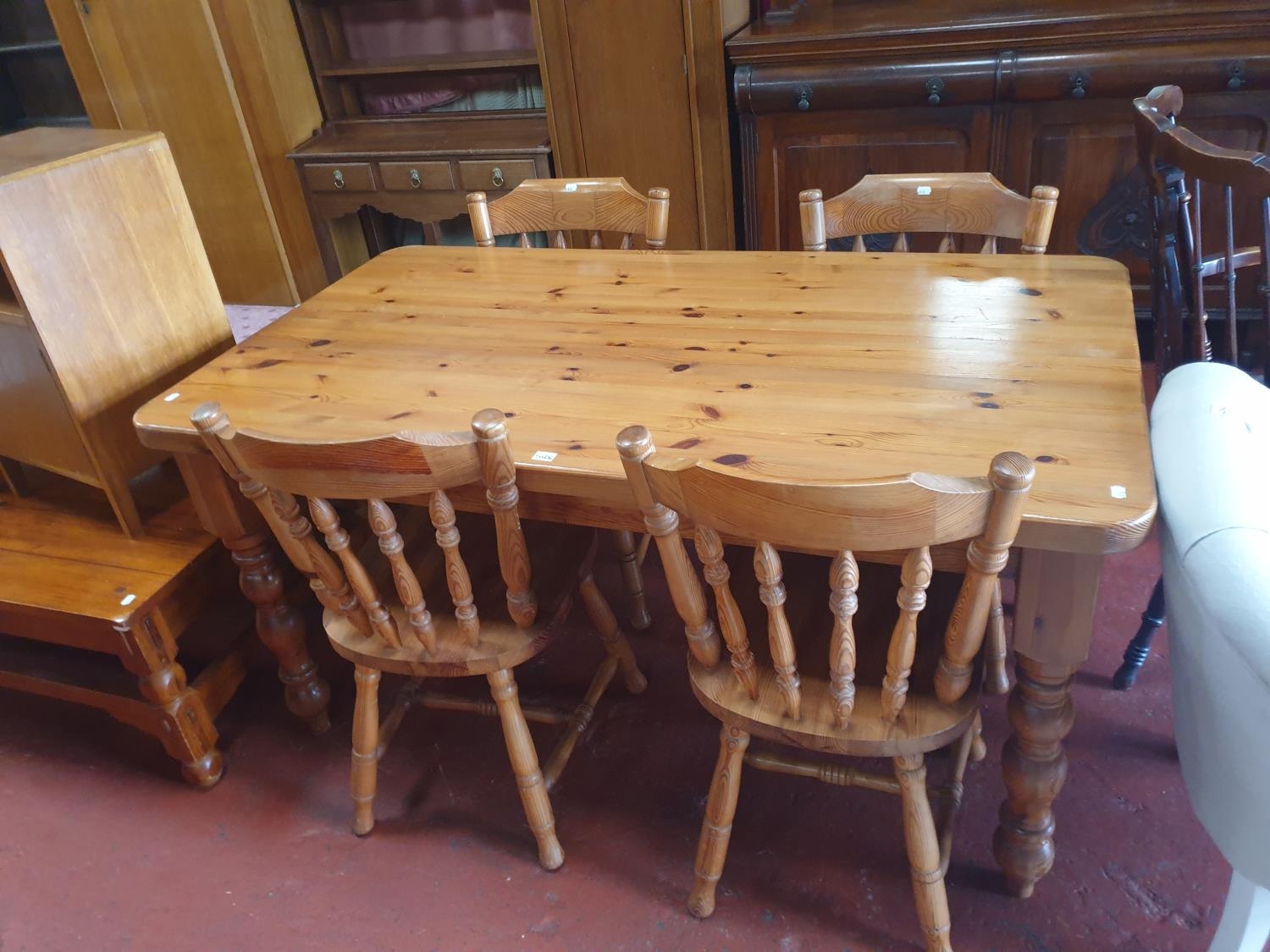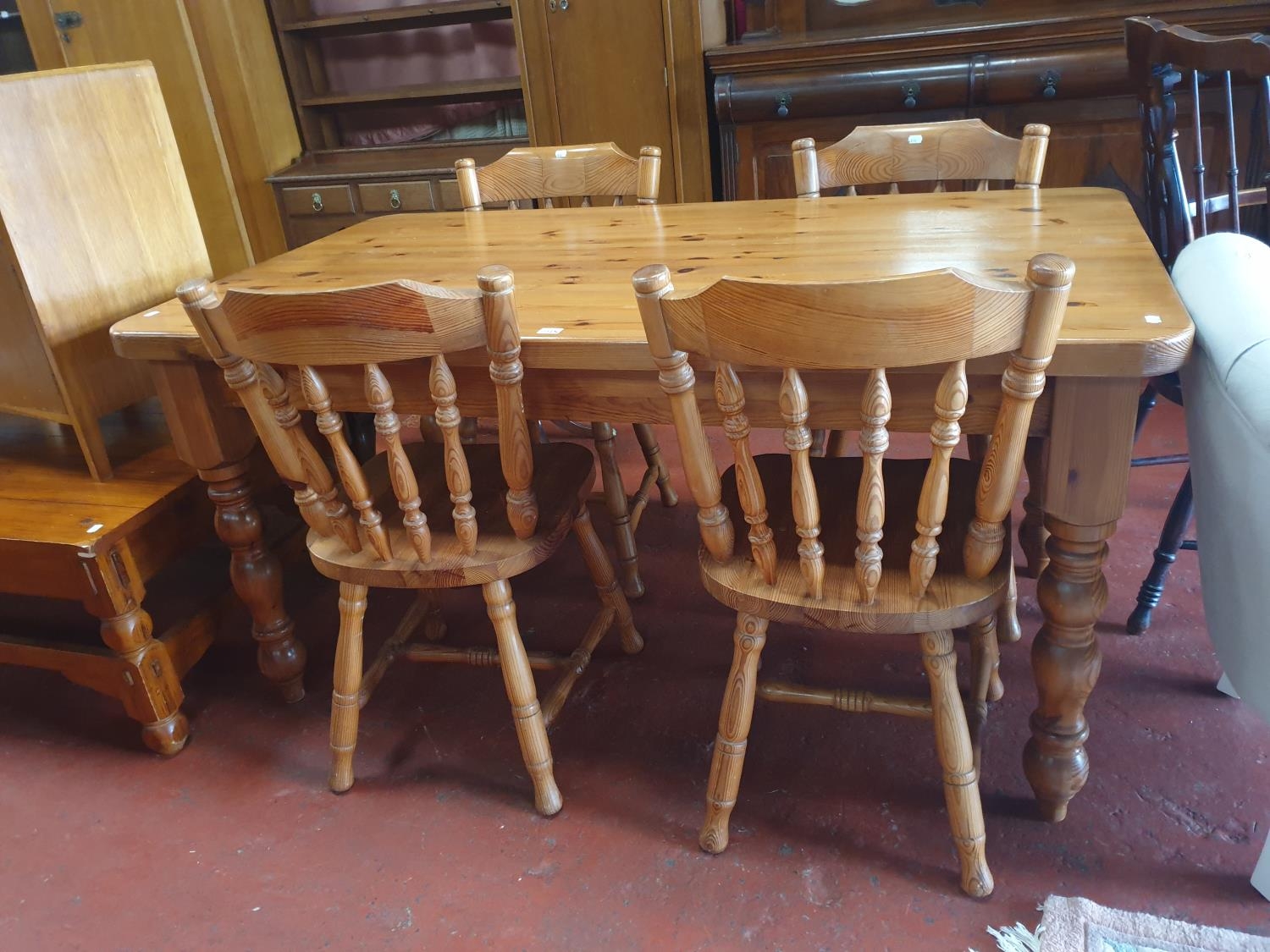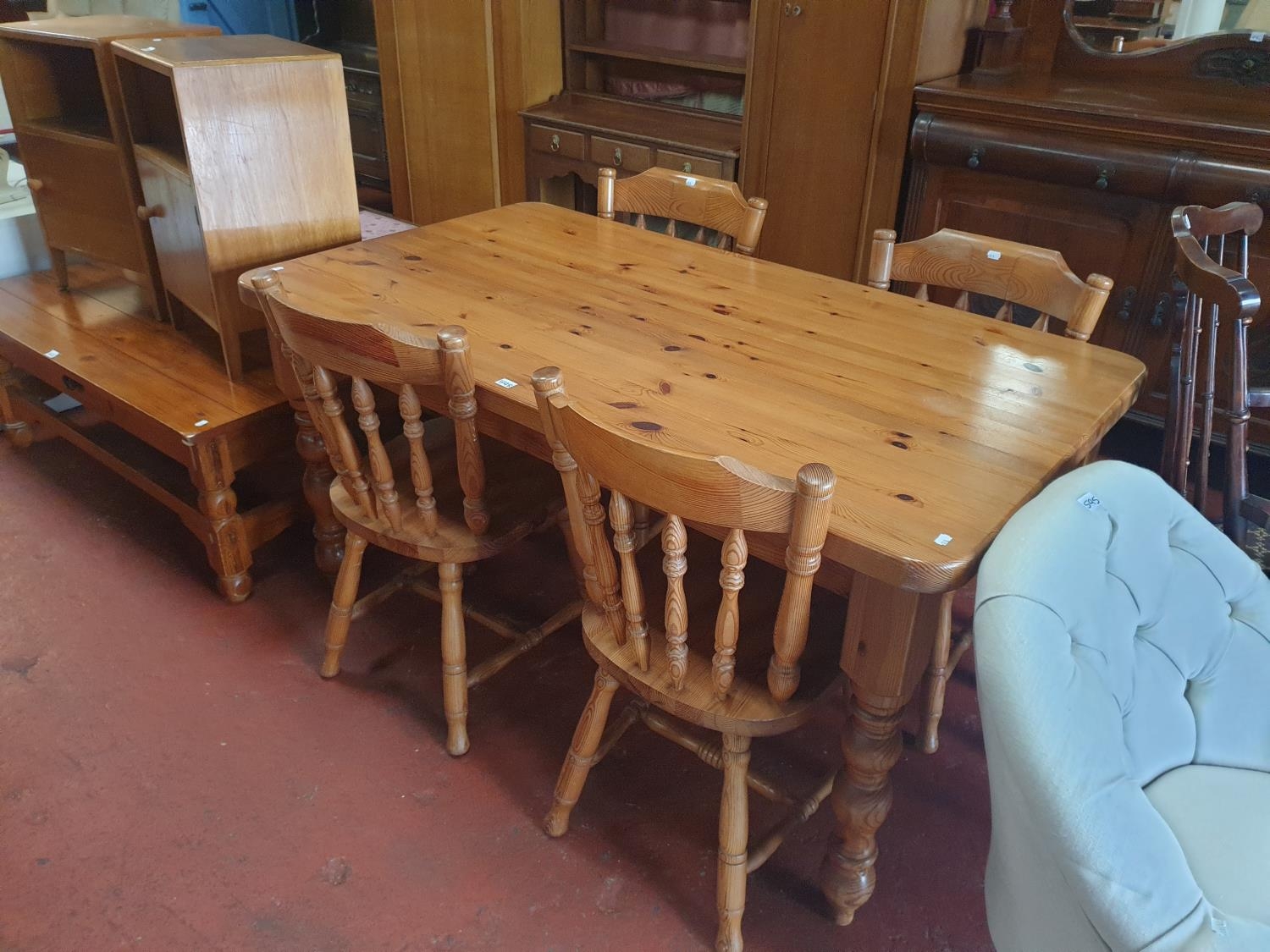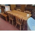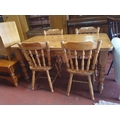 Solid Pine Farmhouse Kitchen Table with Four Matching Chairs - approx 76cm tall x 85cm wide x 152cm long.