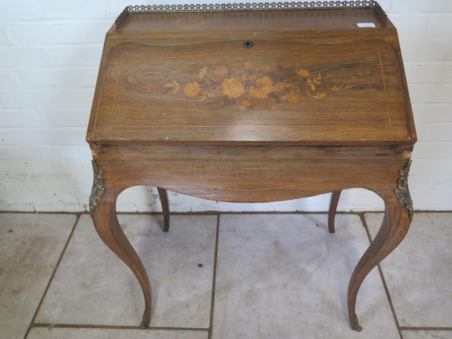 A 19th Century Walnut and Marquetry Ladies writing bureau on cabriole legs 67cm wide x 93cm high