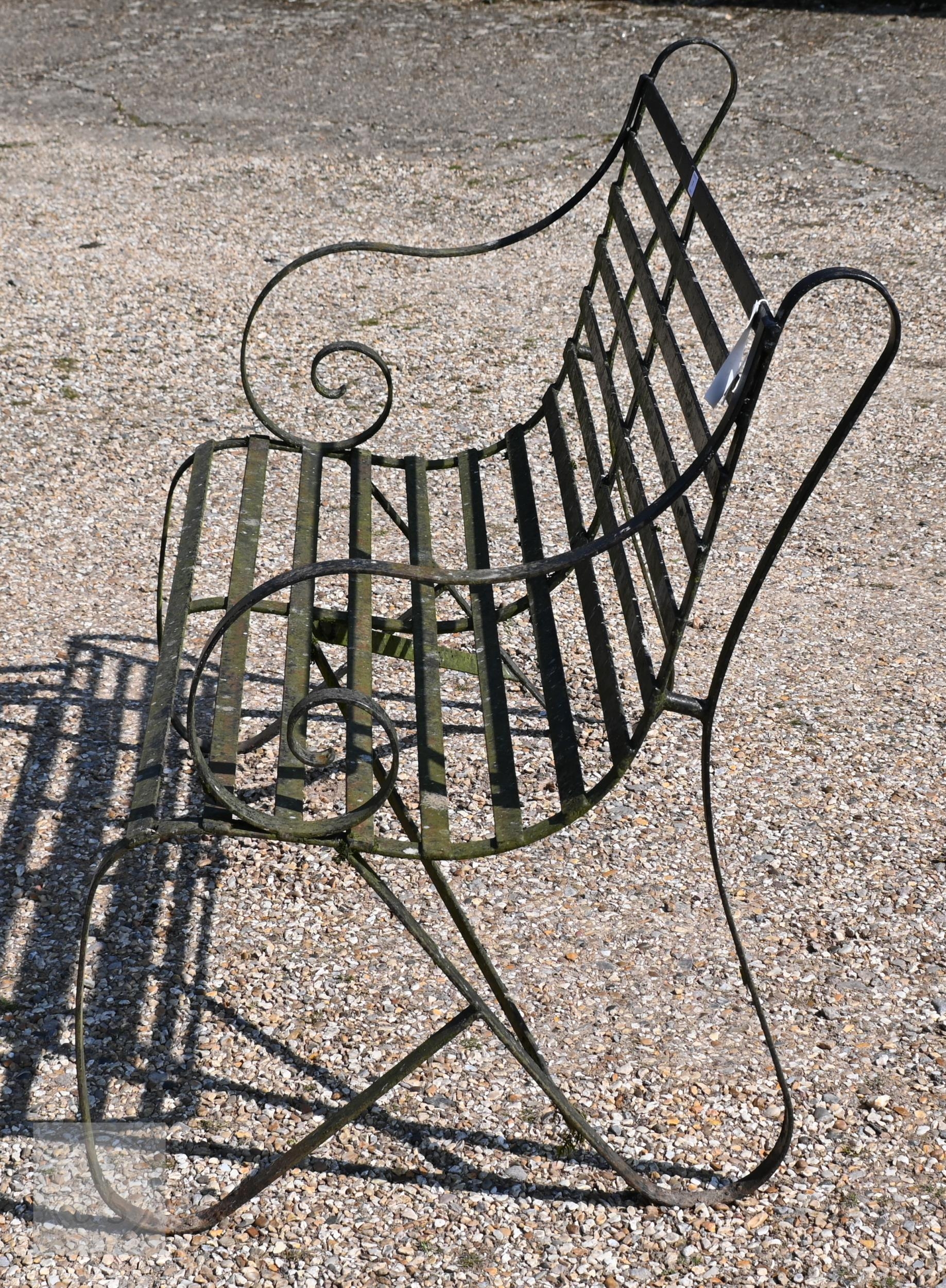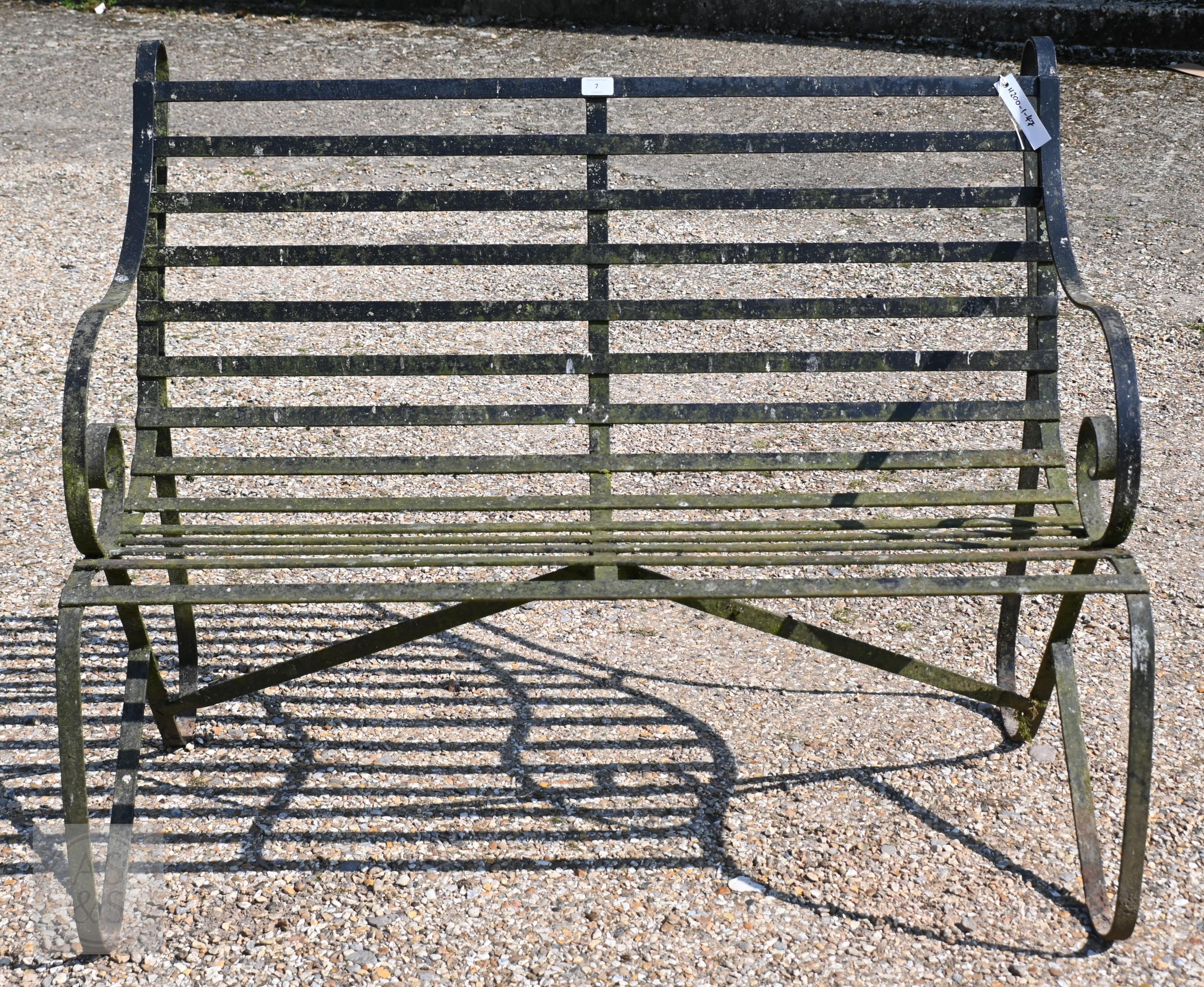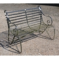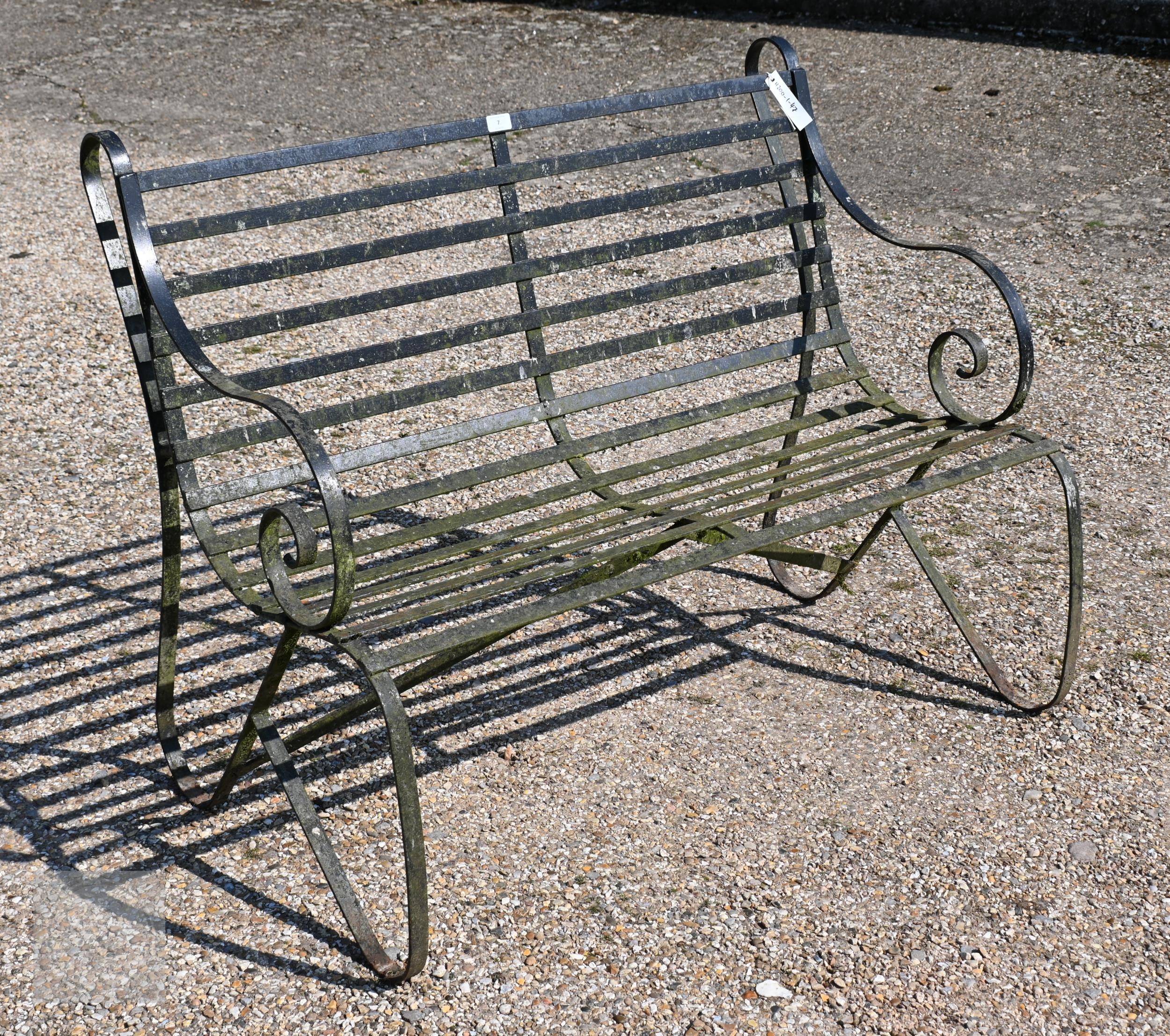A traditional Victorian style wrought iron two seat bench, 112 cm long