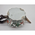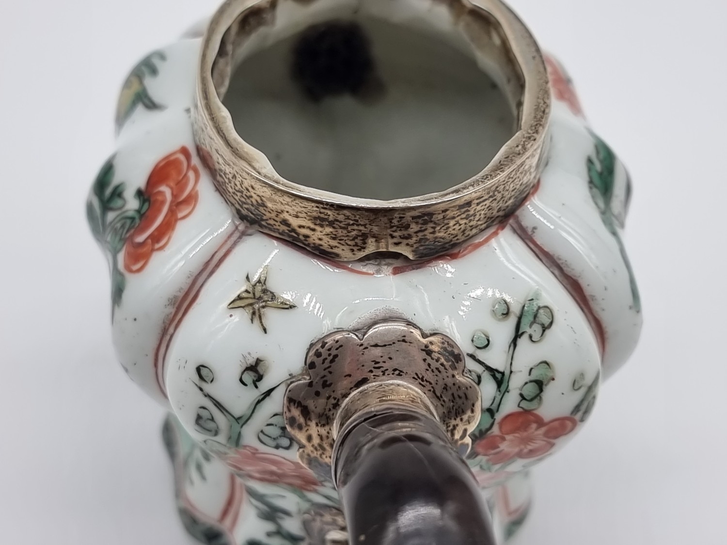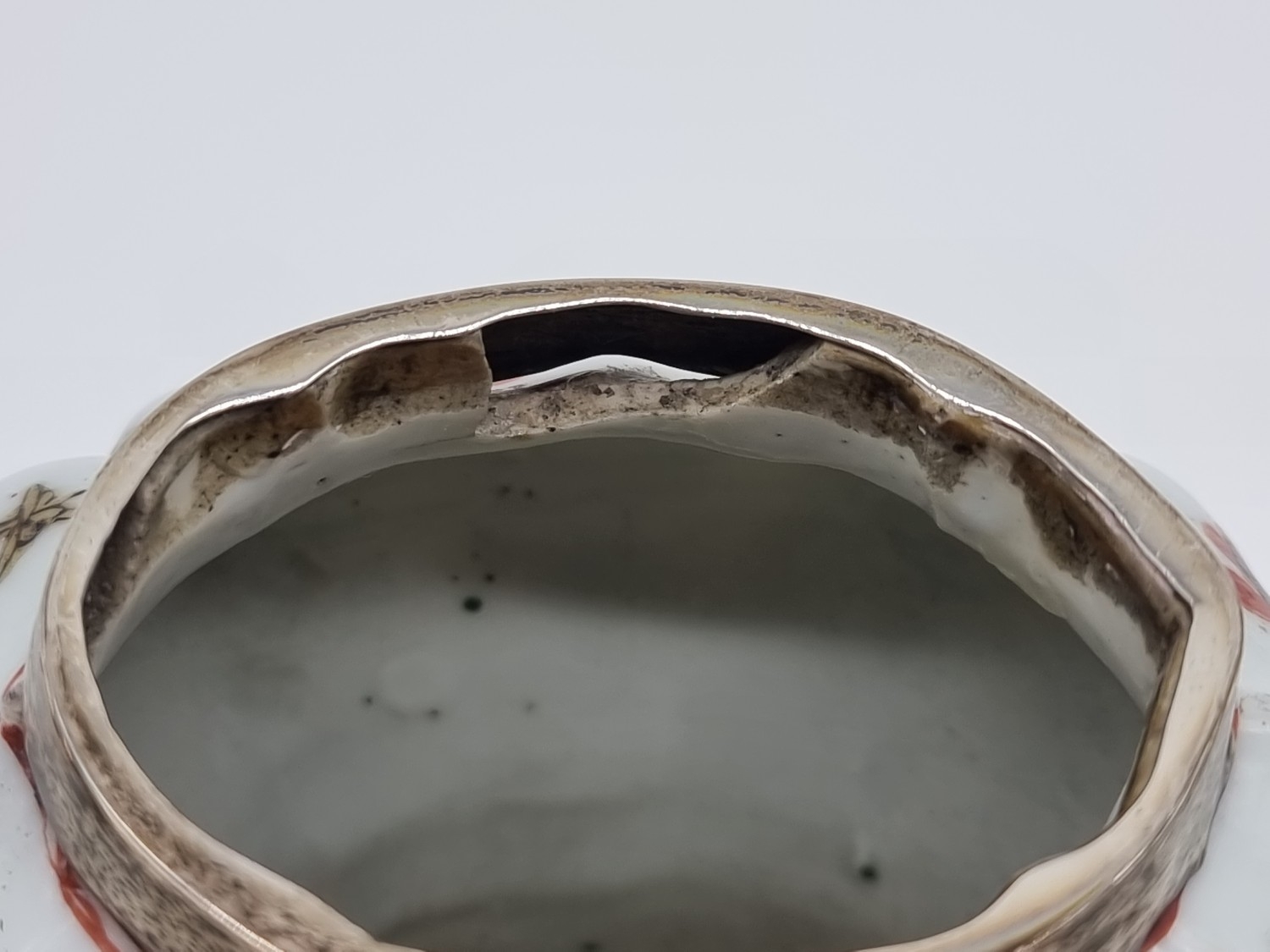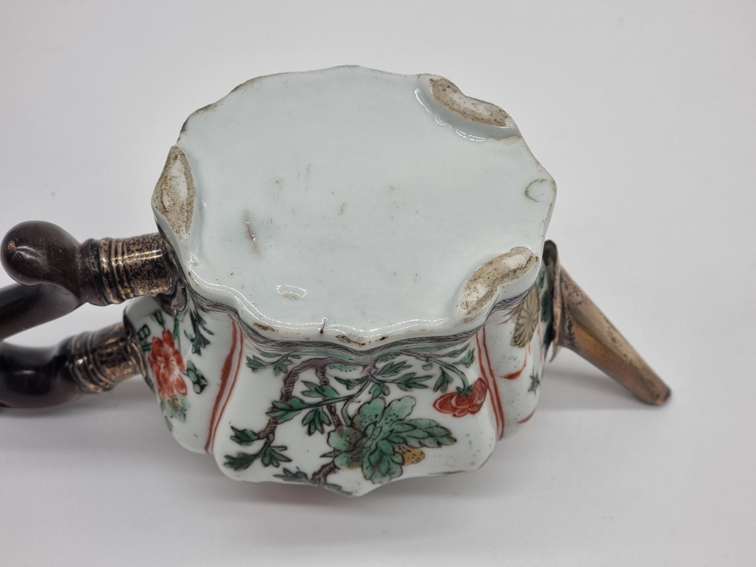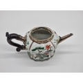 A Chinese famille vert and white metal mounted teapot and cover, probably Kangxi, 10.5cm high, (alterations).
