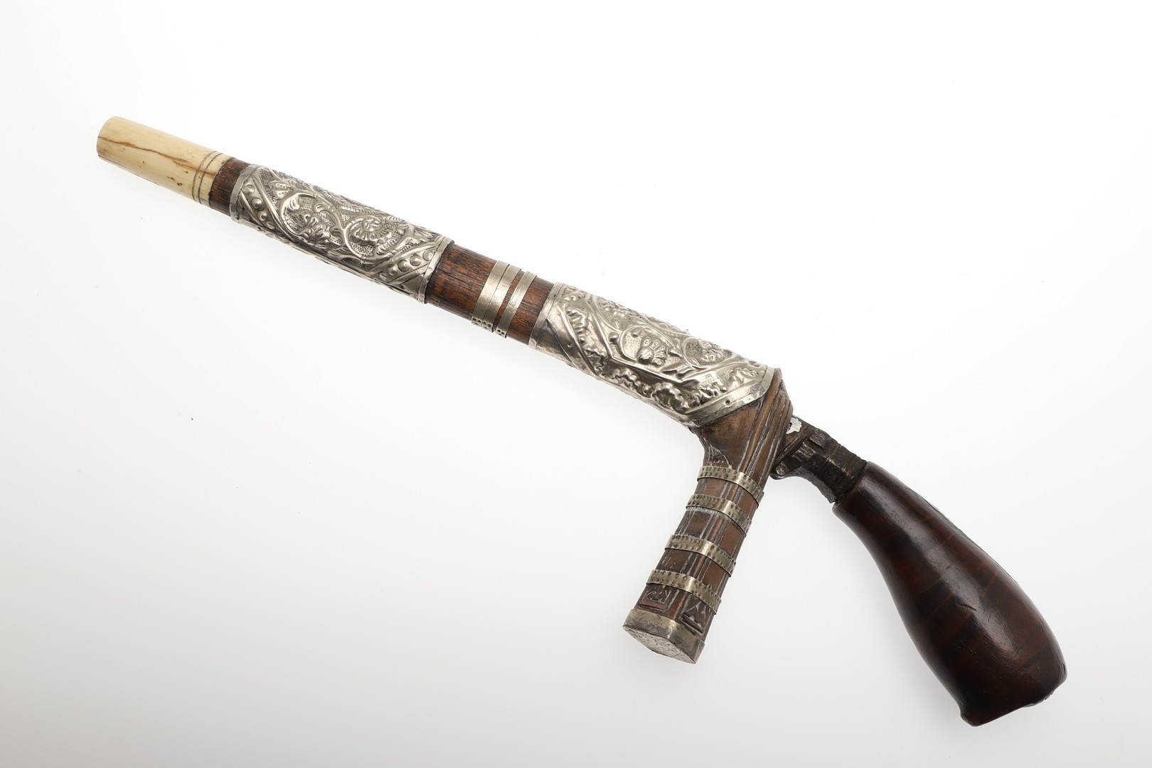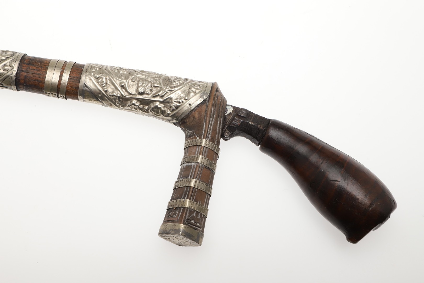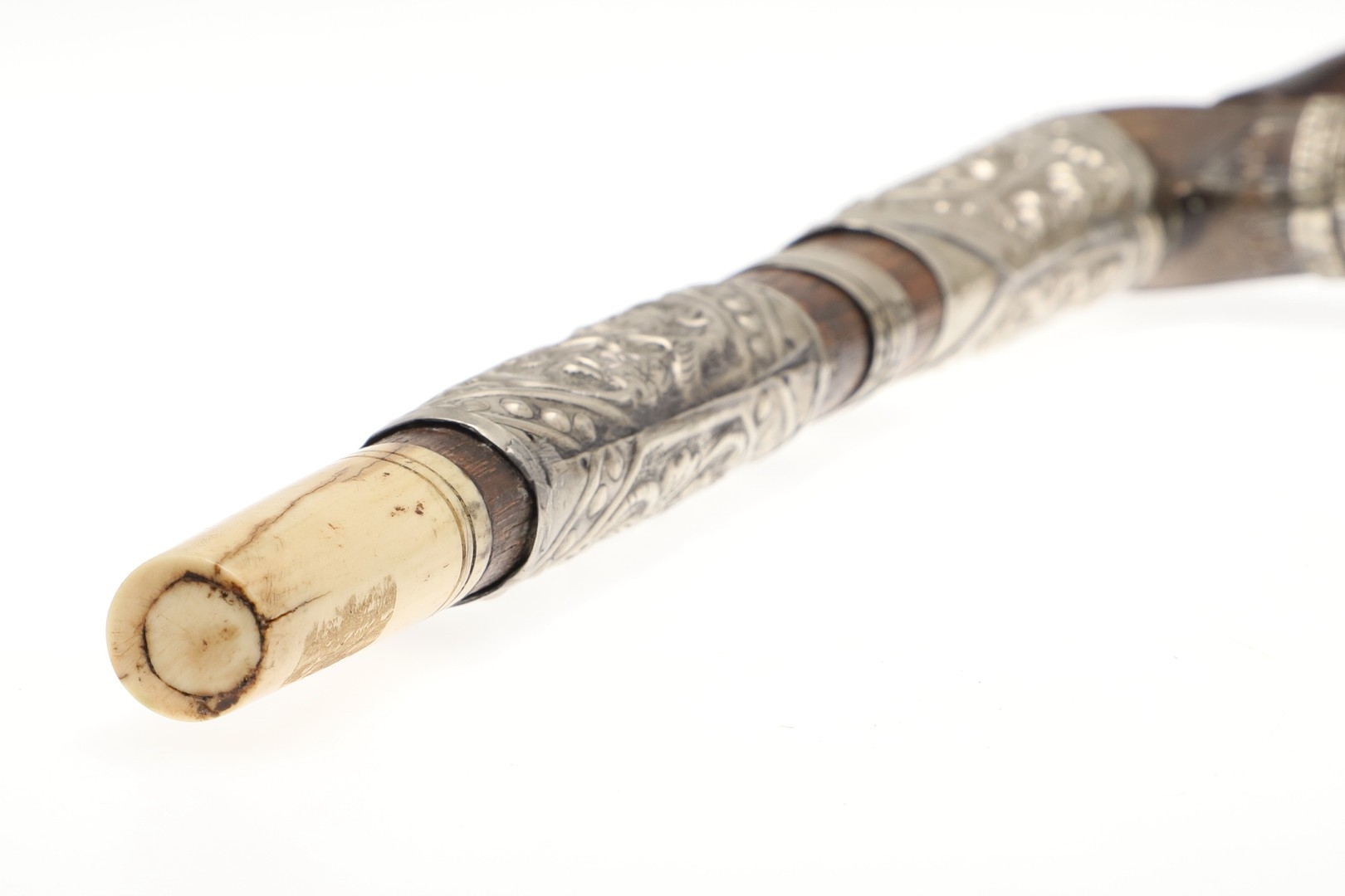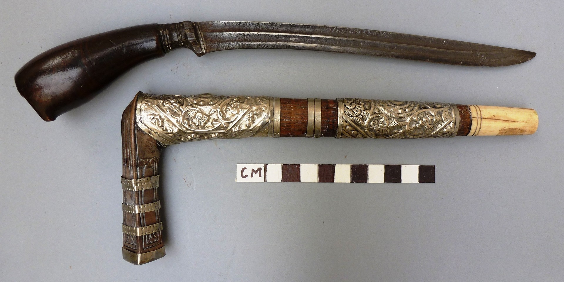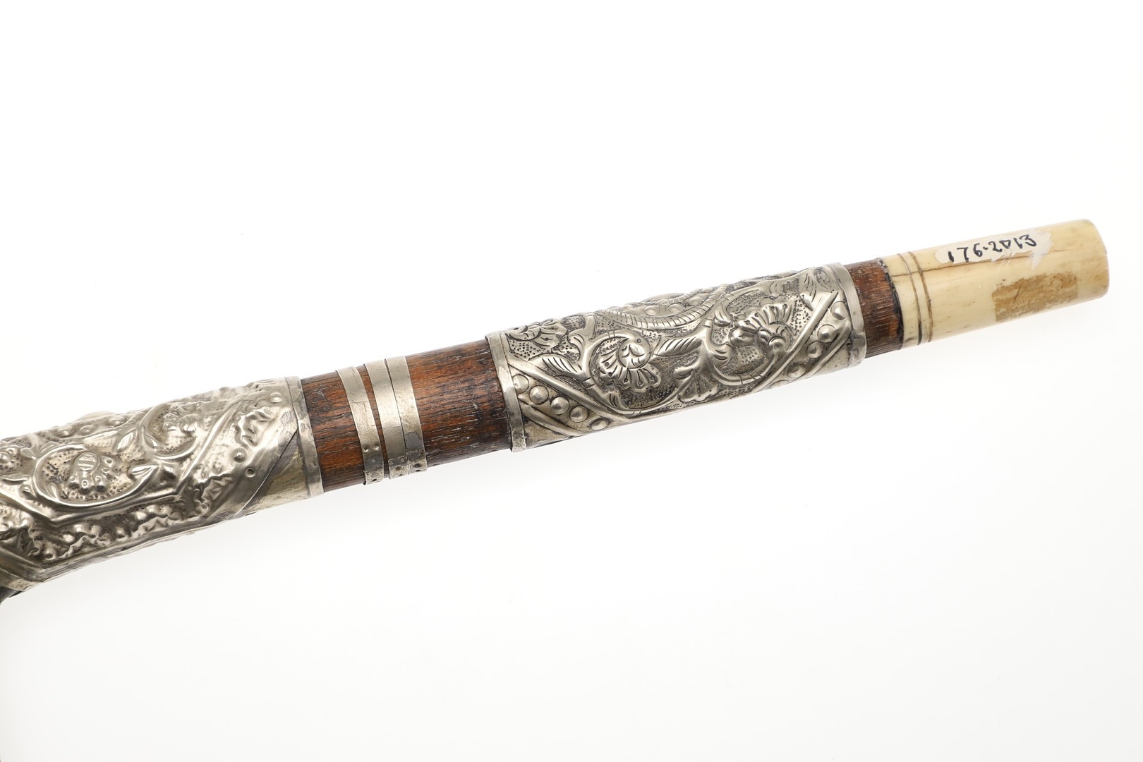 Some mounts loose, crack to the back of the grip, carack to bone mount. Collection number to both parts.