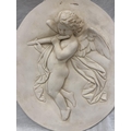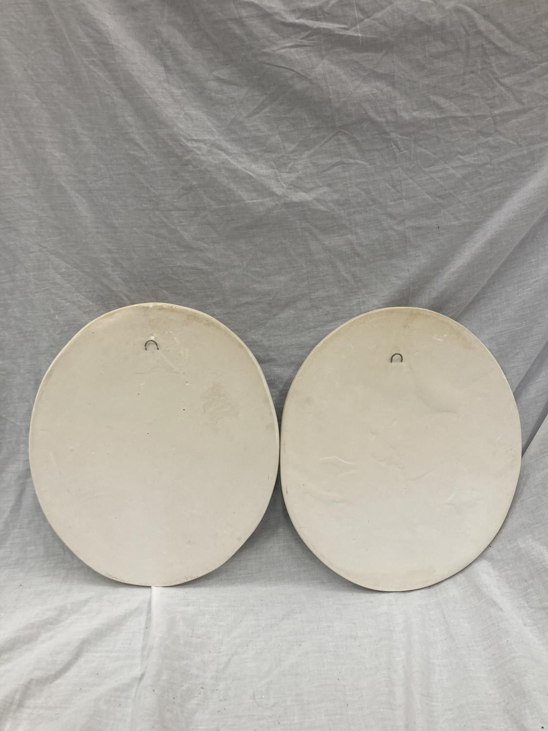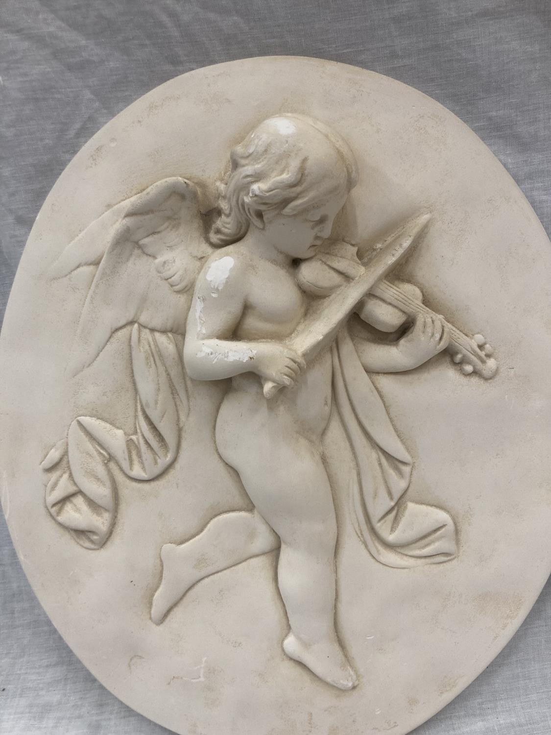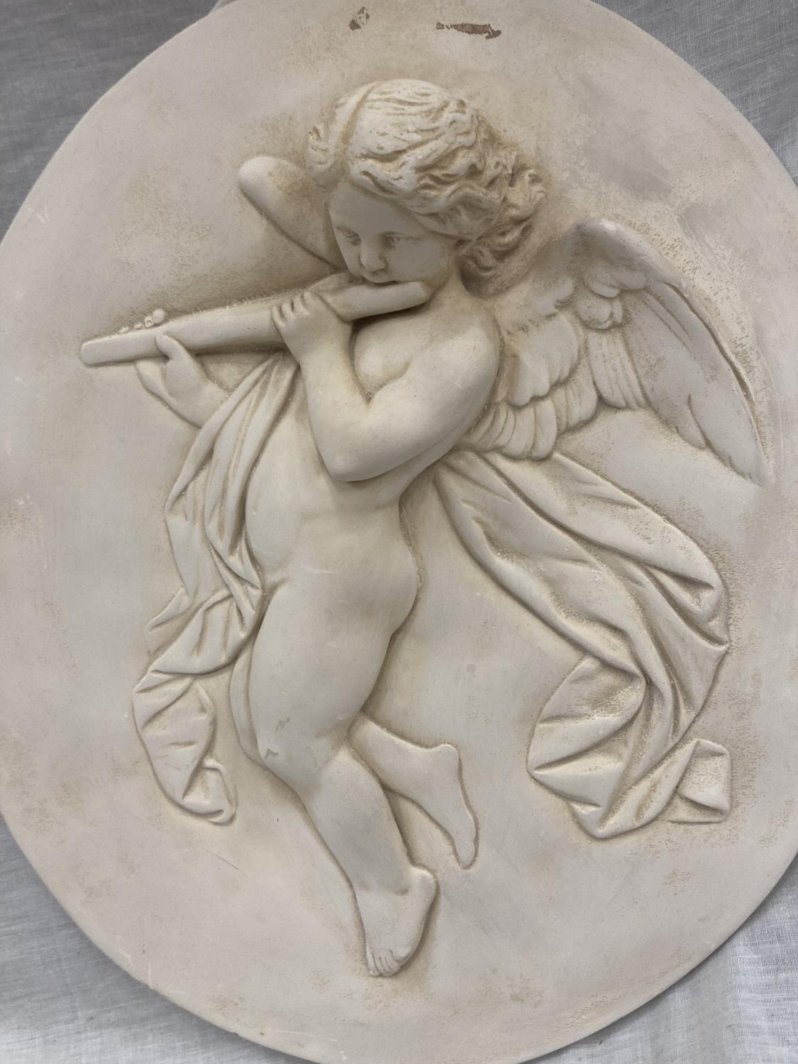 A PAIR OF CHERUB WALL PLAQUES 33CM X 38CM