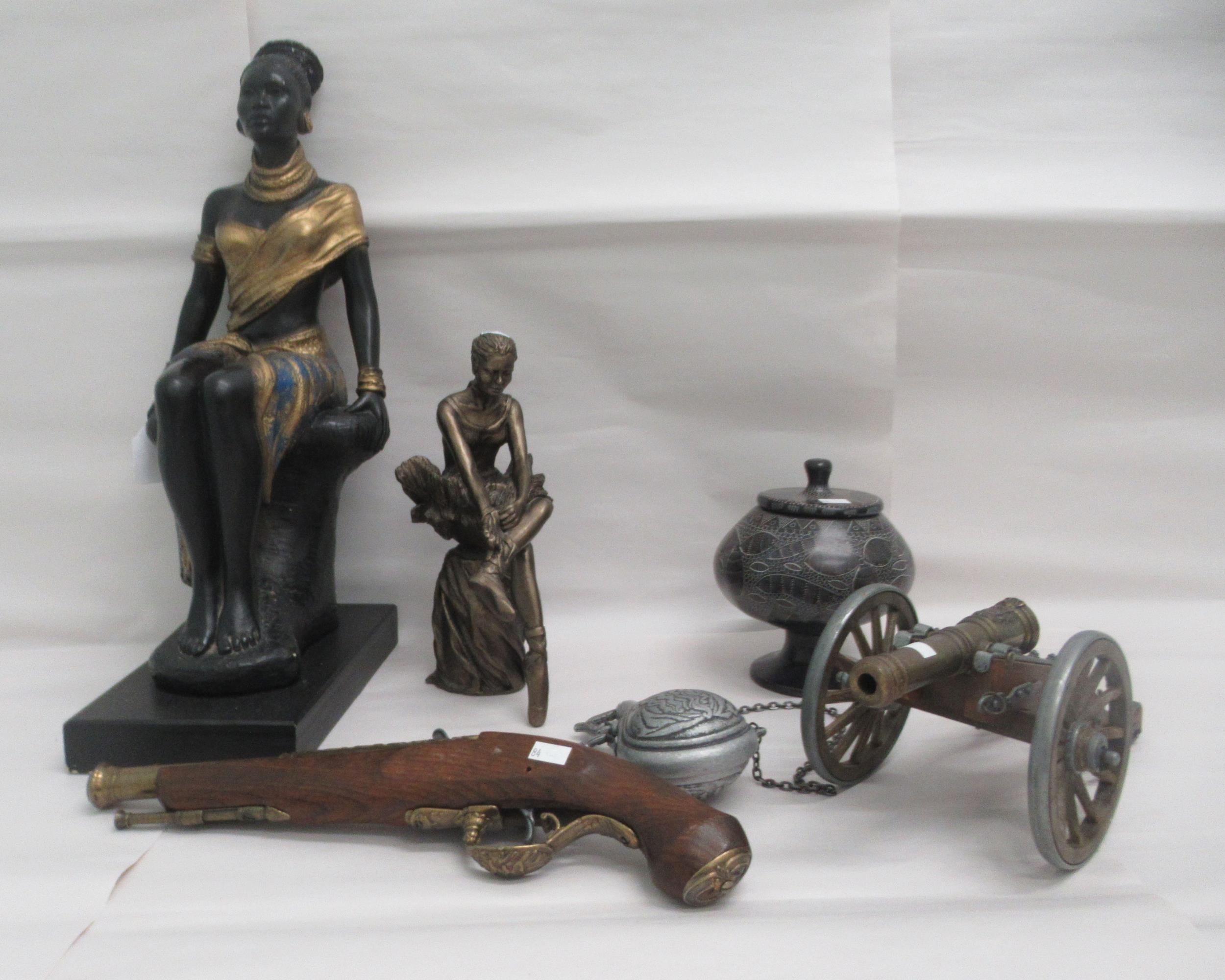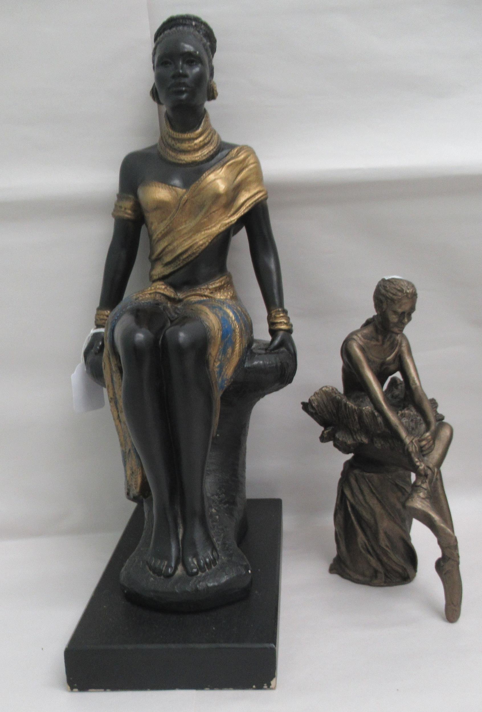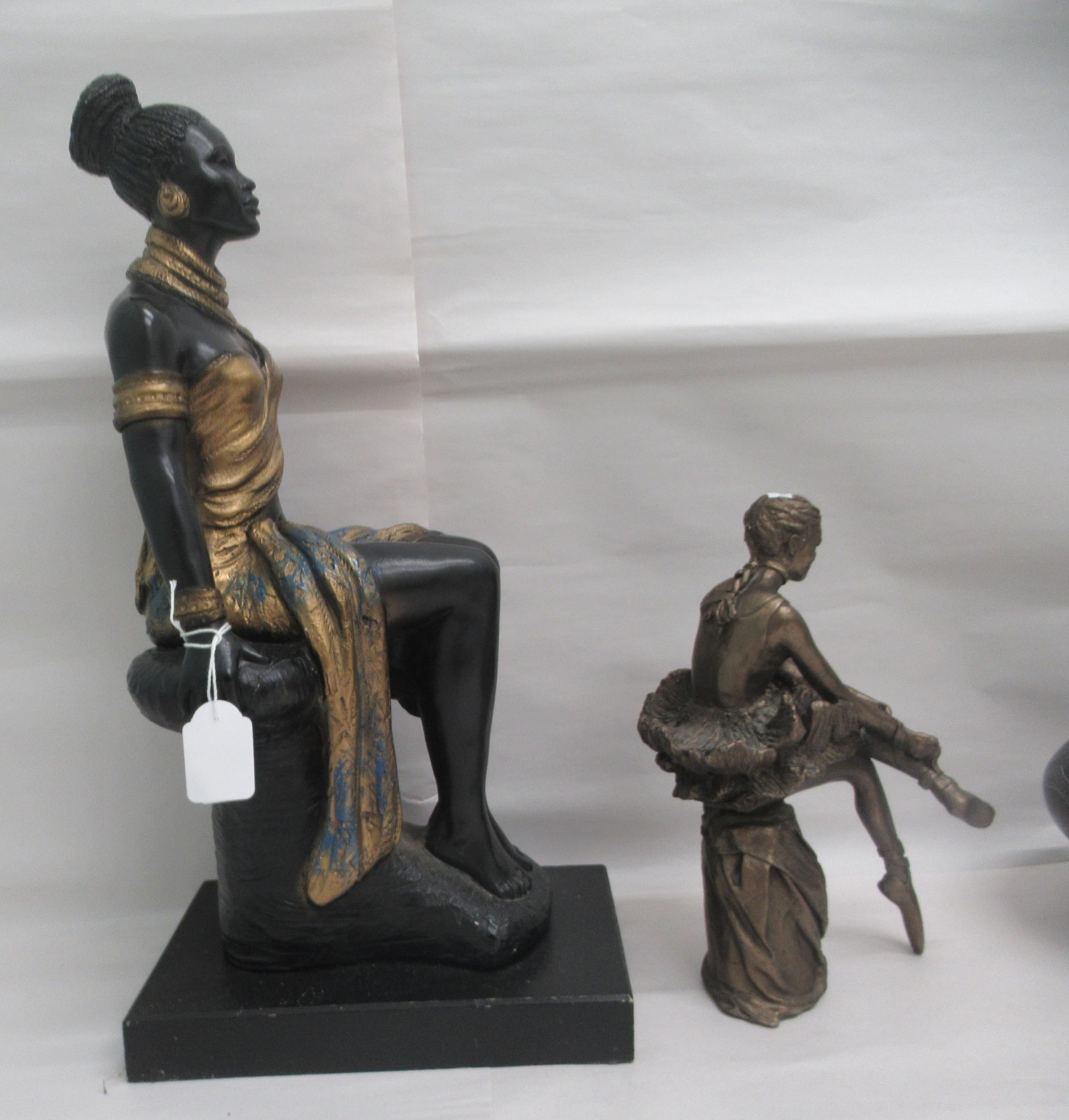 Interior designer accessories: to include a painted plaster figure, a seated African woman, on a plinth 19"h