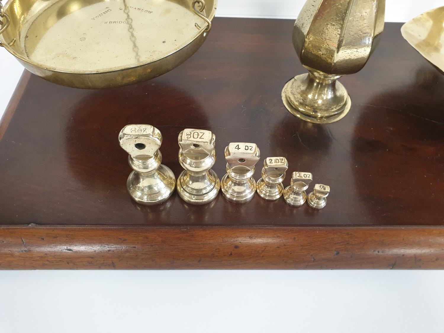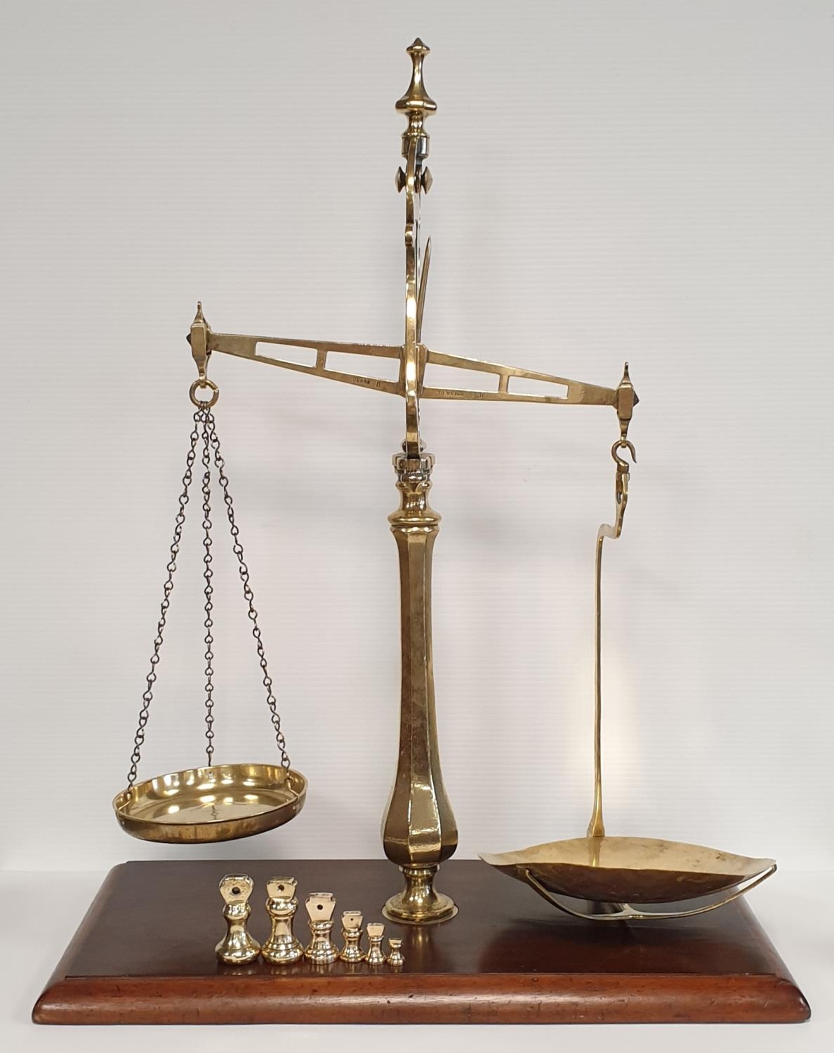 Large Brass Scales with Weights by Young & Marlow, H:77 x W:61 x D:32cm