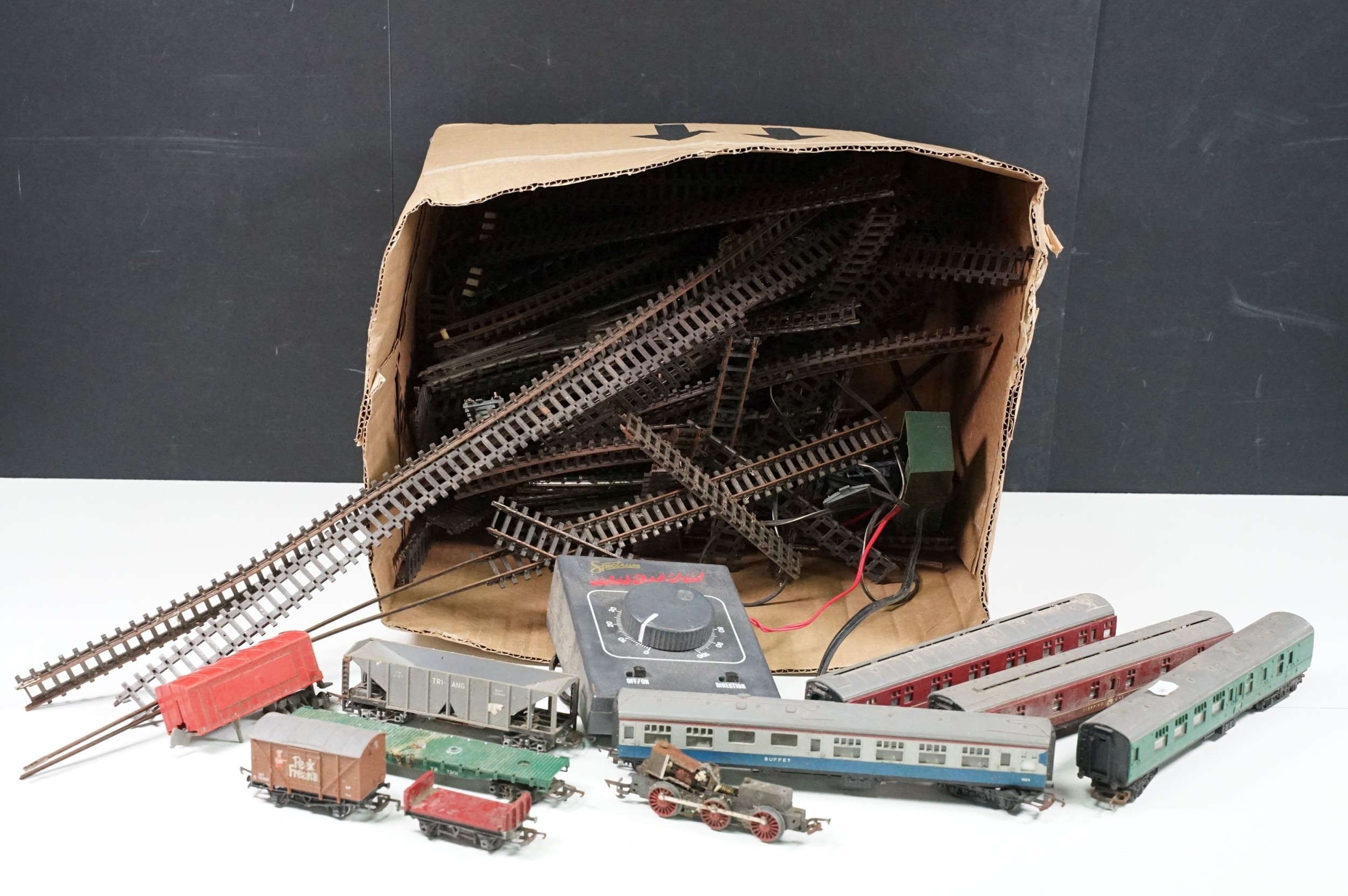 Quantity of OO gauge model railway to include 8 items of rolling stock and various track, condition varies