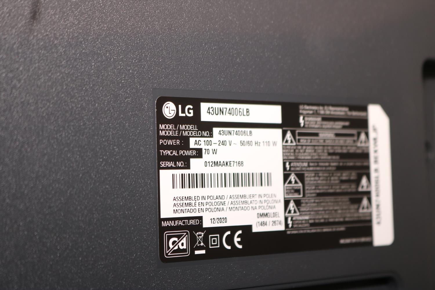 LG 43'' TV WITH REMOTE (IN OFFICE) - WARRANTED UNTIL 12 NOON TUESDAY FOLLOWING THE ABOVE SALE