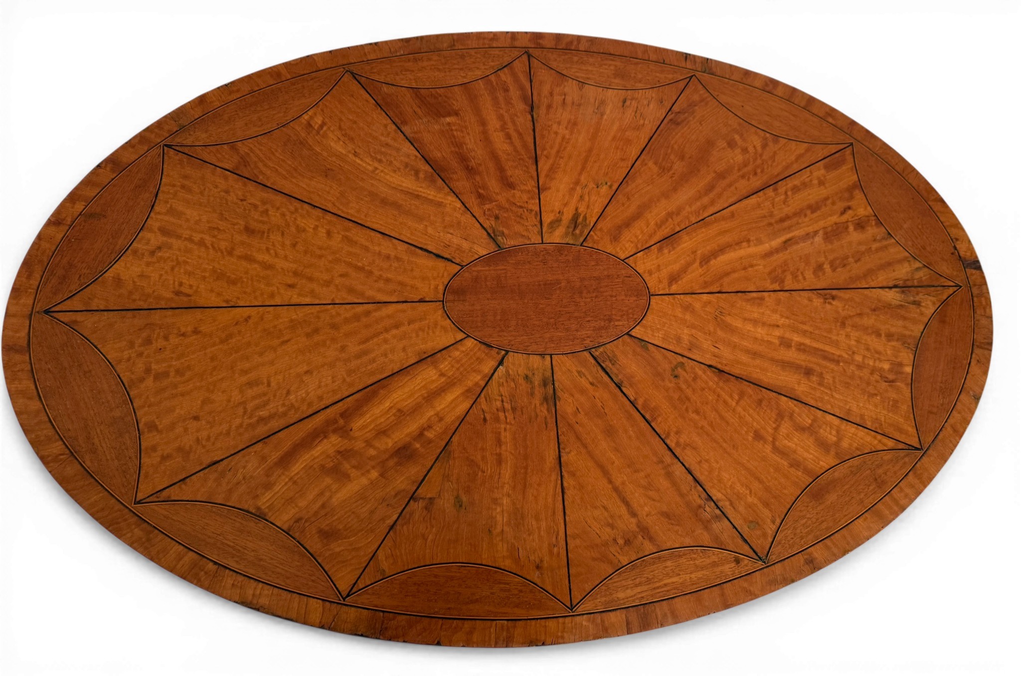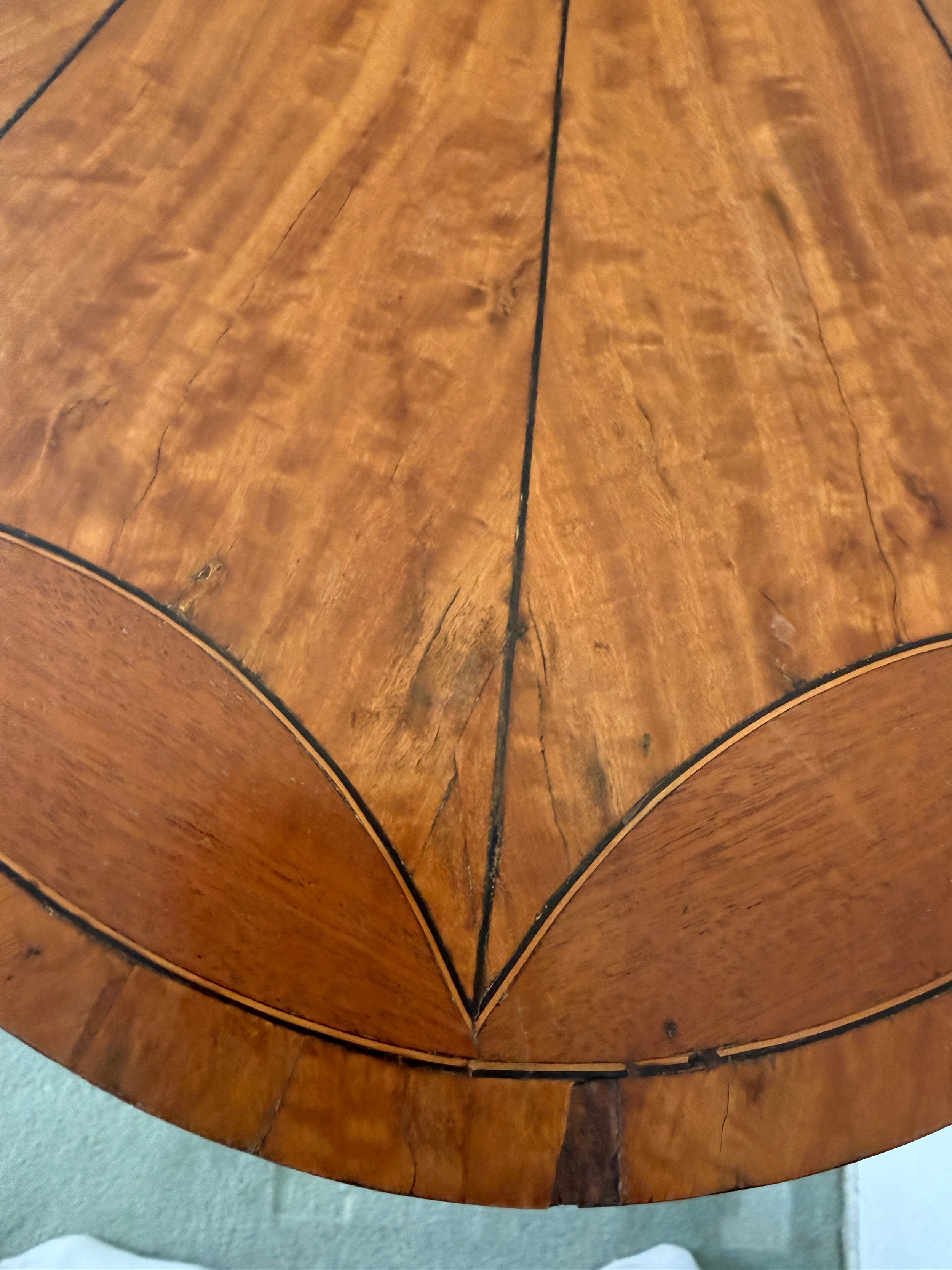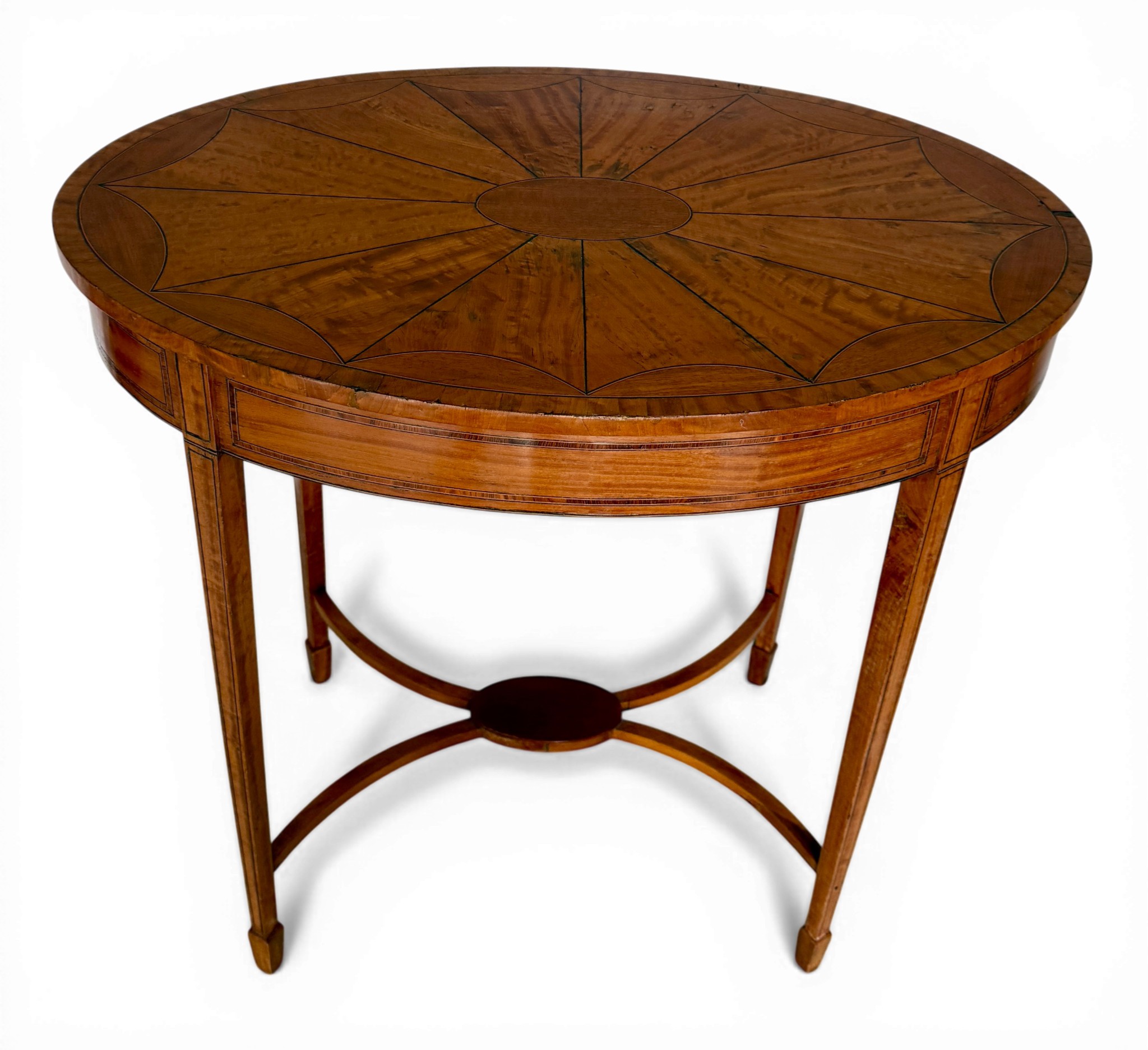 An Edwardian oval satinwood side table. 74 w x 48 d x 71cm h.