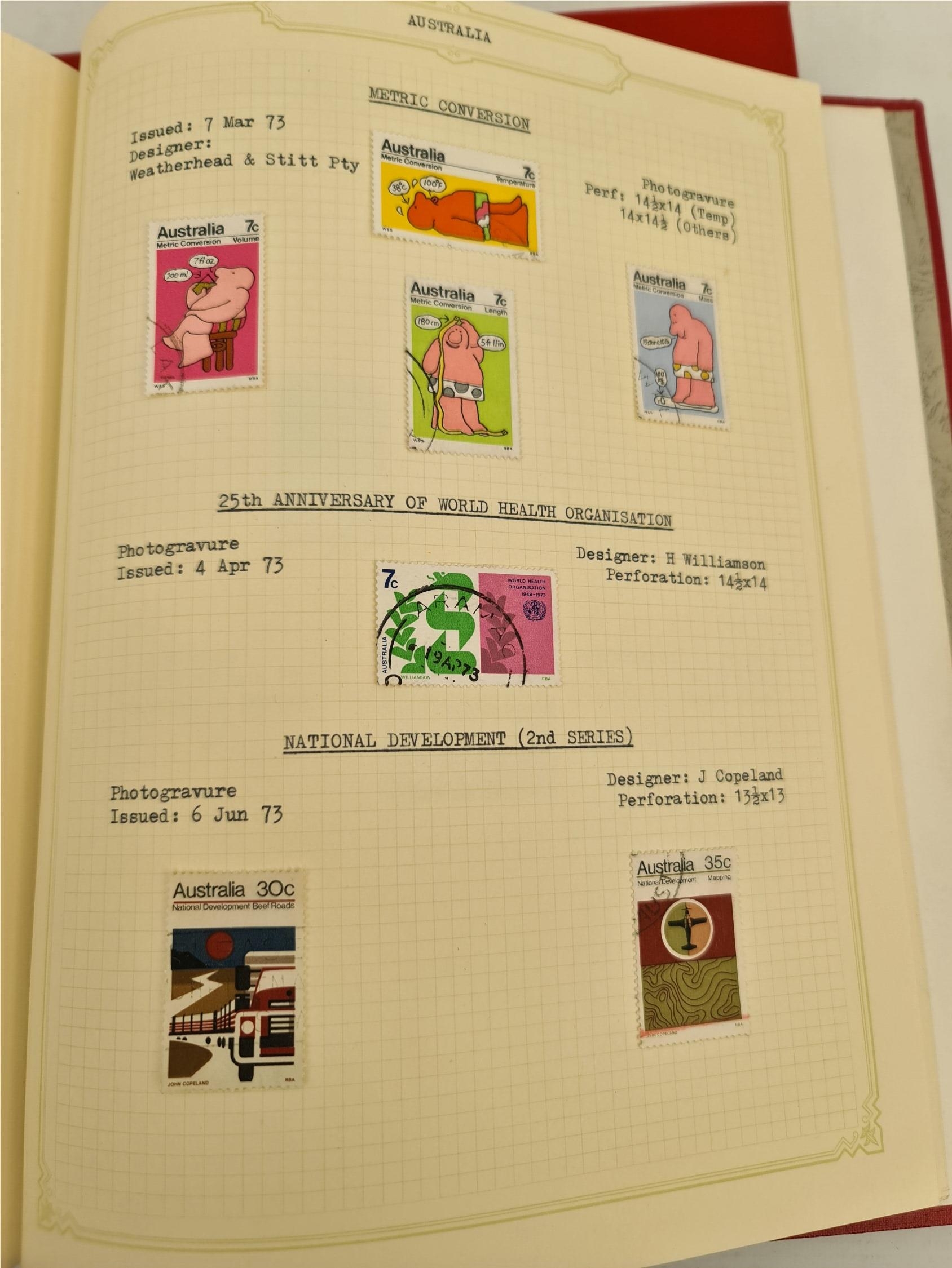 2 Stamp Albums Australia 1913 to 1981 Over 600 Stamps Presented on Individual Annotated Sheets. Shipping is available. Please ask for a quote before bidding. Where possible we combine shipping costs. Remember, if you are the highest bidder above reserve on this Lot you have bought the item and are legally responsible for the item. Viewing is recommended in either person or via video link. Contact us to arrange. C2446 #2