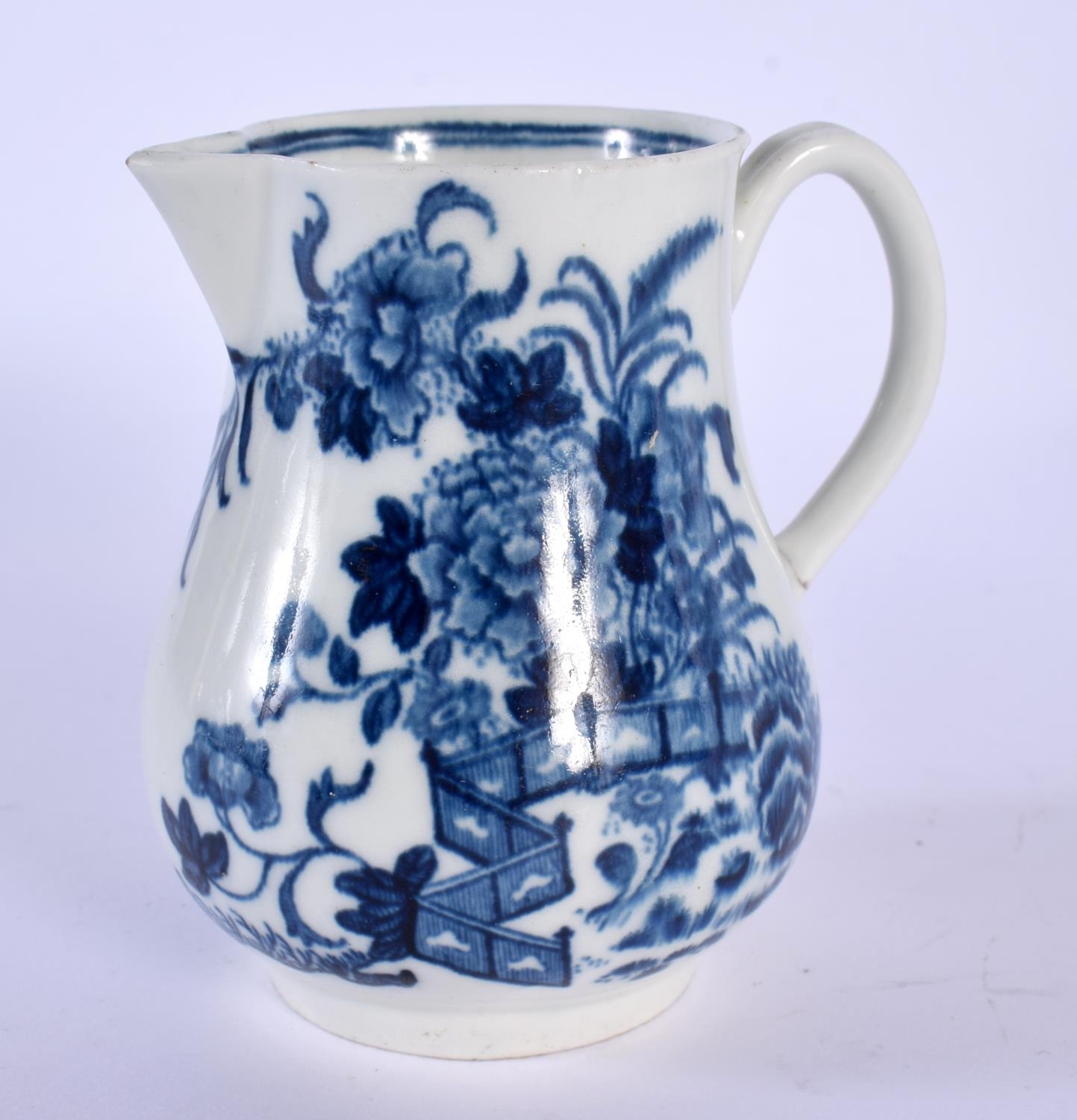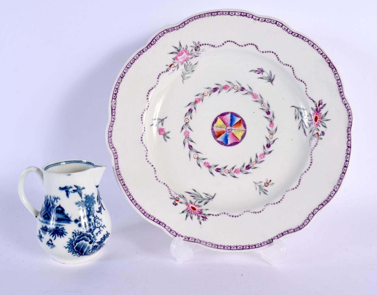 18th Caughley plate painted in the Dartboard pattern, and a Worcester jug in underglaze blue. Plate 20cm diameter (2)