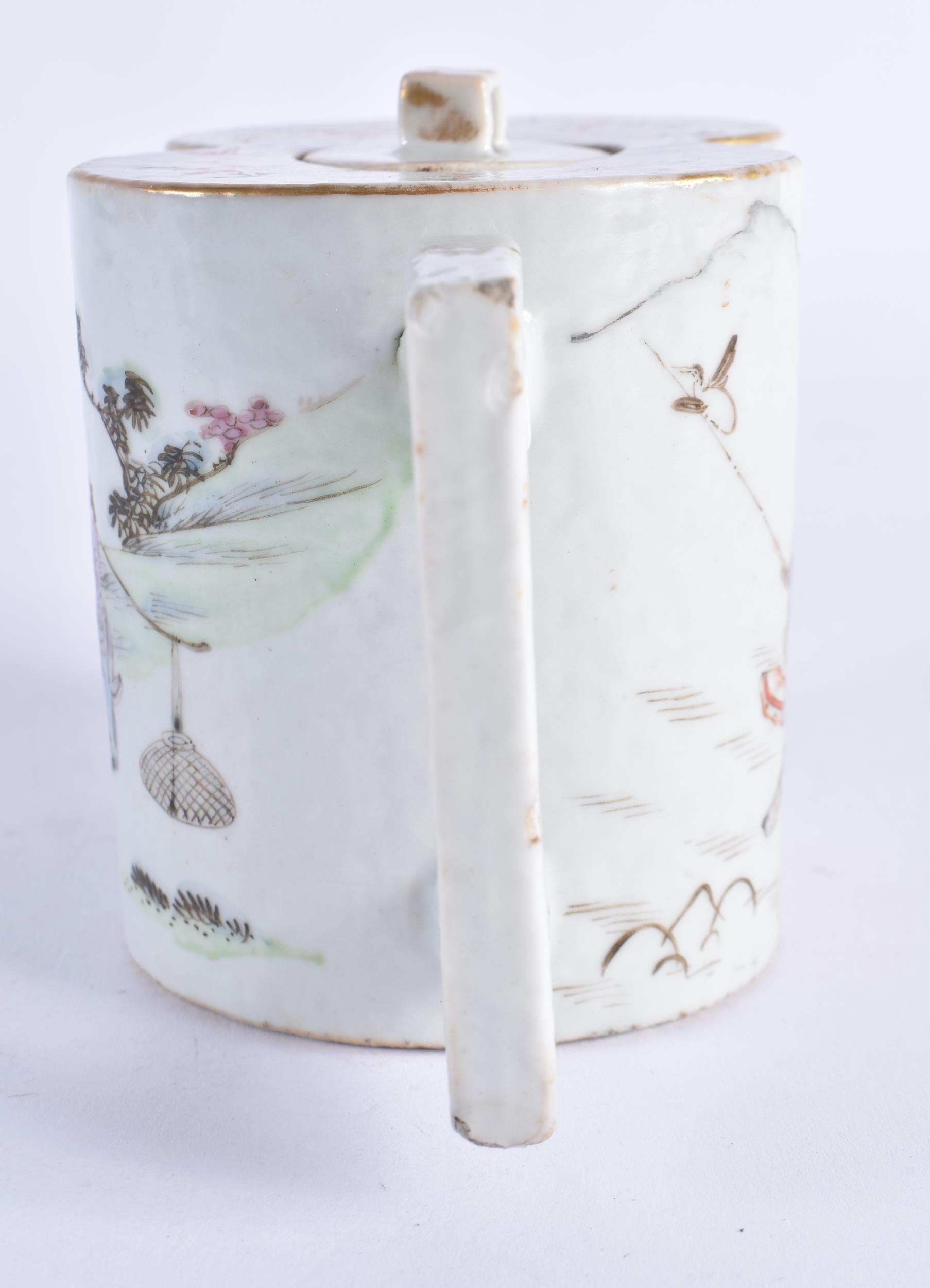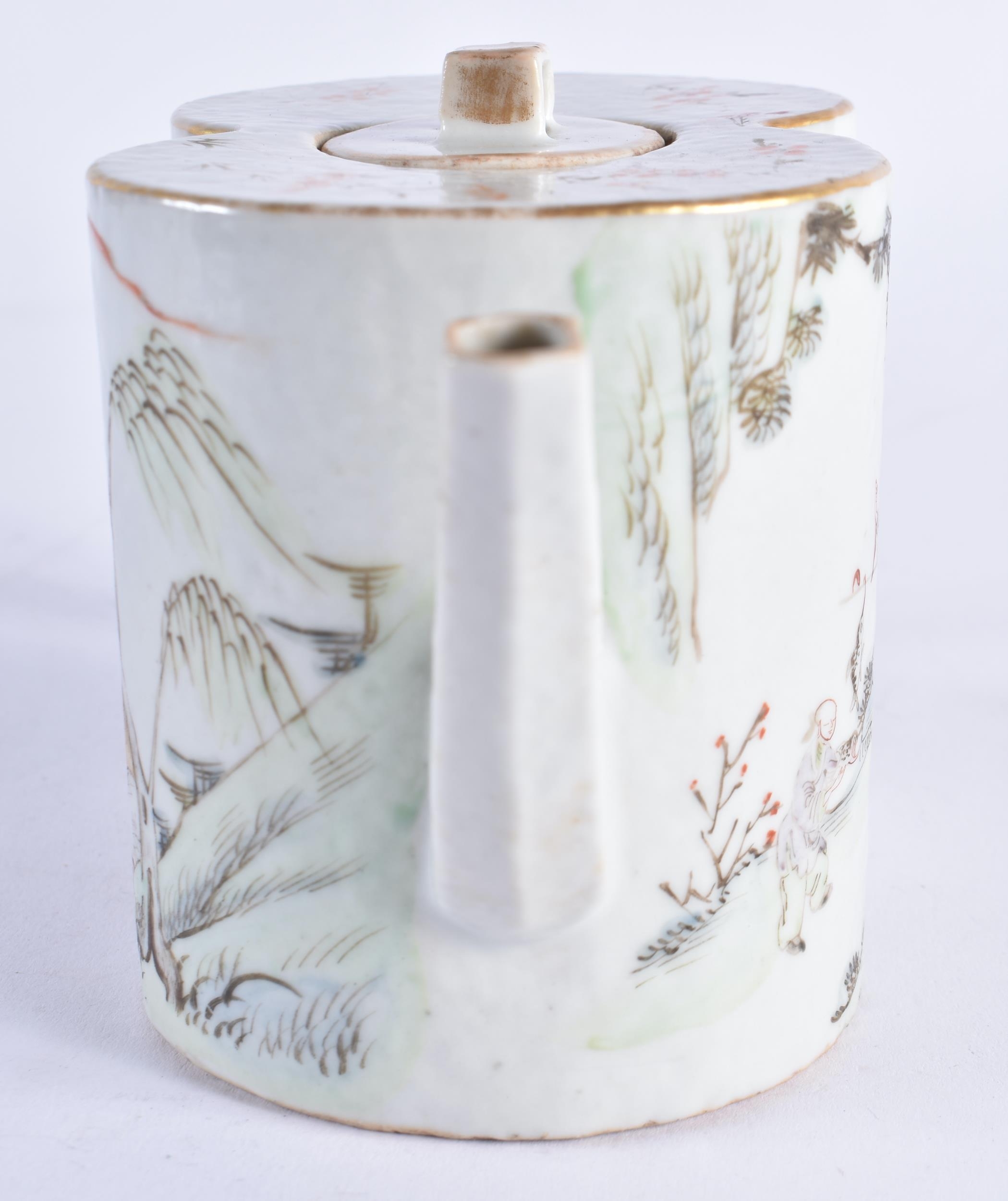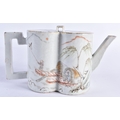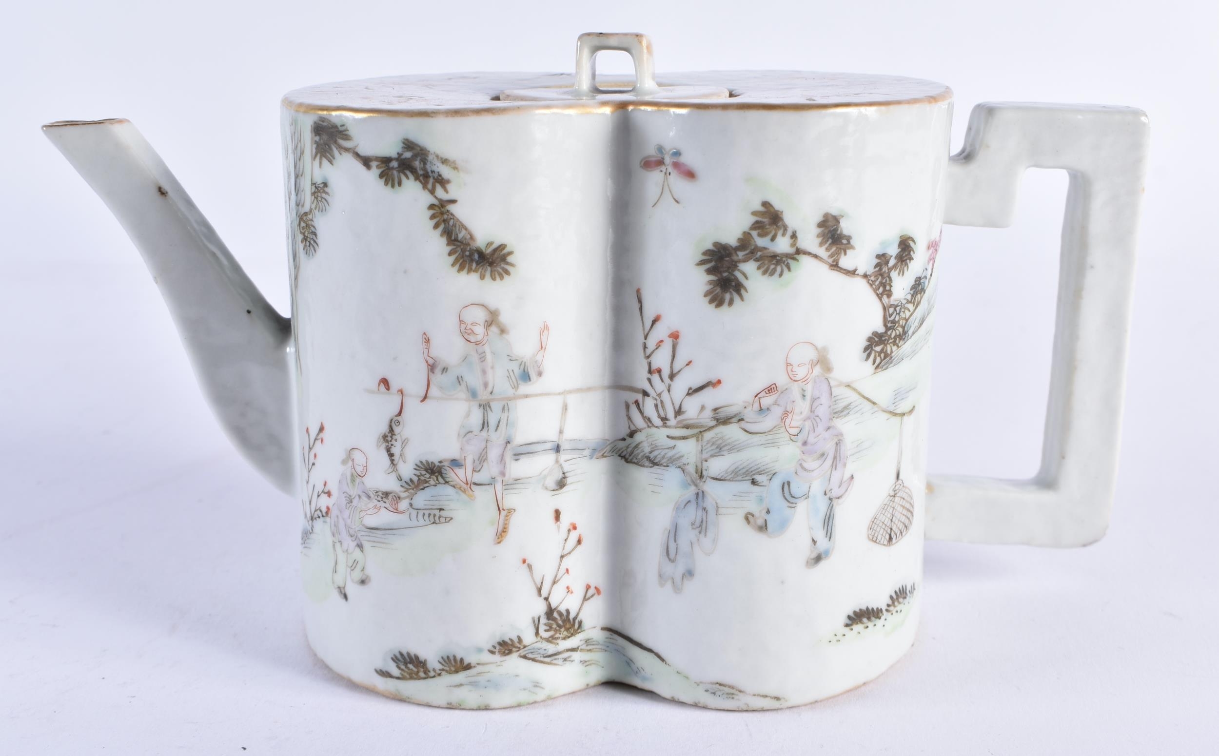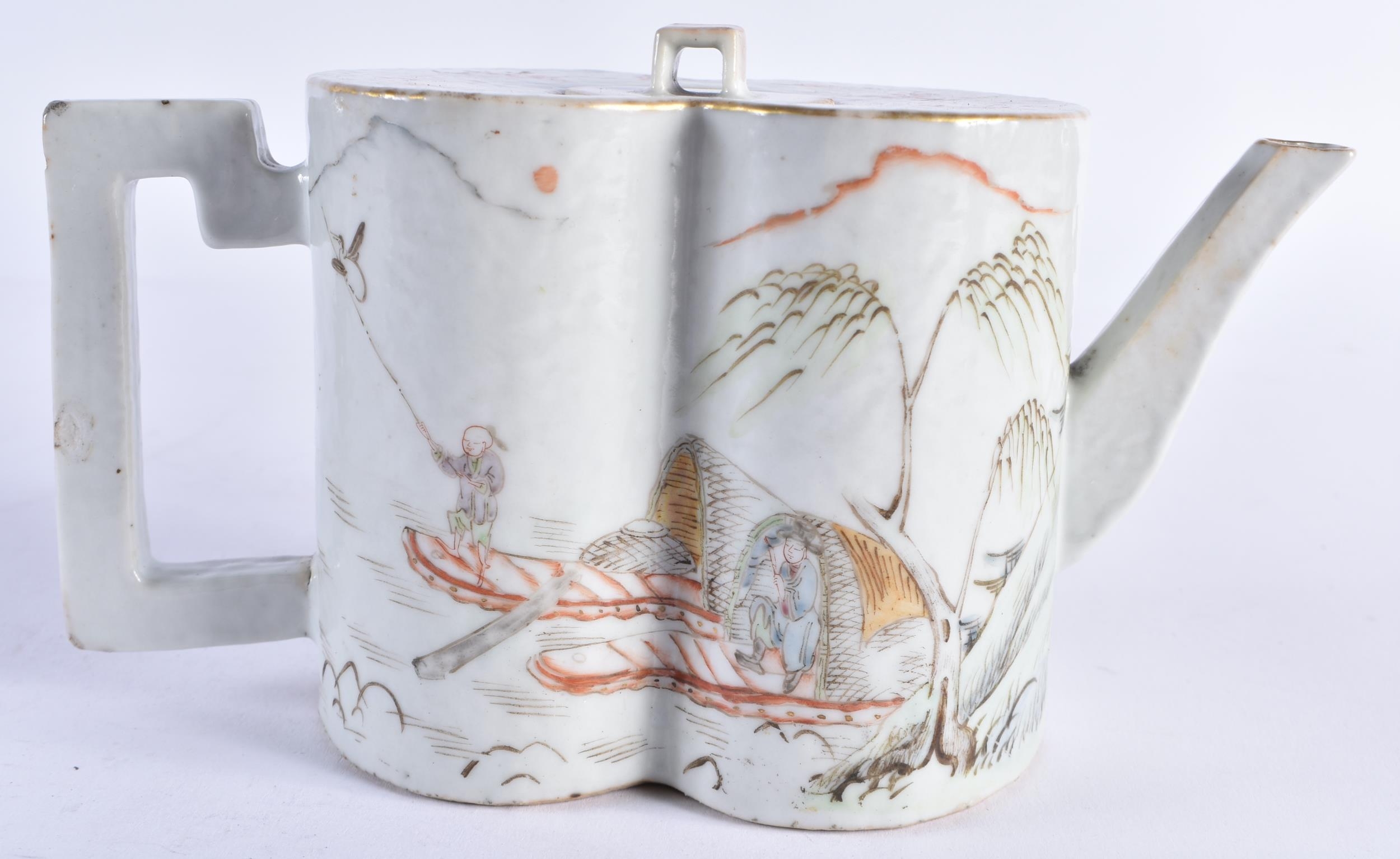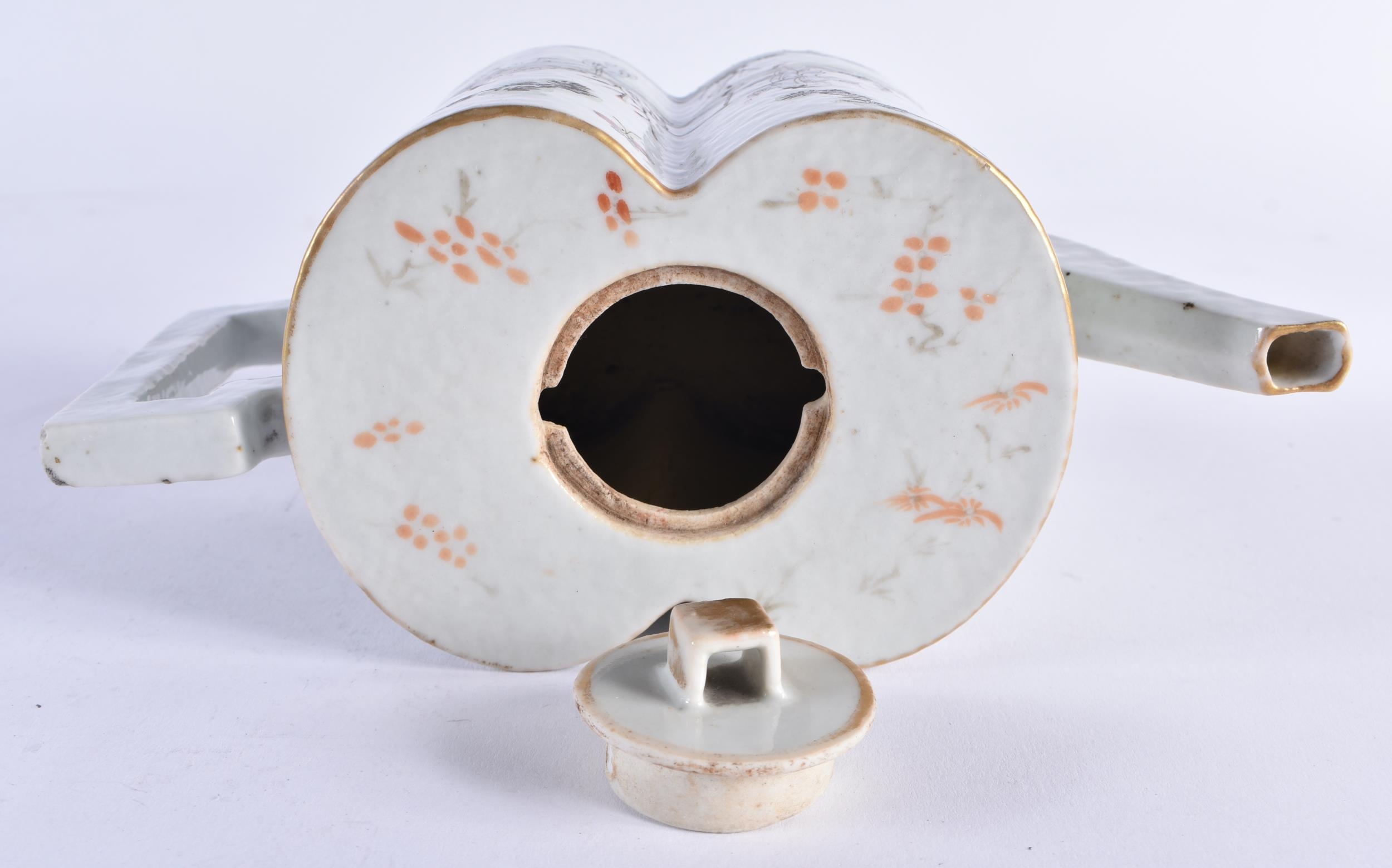 A LATE 19TH CENTURY CHINESE FAMILLE ROSE PORCELAIN GOURD FORM TEPAOT AND COVER Guangxu, painted with figures within landscapes. 17.5 cm wide.