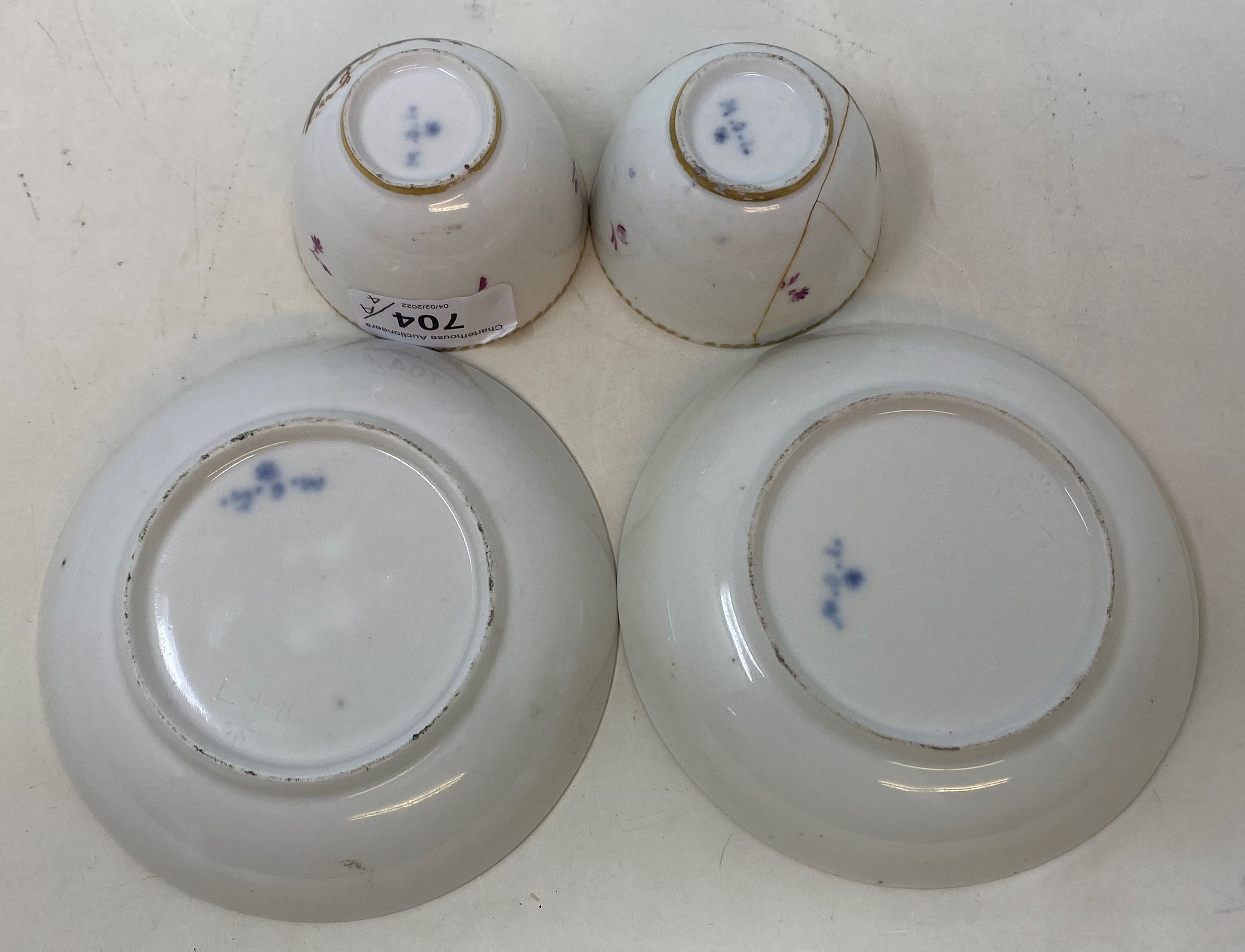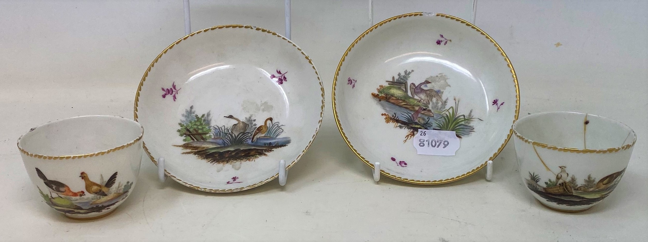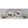 A pair of Joannes de Mol porcelain tea bowls and saucers, decorated birds (4)
