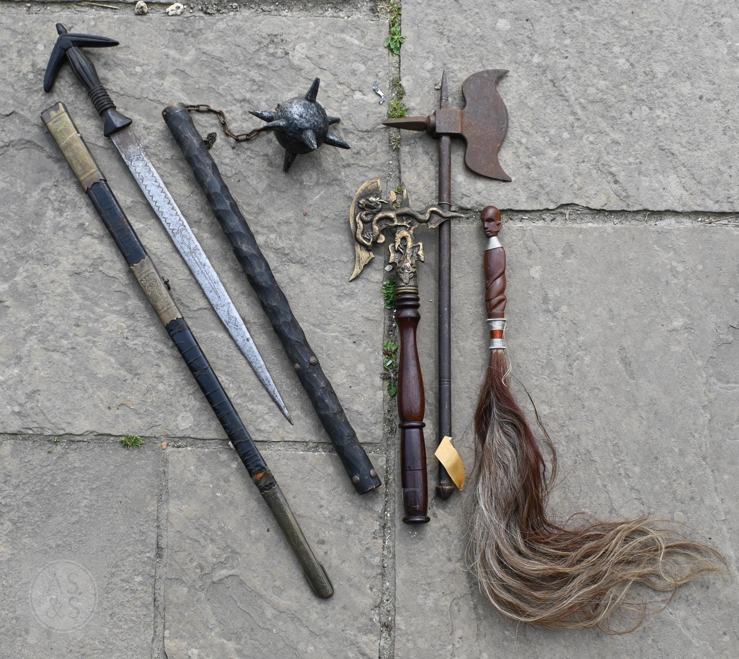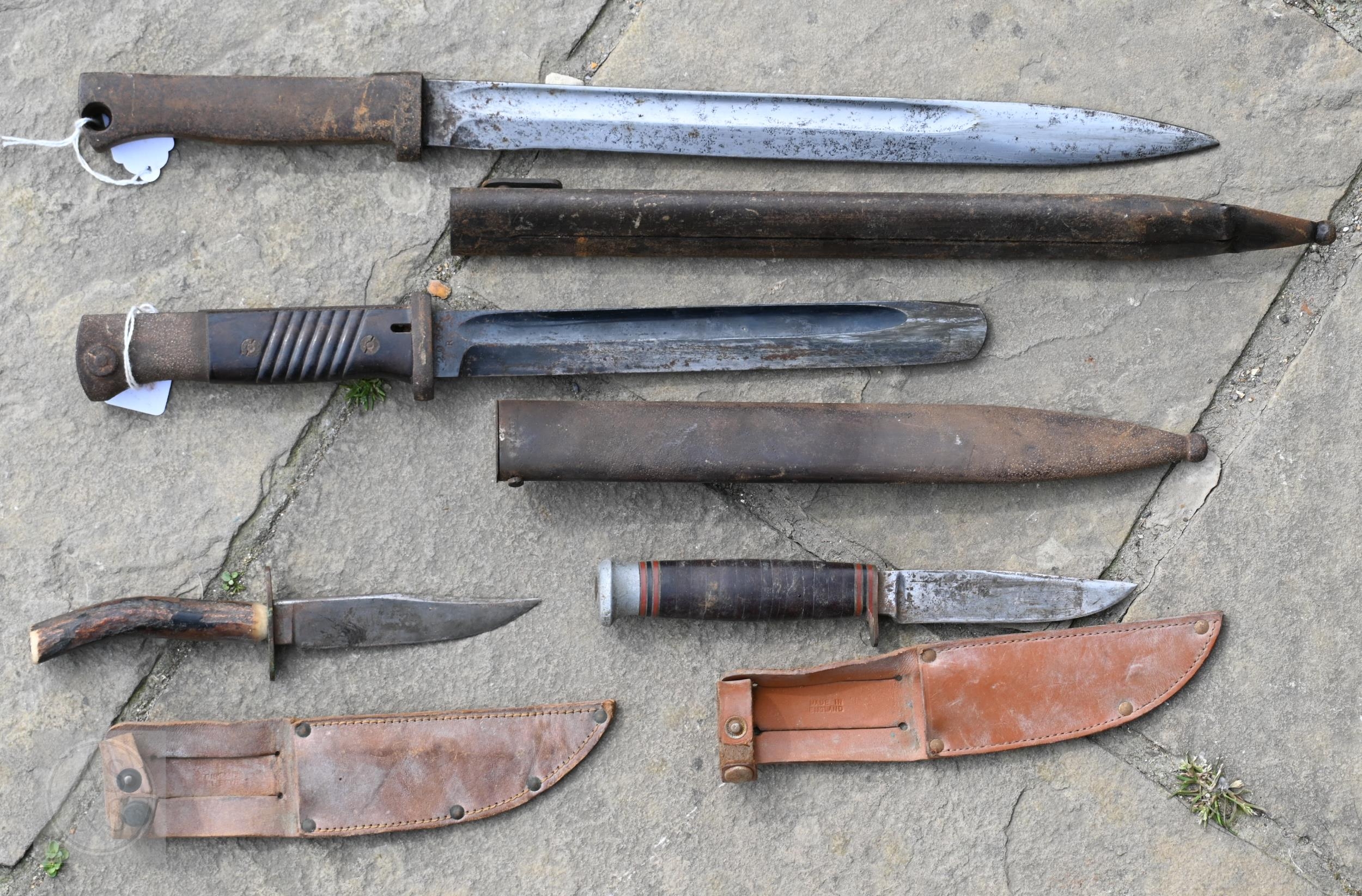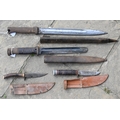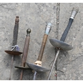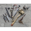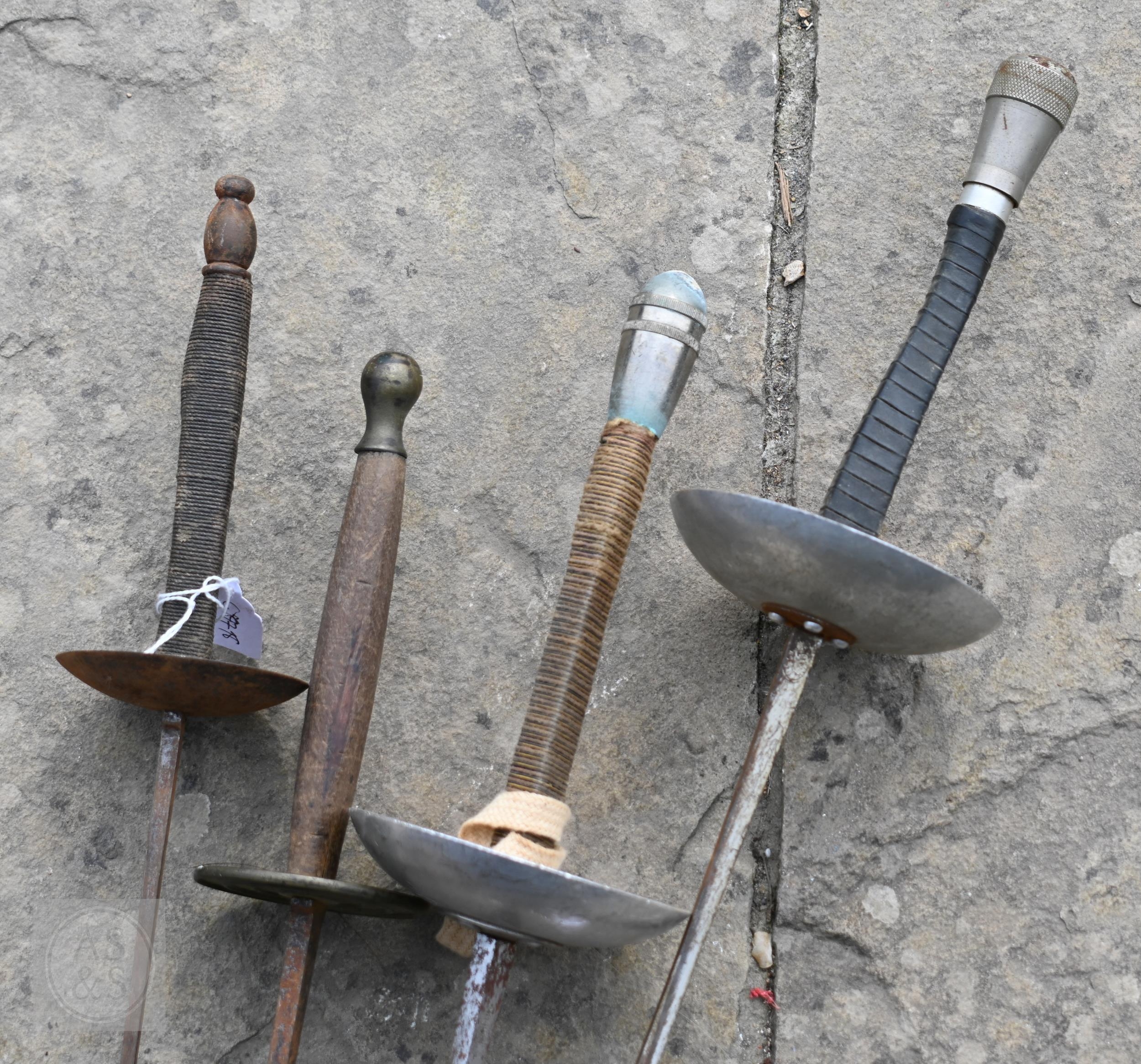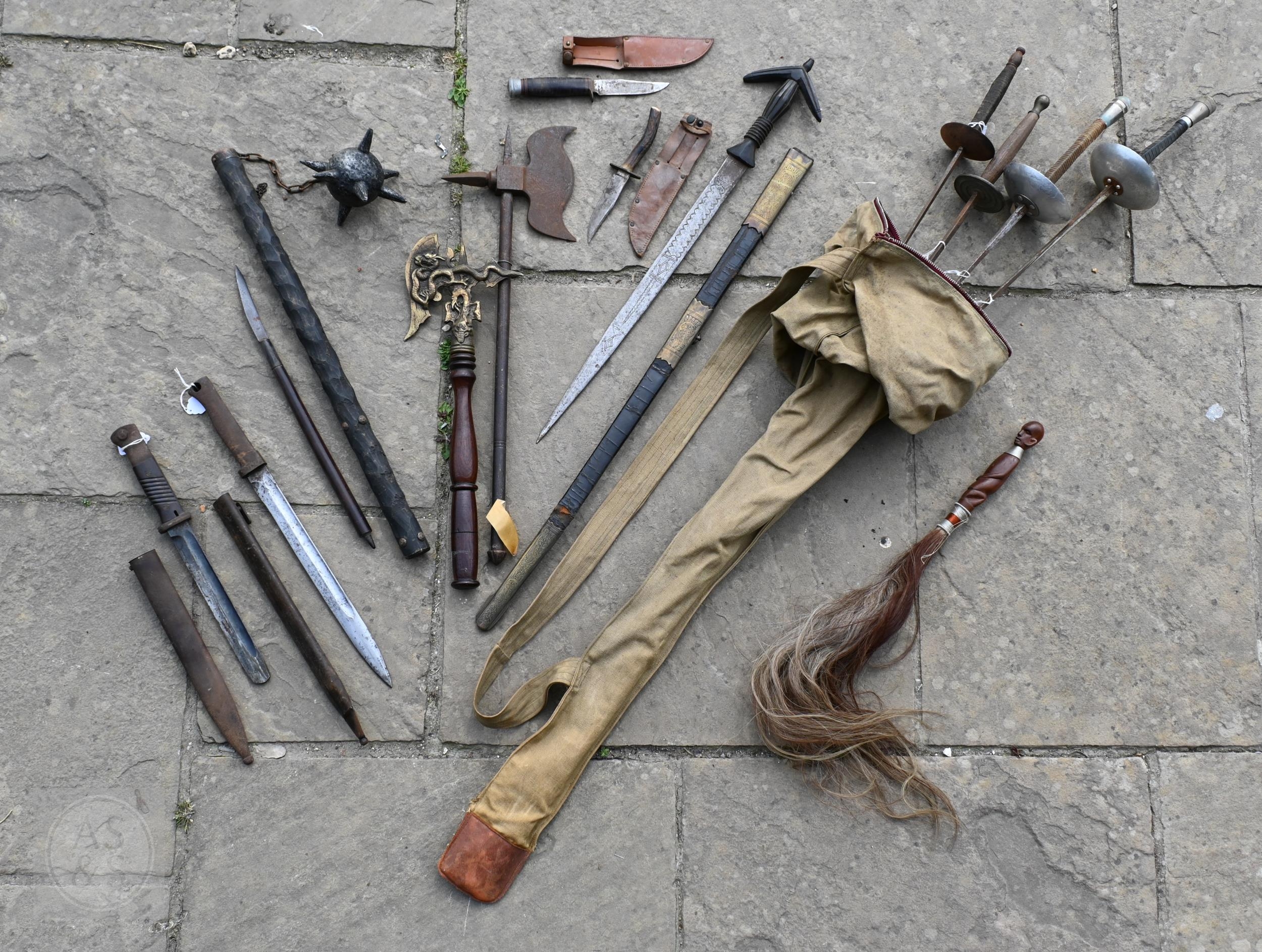 Various antique and later swords, bayonets and other weapons including four fencing foils (box)