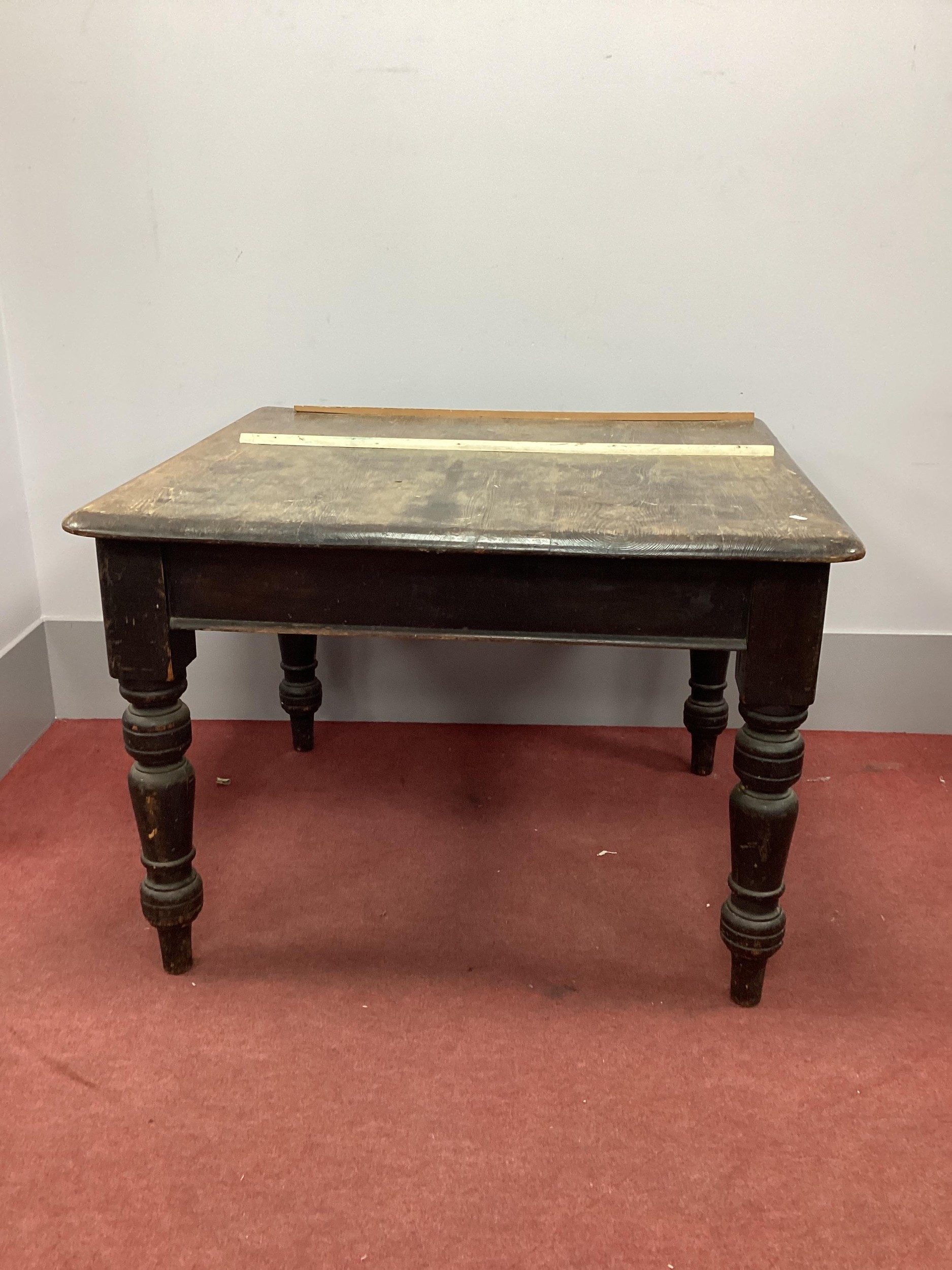 XIX CENTURY PAINTED PINE TABLE TWO STRIPS NAILED TO THE TOP, NO WOOD WORM